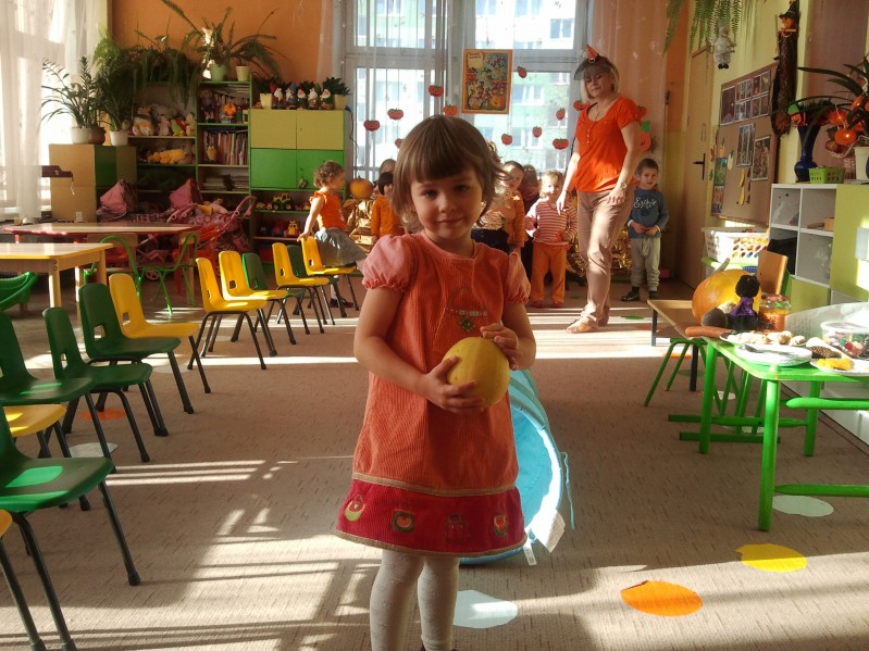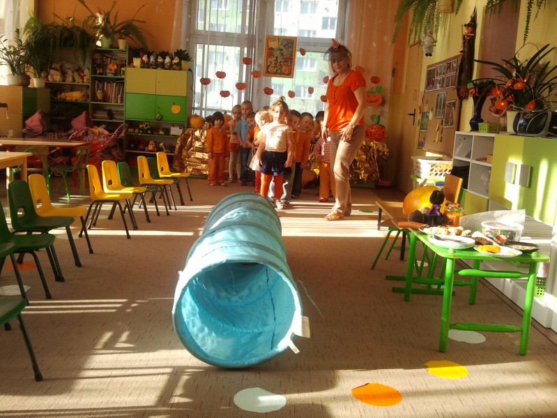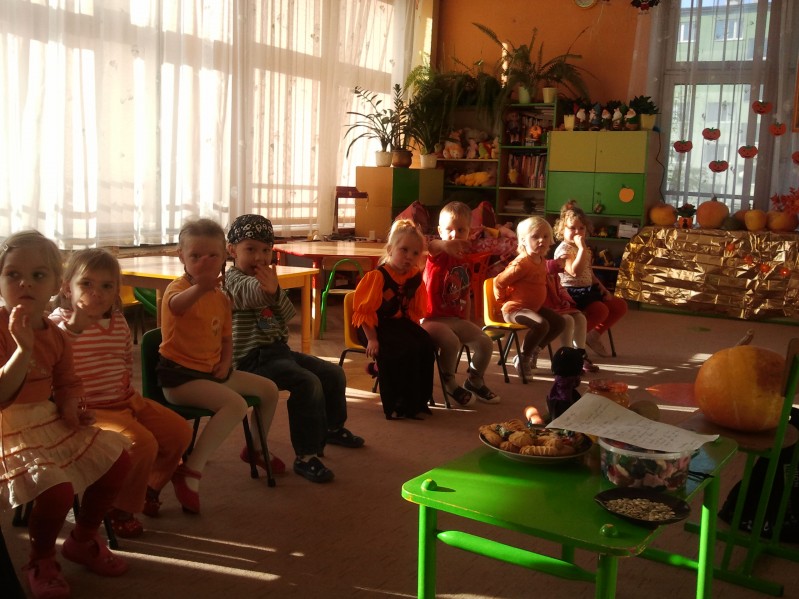 Dzieci w tym dniu przybyły w pomarańczowych strojach oraz przyniosły dynie. Wspólnie z panią zorganizowano wystawę "pomarańczowych olbrzymów". Przedszkolaki uczestniczyły też w różnych zabawach i konkursach. A potem zorganizowano dyniowe party - słodki poczęstunek z produktów wytworzonych z dyni.