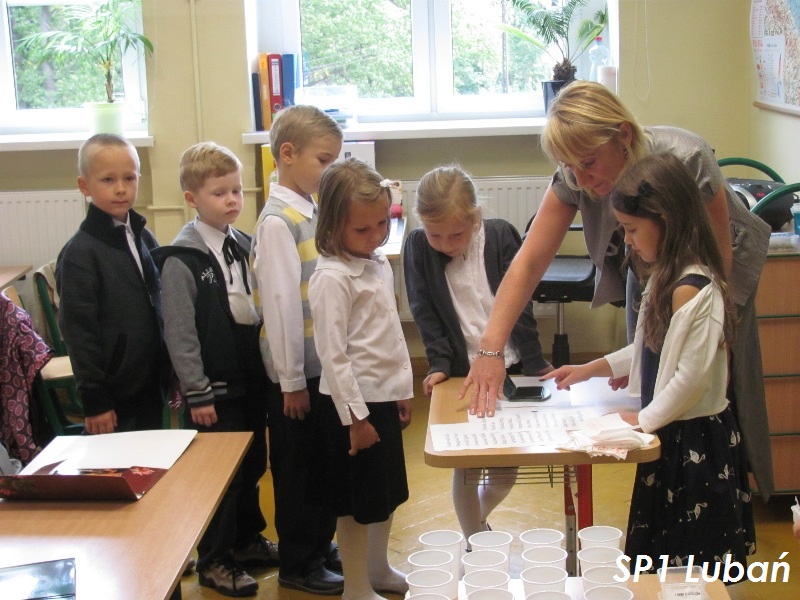 Najważniejszym punktem uroczystego rozpoczęcia roku szkolnego 2013/2014 było powitanie w progach szkoły pierwszoklasistów i ich rodziców. Bardzo przejęci nowi uczniowie złożyli przyrzeczenie i zostali pasowani na ucznia SP 1. Po części oficjalnej, pierwszoklasiści z przejęciem oczekiwali na wejście do swoich klas, w których odbyła się druga część „egzaminu” dojrzałości na ucznia. Mimo stresu uczniowie dzielnie przeszli wszystkie próby. Bardziej przejęci byli chyba rodzice.