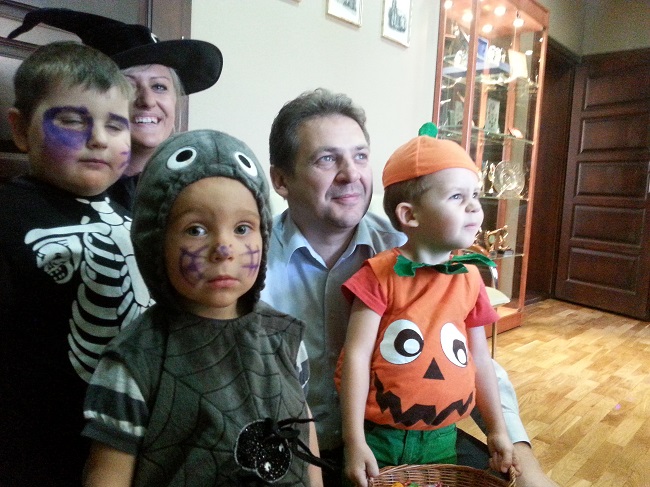 W dniu 31 października Z okazji Halloween dzieci ze starszej grupy żłobkowej w przebraniu wybrały się do Urzędu Miasta w celu przestraszenia pracowników, którzy wykupywali się cukierkami – w myśl „cukierek albo psikus”. To sprawiło dzieciom dużo radości, myślimy że nam to się udało , to widać na załączonych zdjęciach.