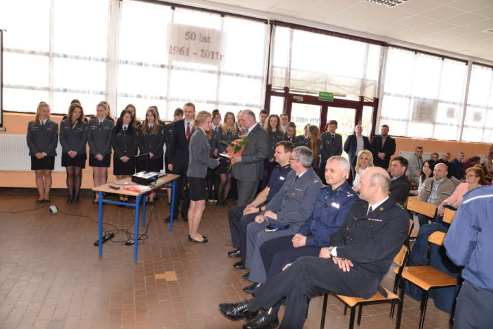 Po zakończeniu tej części uroczystości głos zabrał Komendant Policji mł. insp. mgr Artur Ciupa, podkreślający rolę innowacji pedagogicznej, podjętej przez klasy liceum w ZSP nr 2 oraz życząc, aby „przygoda z mundurem” nie zakończyła się z chwilą zdania matury. Słowa do młodzieży zakończył bardzo miłym gestem – wręczeniem nagrody dla najlepszej uczennicy klasy 3 LO, Magdaleny Hrebieńczuk
