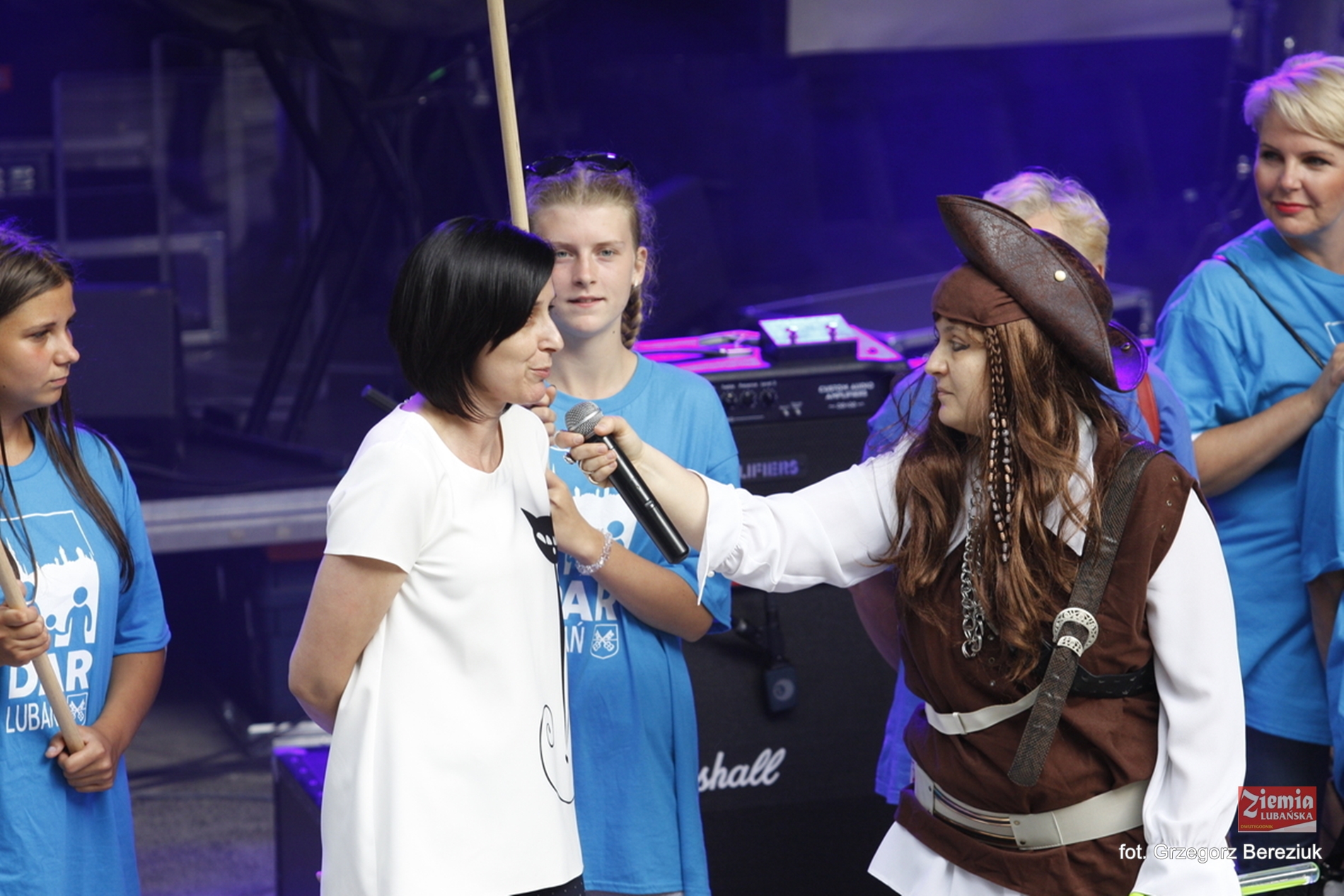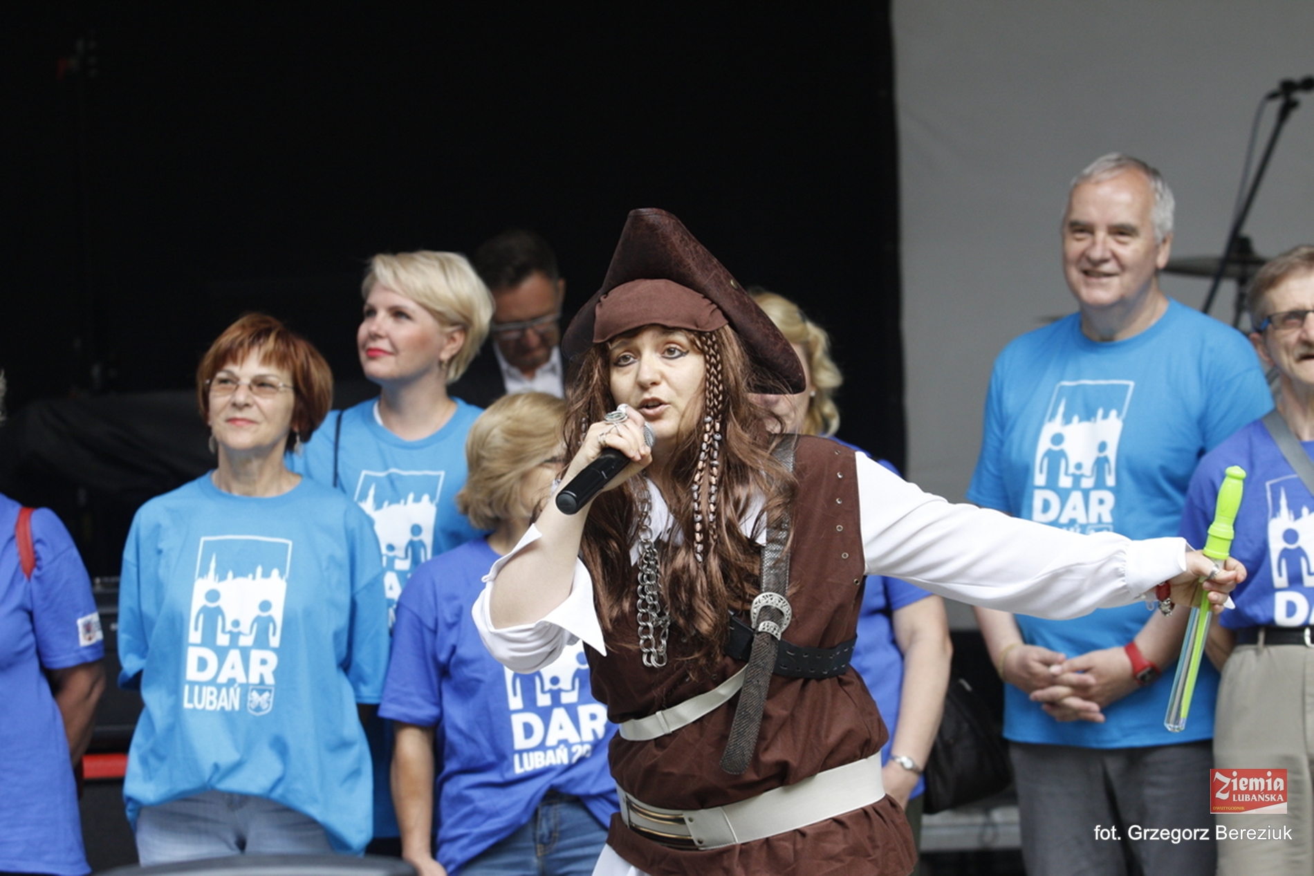 Po występie księdza na scenę wtargnęła, a raczej może dokonała abordażu malownicza grupa. Niebiesko ubrani śmiałkowie uzbrojeni we flagi, na czele z bajkową piratką zażądali uwagi widzów. Okazało się, że są to lubańscy pasjonaci, współorganizujący niedzielny Dzień Aktywnej Rodziny, wraz z prowadzącą tę imprezę Anną Łagowską. Celem ich akcji było zaproszenie zebranych na niedzielny festyn.