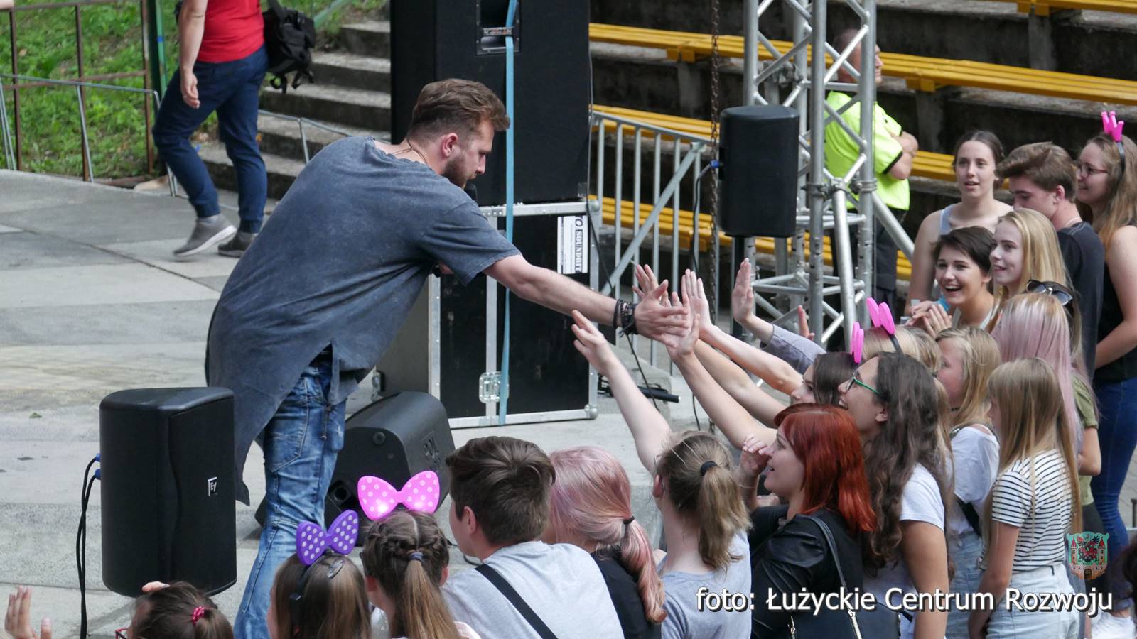 Adam Stachowiak z zespołem. Żeński pisk niósł się falami, oklaski przyćmiły ptasi śpiew, a młodzieniec skutecznie zagrzewał lubanian do zabawy. Szybsze kawałki pozwalały się poruszać, a te bardziej liryczne wyciskały tu i ówdzie łzy. Adam transmitował część występu na żywo, dając możliwość przyłączenia się do Lawy tym, którzy nie mogli przybyć. Wokalista miał niesamowity kontakt z publicznością i chyba sam również dobrze się bawił, ponieważ nie omieszkał podziękować Lubaniowi za wyjątkowy wieczór.