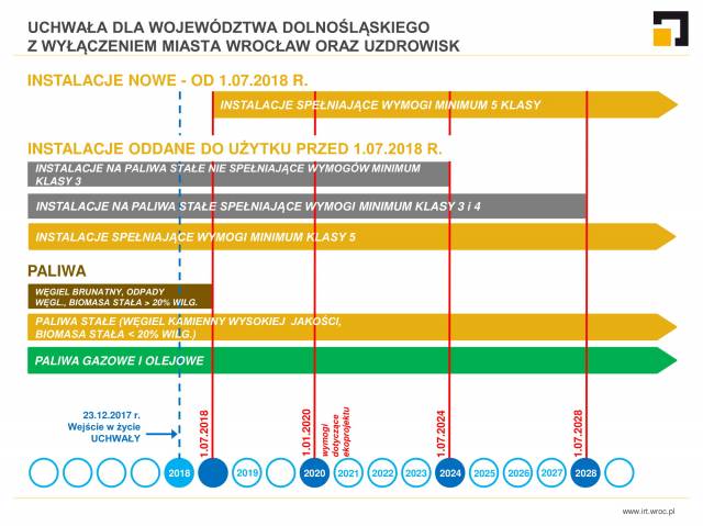 Poniżej przedstawiamy wykonaną przez ww. Instytut infografikę przedstawiającą wejście w życie poszczególnych zakazów dla posiadanych instalacji.
