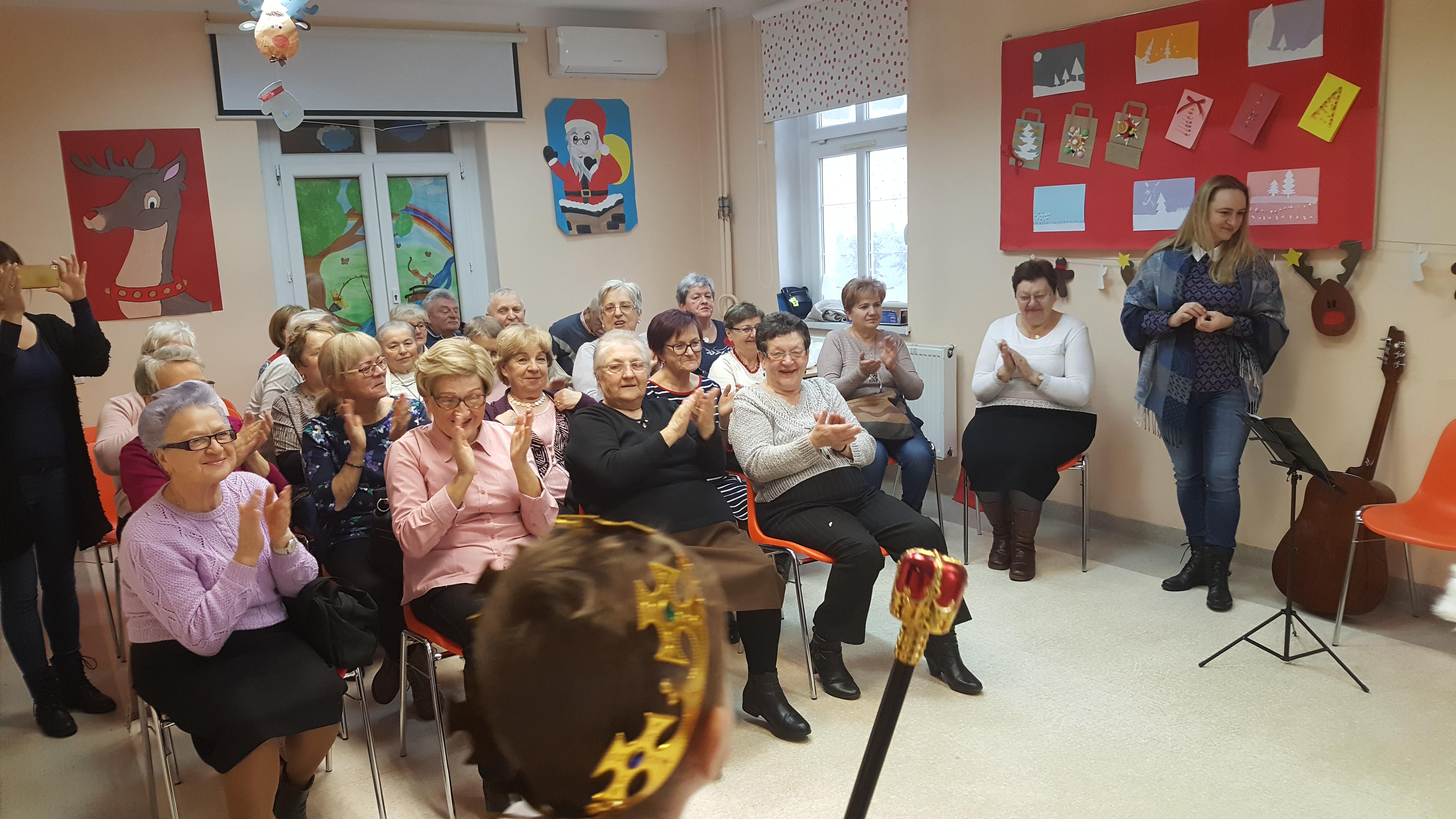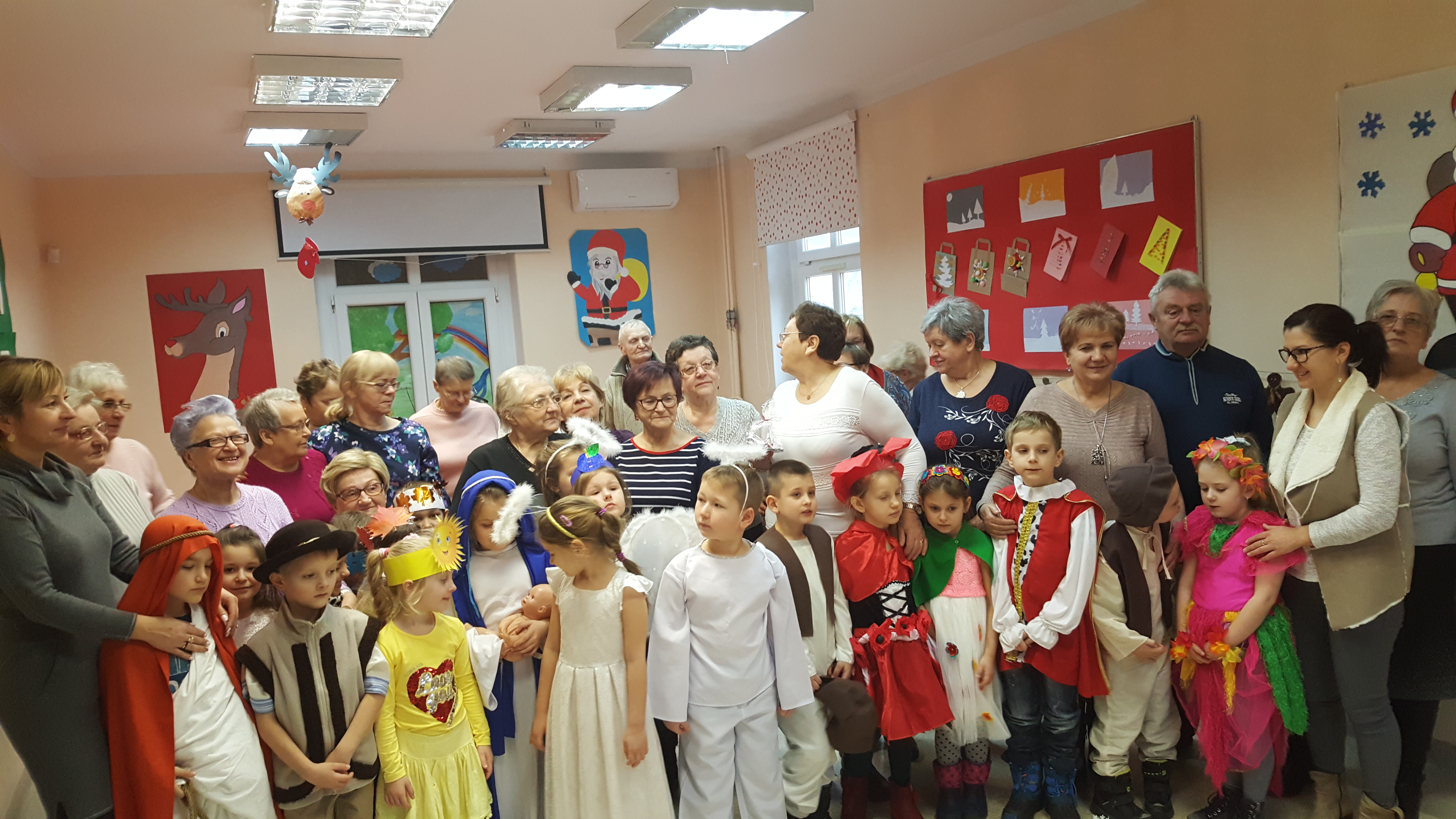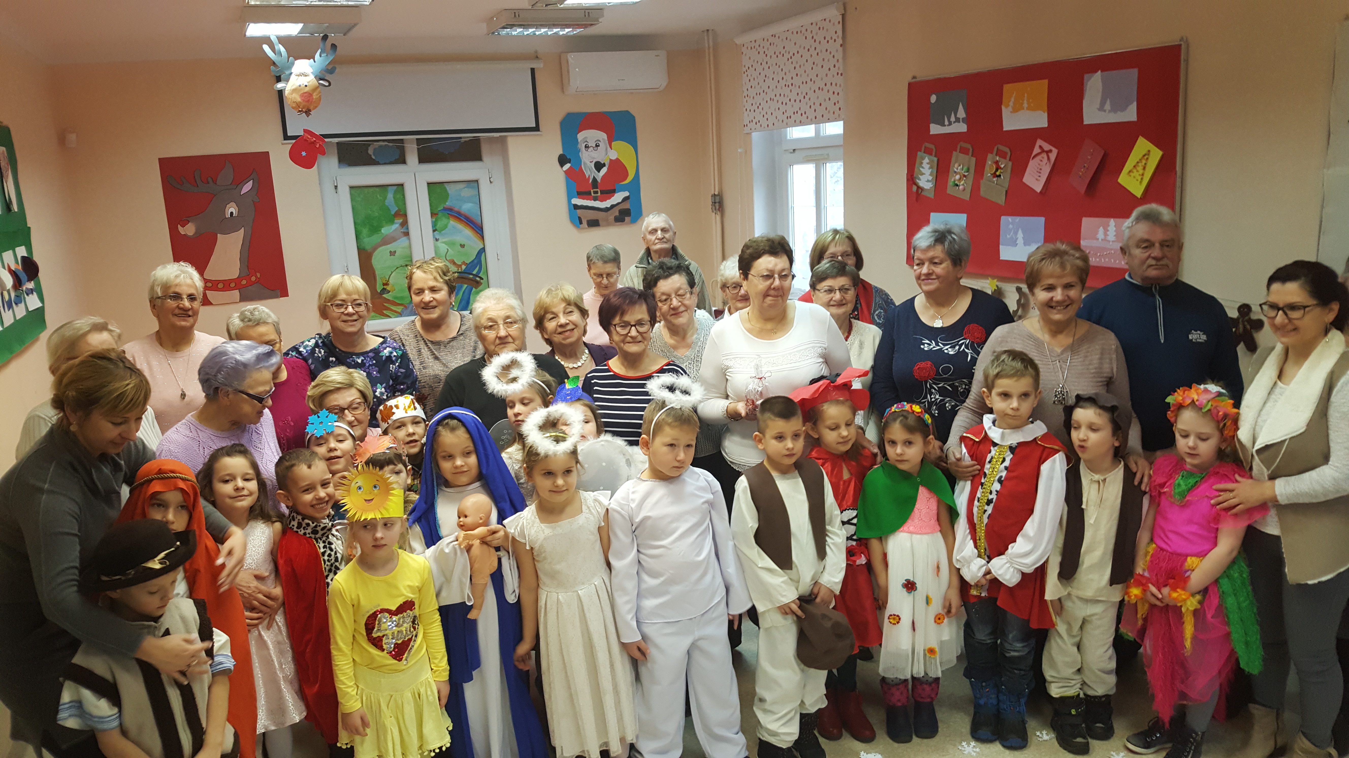 Dzieci wybrały się tam z programem bożonarodzeniowym -jasełka, przygotowanym specjalnie na tę szczególną okazję, śpiewały kolędy i składały życzenia. Seniorzy entuzjastycznie reagowali na występ dzieci przedszkolnych i nagradzali gromkimi brawami. Za piękny występ dzieci zostały obdarowane słodkim upominkiem. Wizyta w Ośrodku Wsparcia Dziennego była dla przedszkolaków kolejną lekcją wychowawczą - dzieci zrozumiały w jaki sposób można sprawić radość u osób starszych, jak szanować i okazywać życzliwość. Było dużo radości, miłych słów.