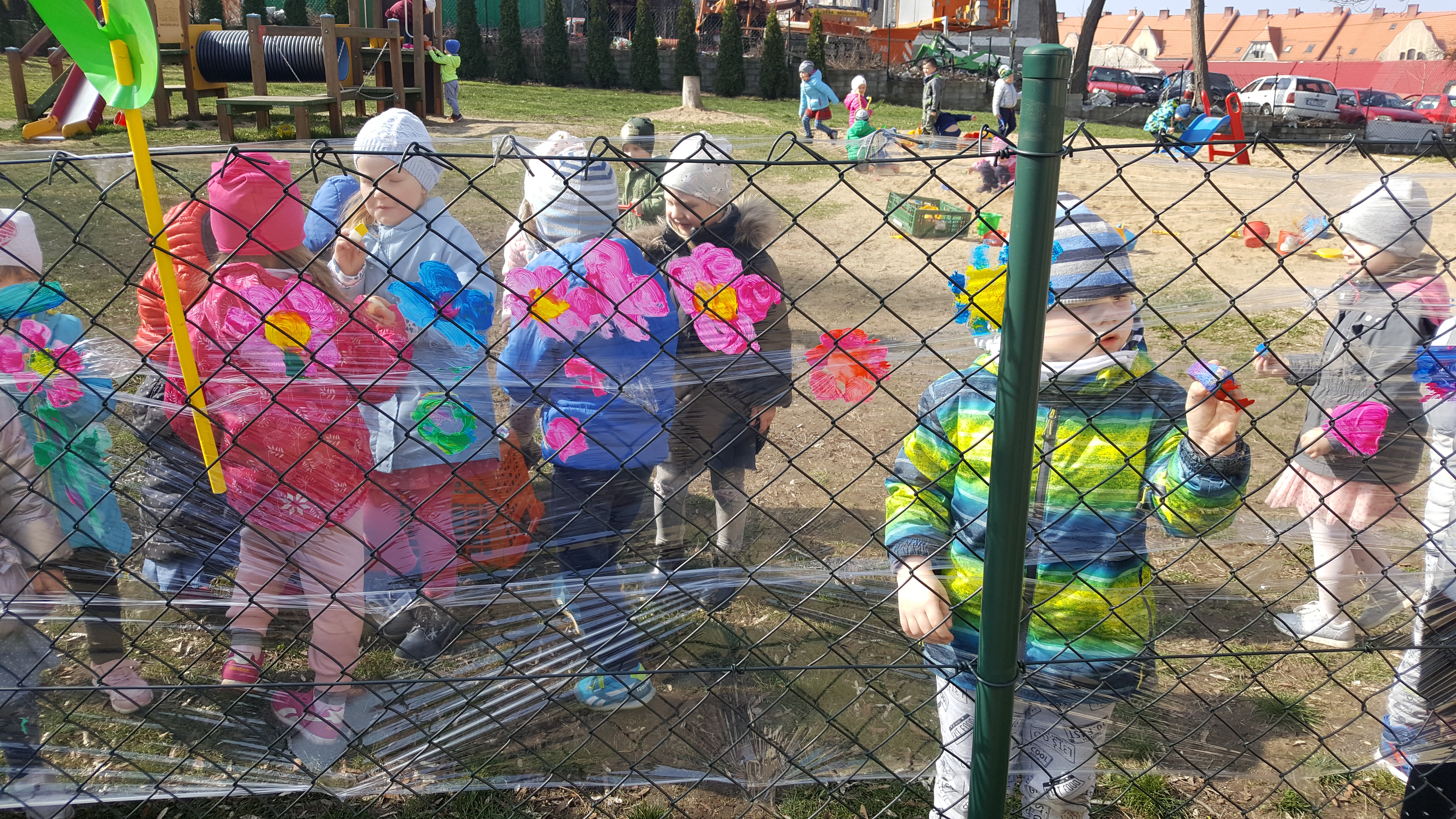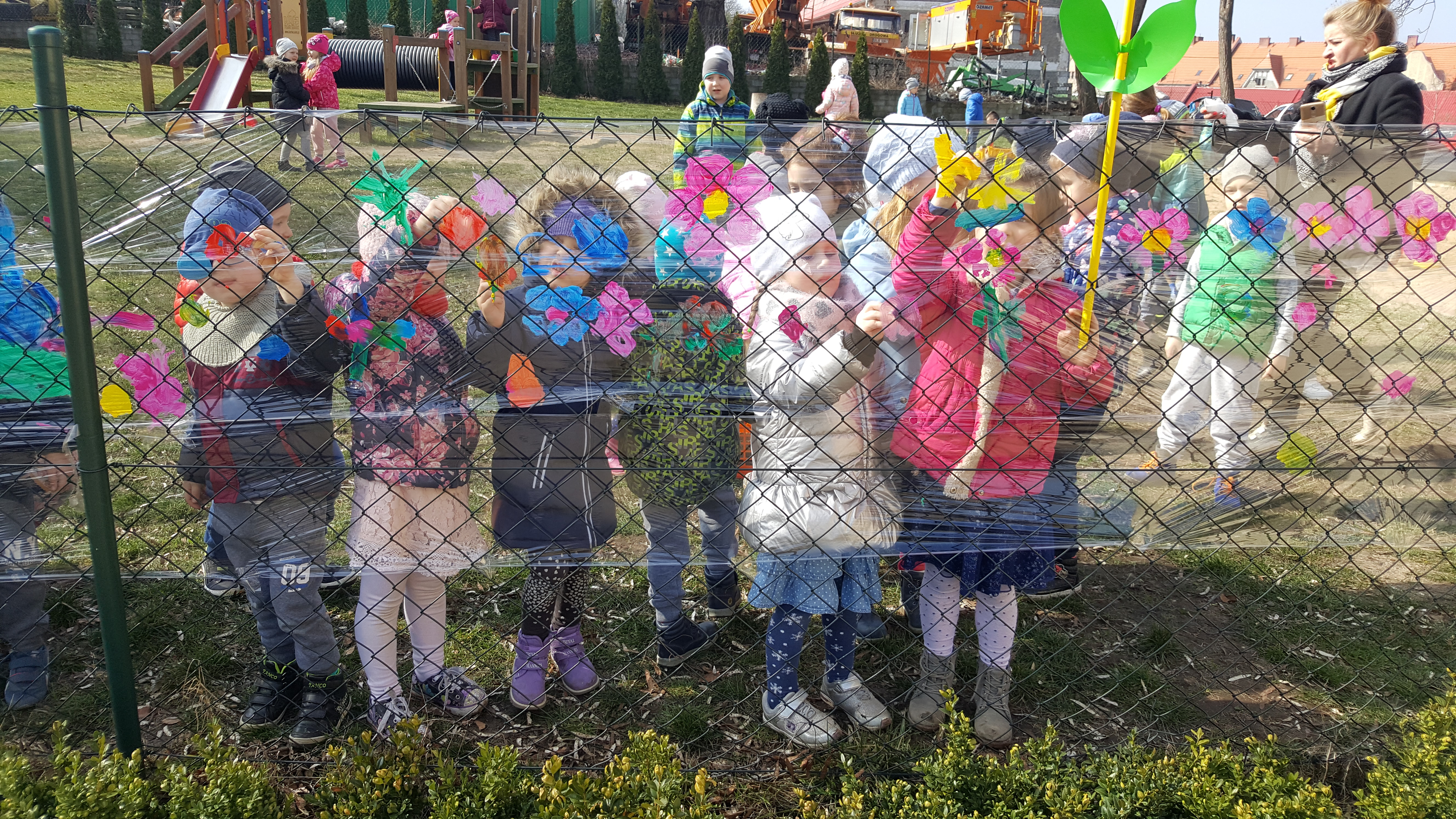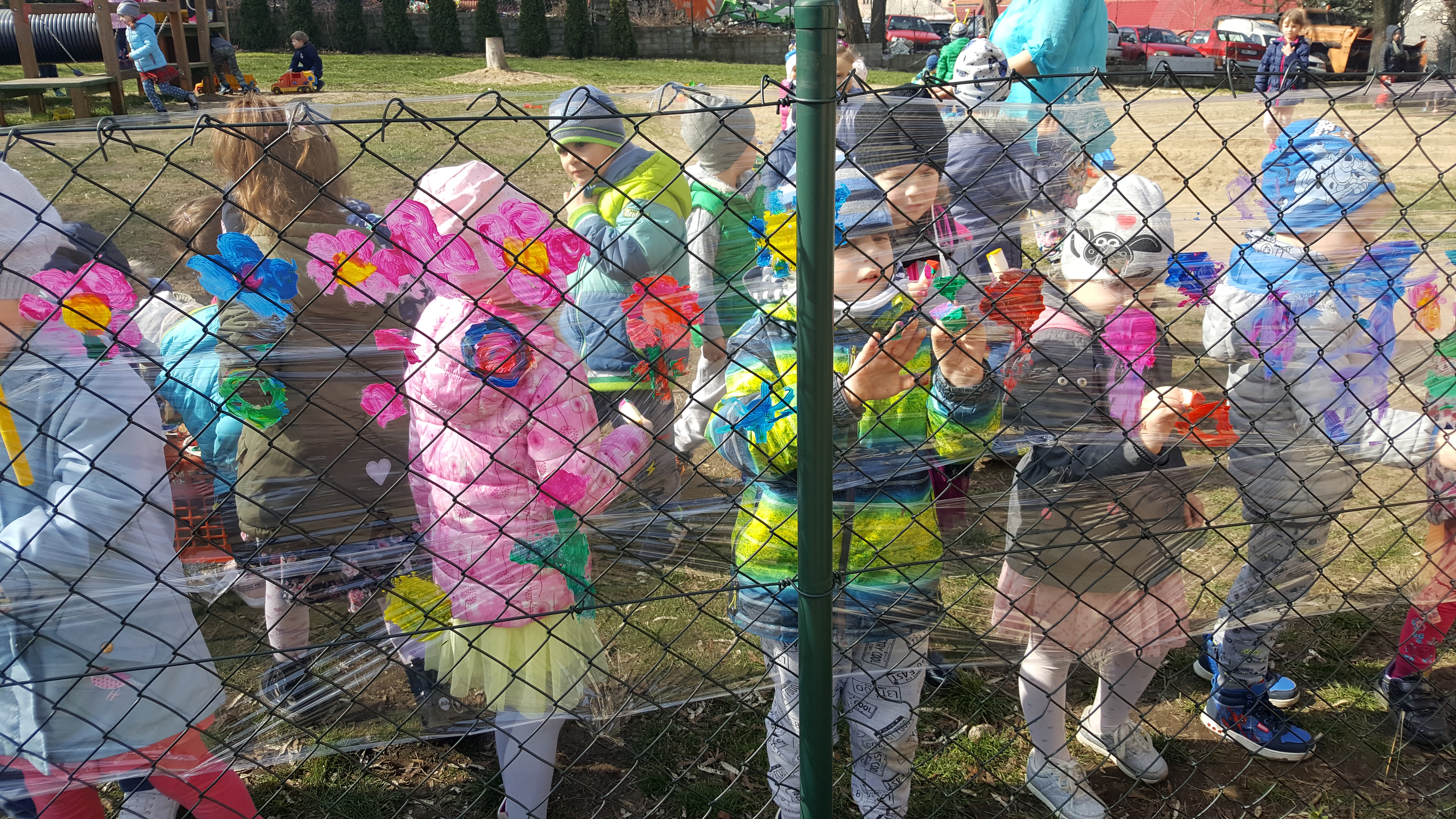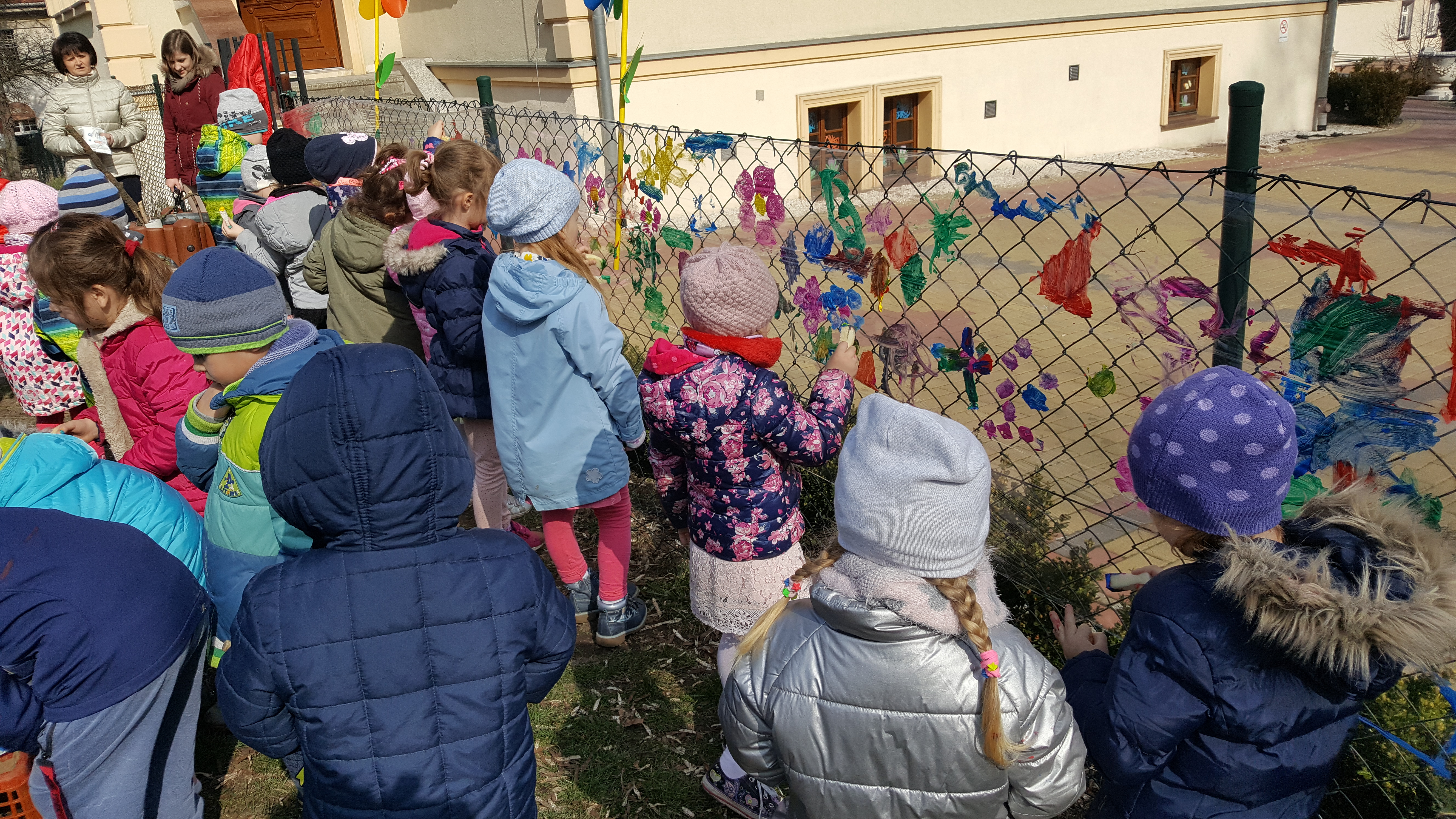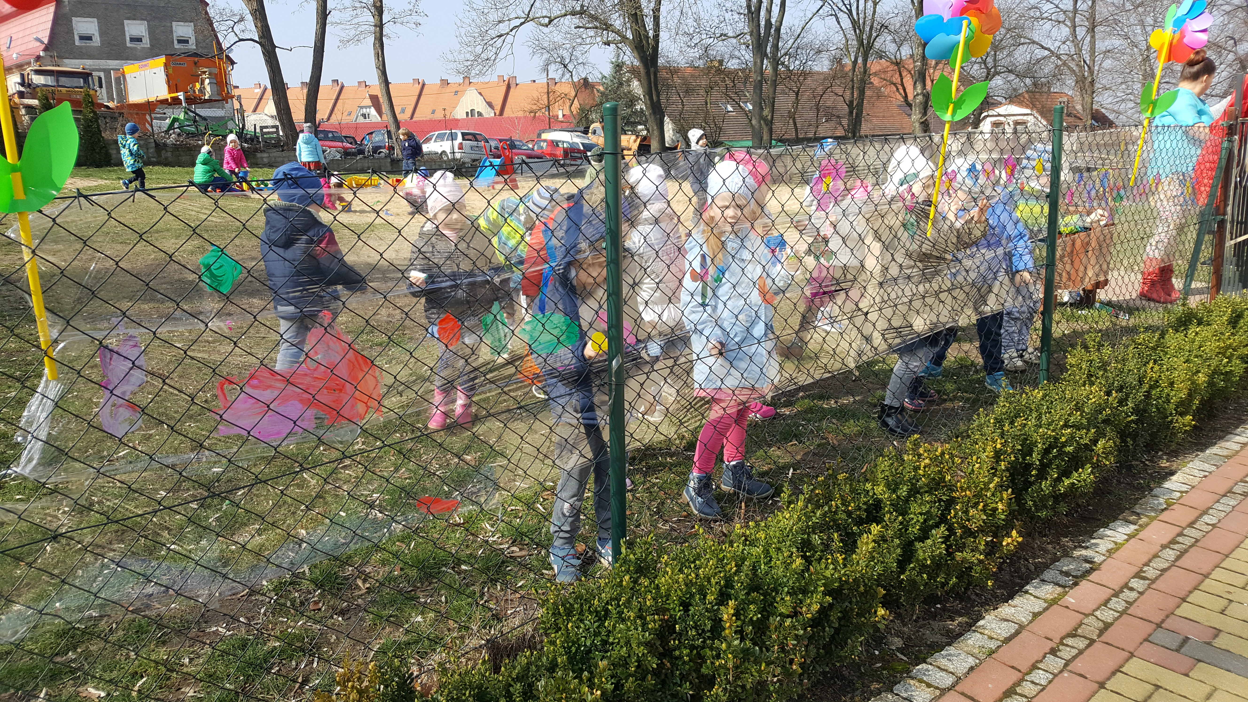 Następnie kolorowe pochody ruszyły do lubańskich instytucji, wręczając pracownikom i mieszkańcom miasta własnoręcznie wykonane wiosenne kartki. Słońce radośnie do nas mrugało... Na drugi dzień wiosny dzieci uczestniczyły w warsztatach plastycznych na placu przedszkolnym. Wykonywały witrażyk wiosenny.