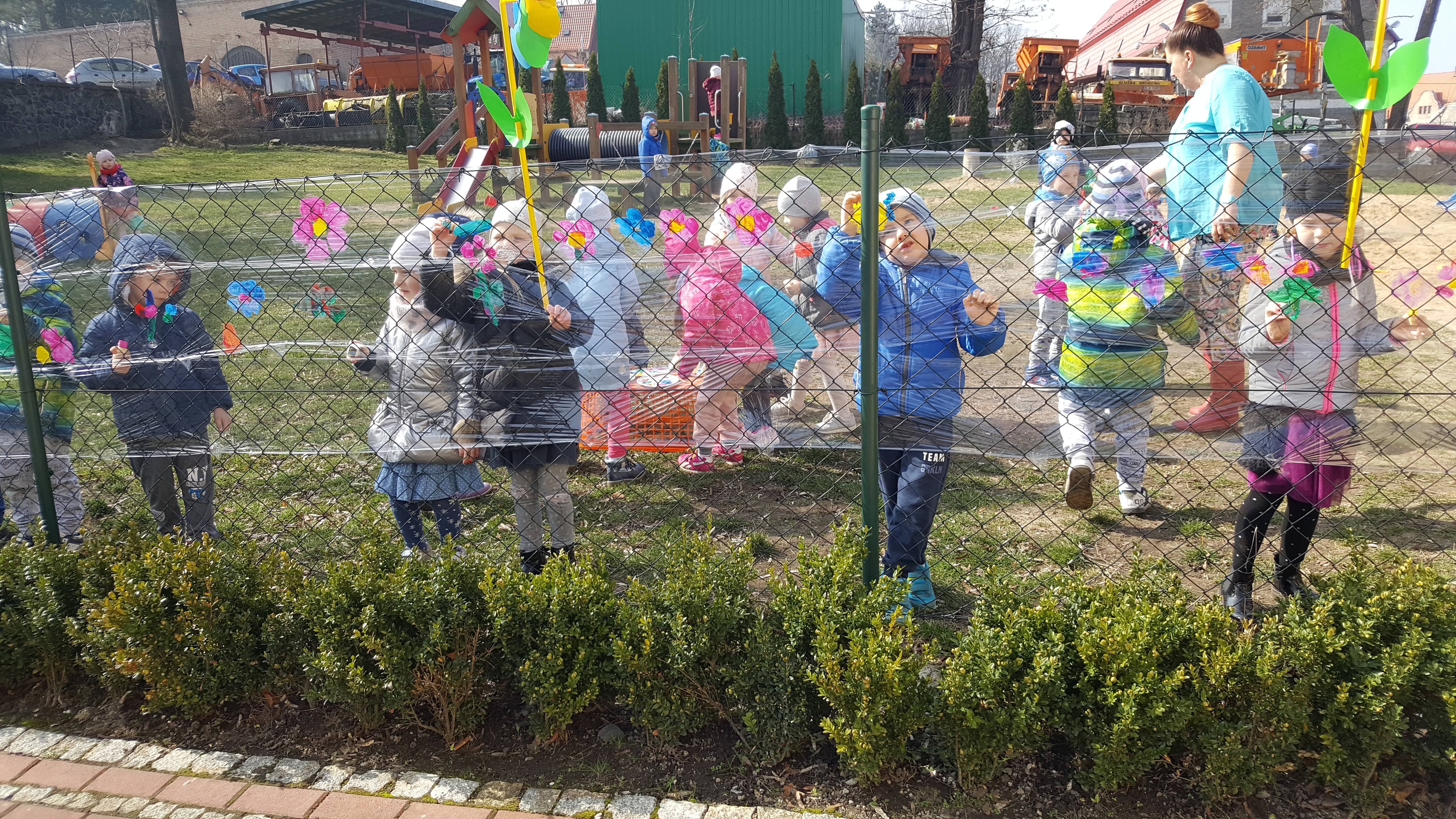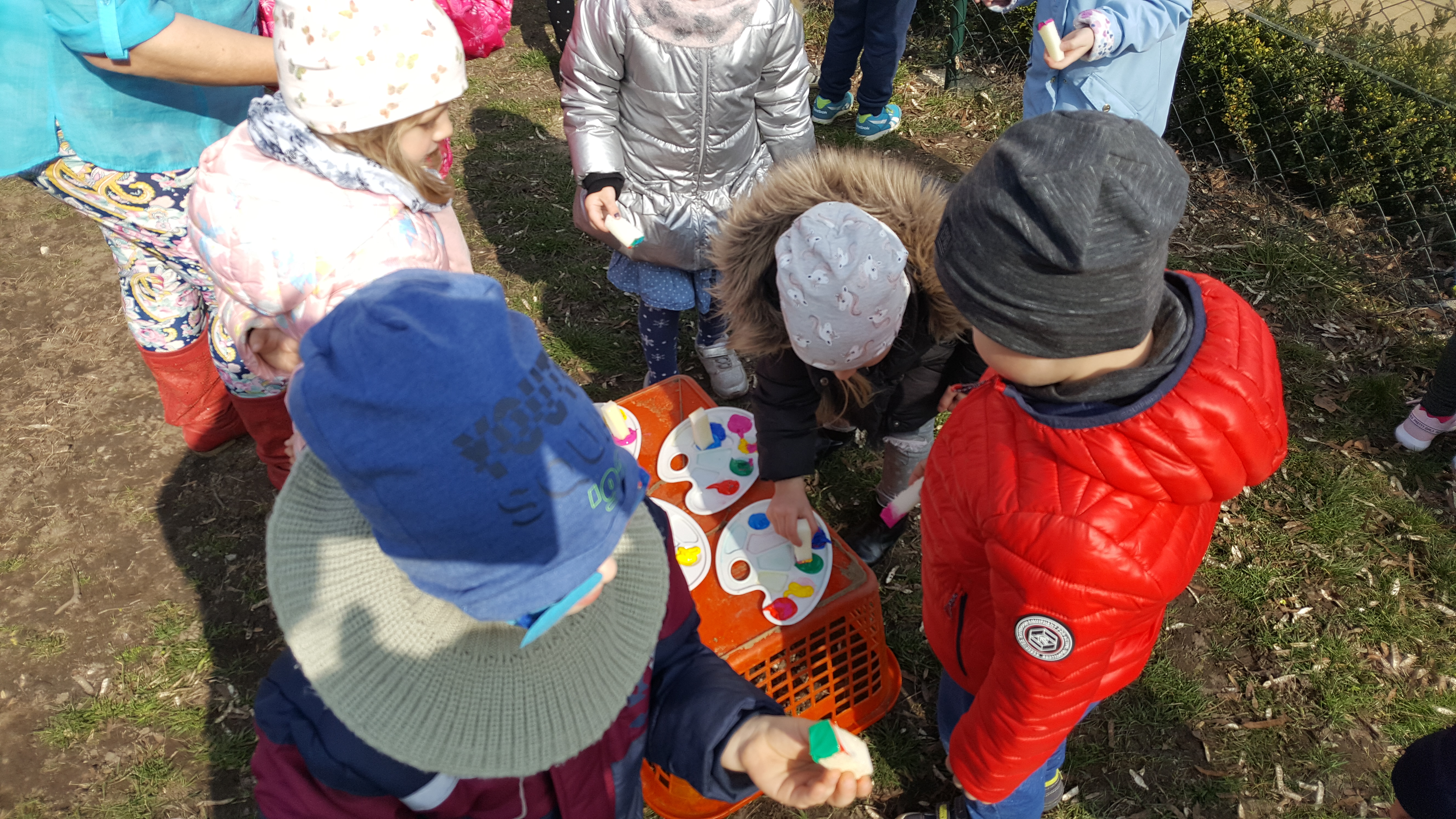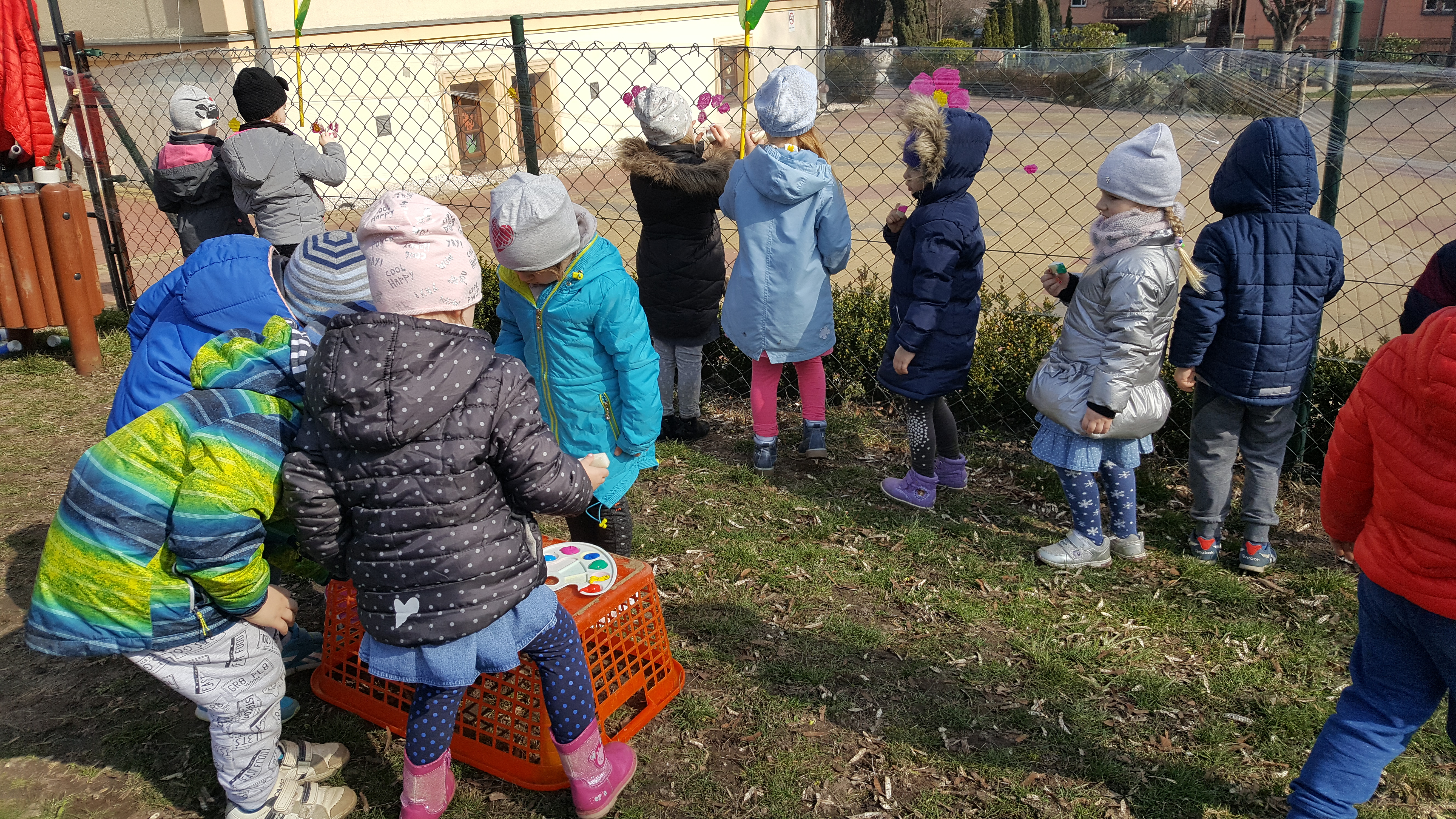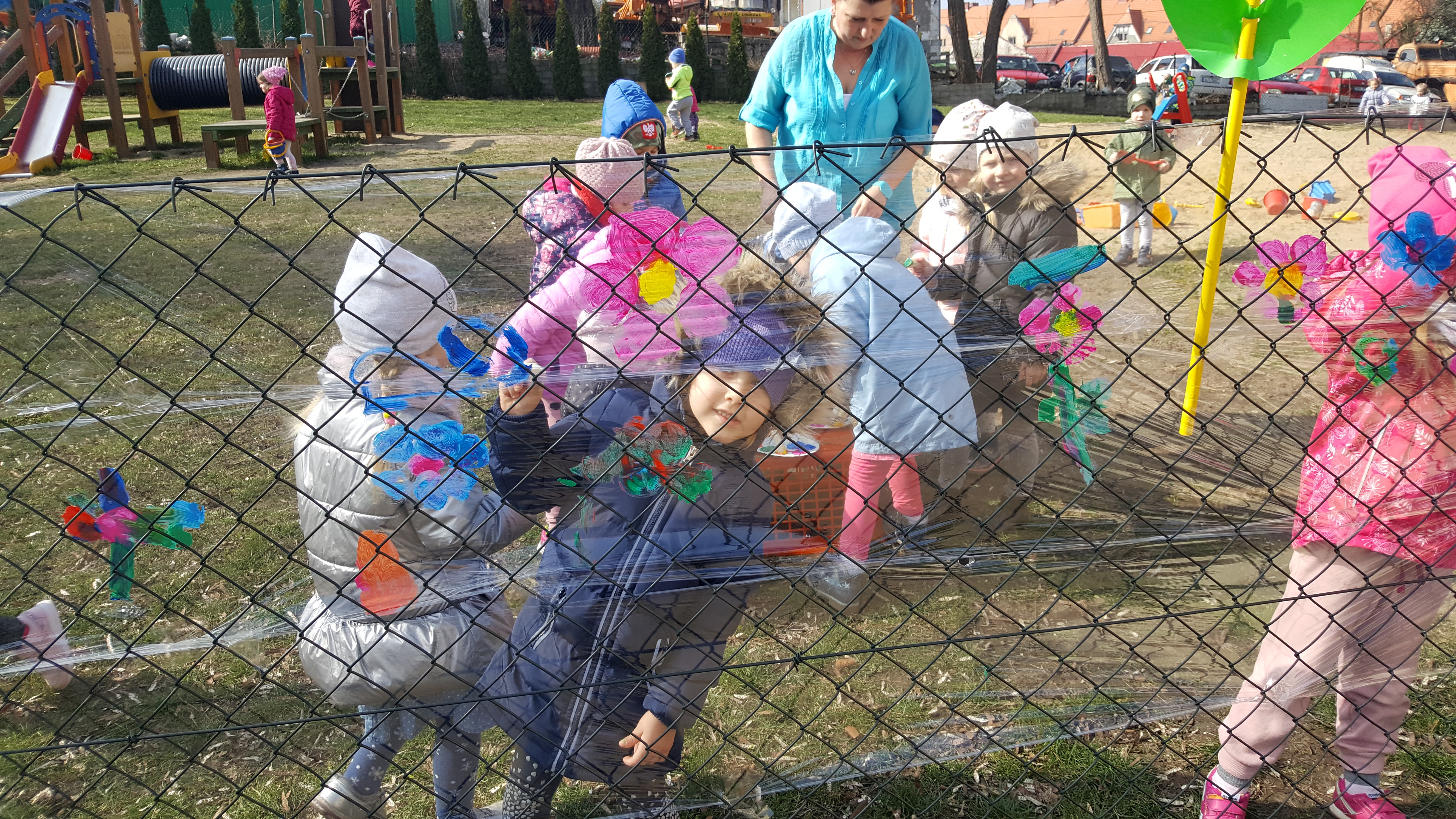 Następnie kolorowe pochody ruszyły do lubańskich instytucji, wręczając pracownikom i mieszkańcom miasta własnoręcznie wykonane wiosenne kartki. Słońce radośnie do nas mrugało... Na drugi dzień wiosny dzieci uczestniczyły w warsztatach plastycznych na placu przedszkolnym. Wykonywały witrażyk wiosenny.