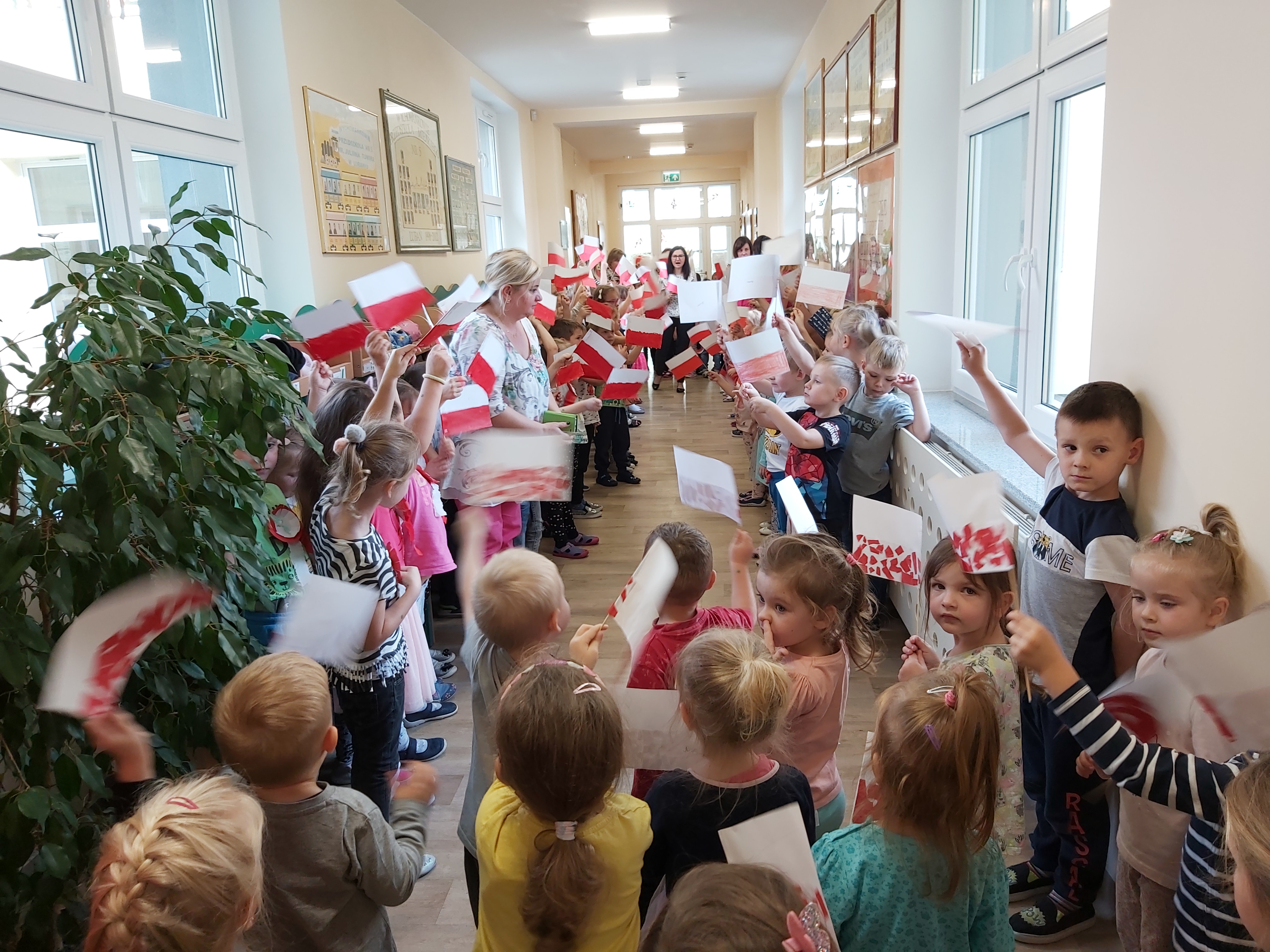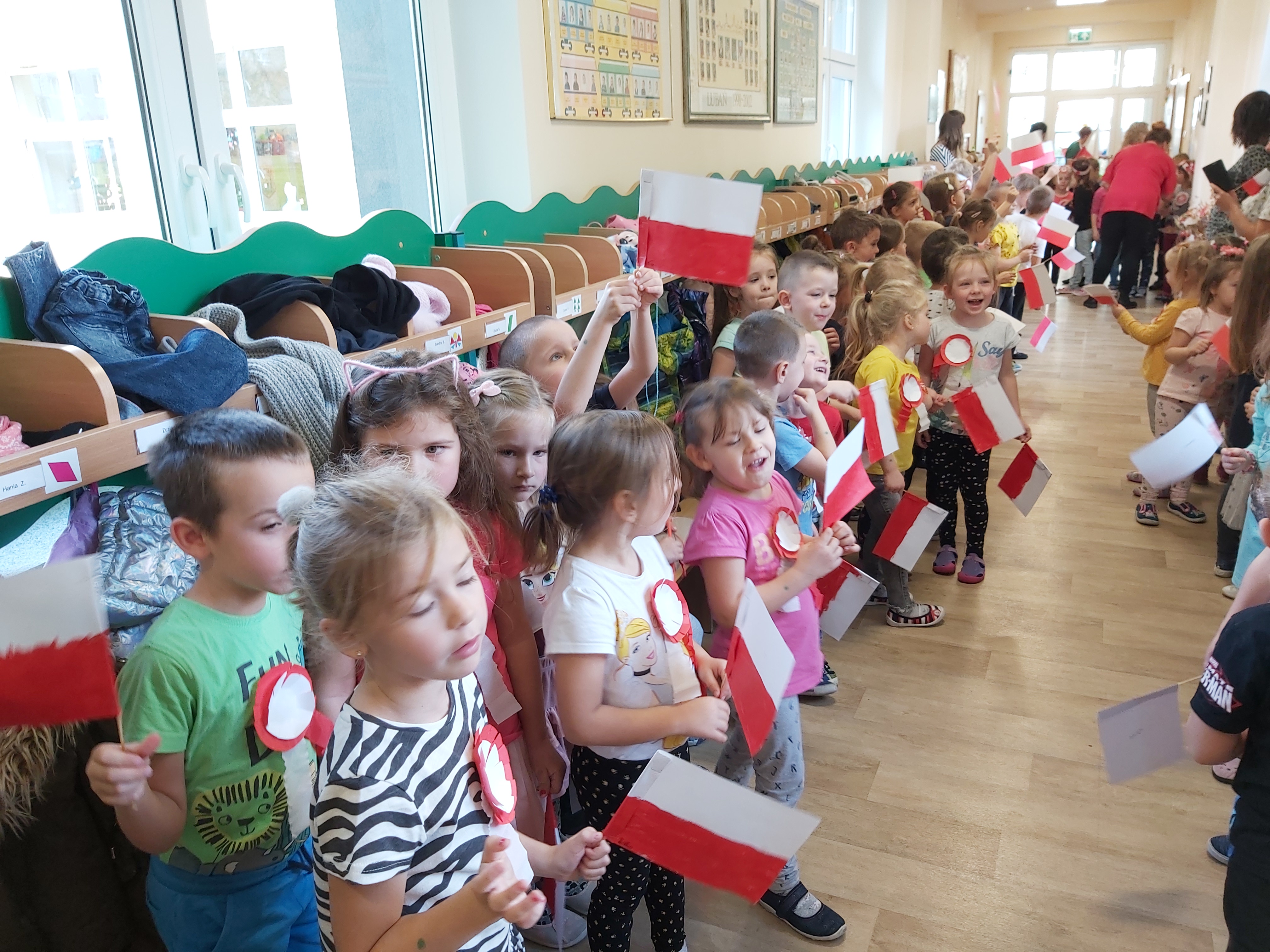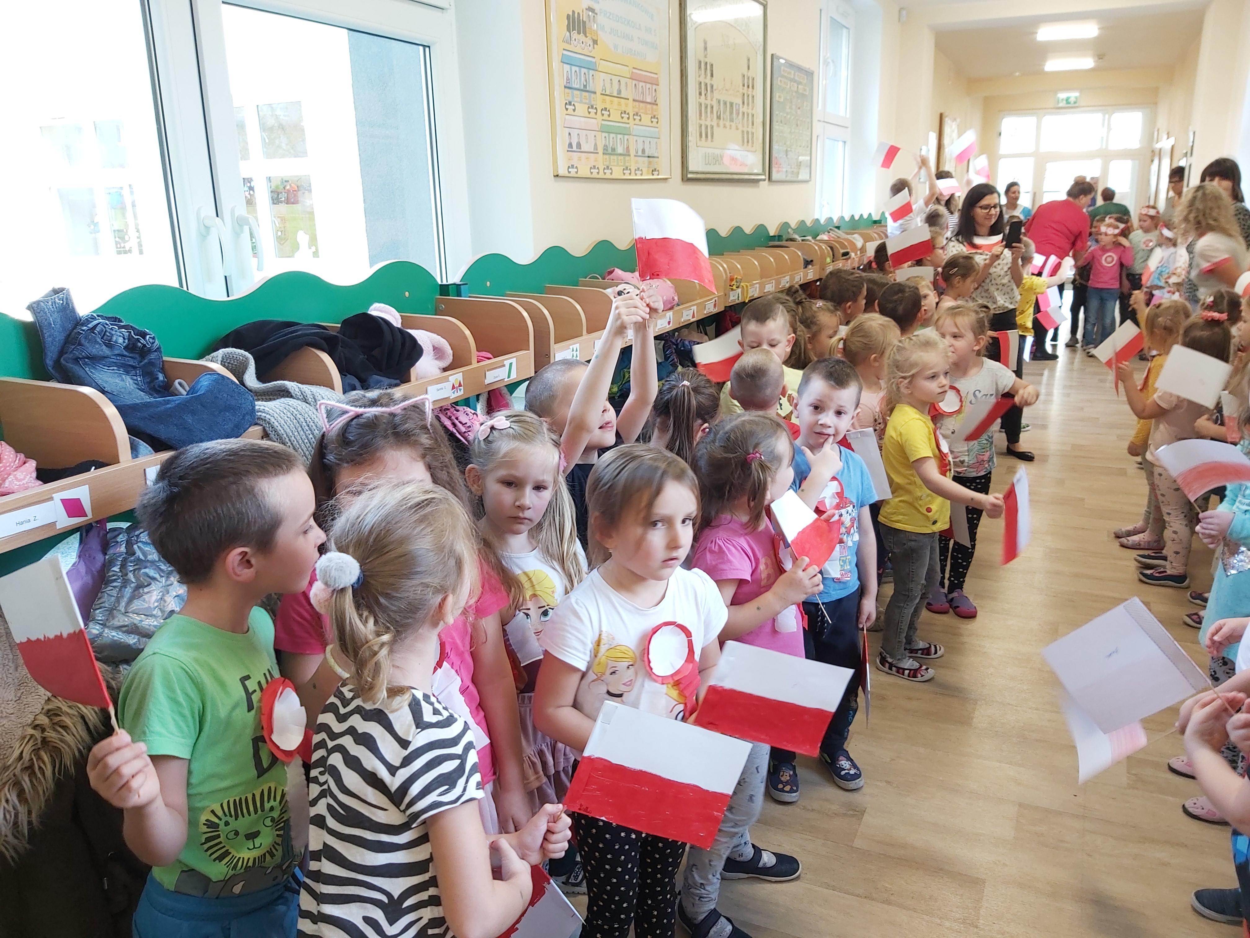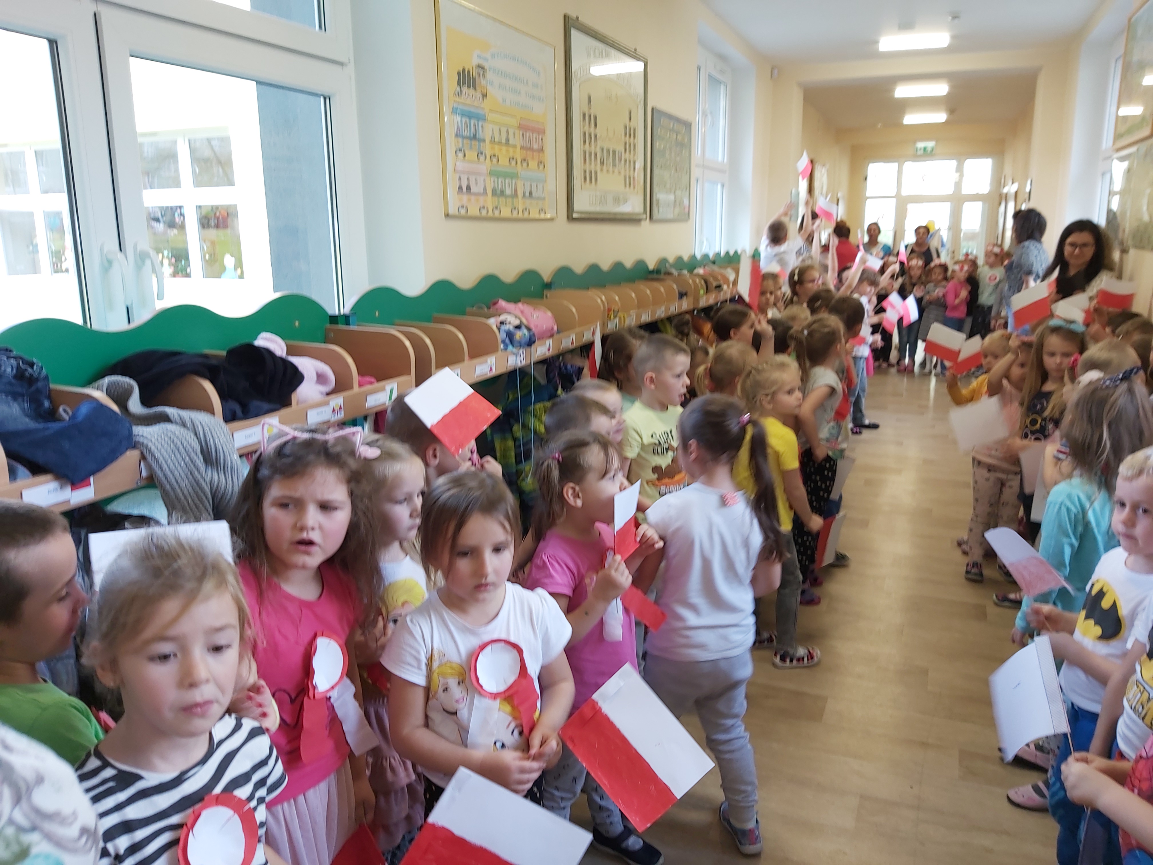 Podczas integracji społecznej dzieci z grupy V zaśpiewały piosenkę "Jesteśmy Polką i Polakiem". Występ dzieci , ich zaangażowanie i wykazanie postawy patriotycznej i artystycznej nagrodzony został gromkimi brawami. Głównym celem integracji było poznanie i szanowanie symboli narodowych, kształtowania miłości i szanowania ojczyzny i poznania jej dziejów.
