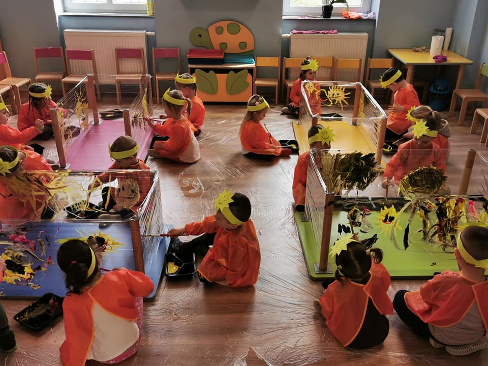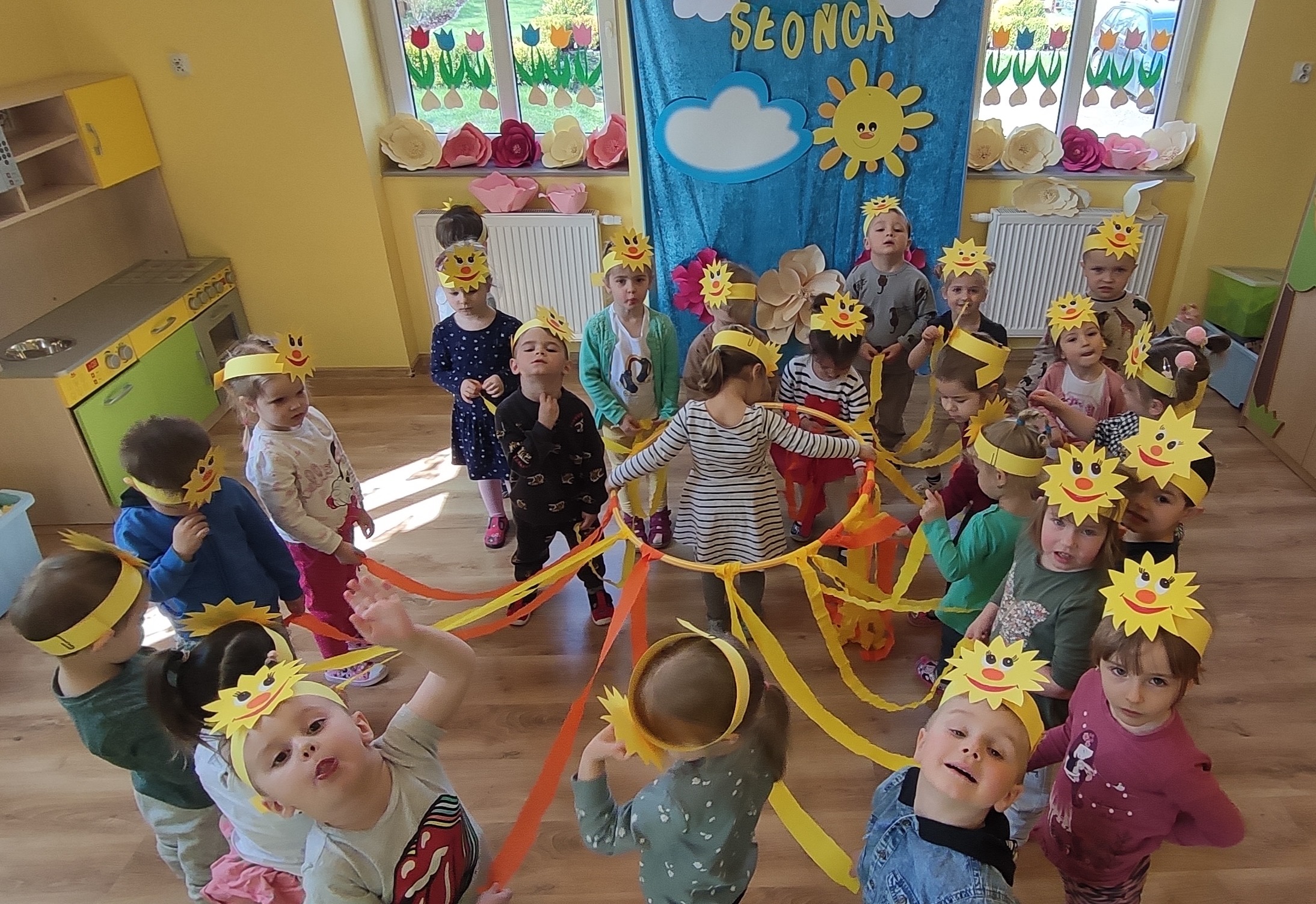 Międzynarodowy Dzień Słońca ustanowiony został przez Europejską Agencję Kosmiczną (ESA) i NASA w celu upowszechniania i poszerzania wiedzy o Słońcu oraz jego wpływie na Ziemię. We wtorek 4 maja Słoneczne Przedszkolaki obchodziły Dzień Słońca w radosnej i ciepłej atmosferze. Dominującym kolorem tego dnia był żółty, który rozweselał wszystkie miny. Dzieci utrwaliły wiadomości związane z kosmosem i Układem Słonecznym, uświadomiły sobie jak ważną rolę pełni Słońce dla rozwoju roślin i życia na Ziemi. Wszyscy bawili się doskonale, były wspólne eksperymenty, prace plastyczne, tańce i bardzo dużo zabaw ze słońcem w roli głównej.
