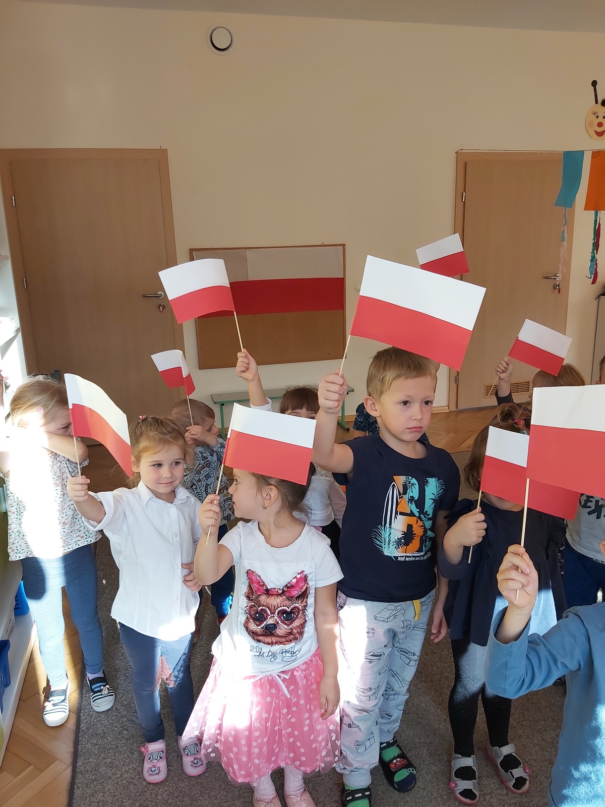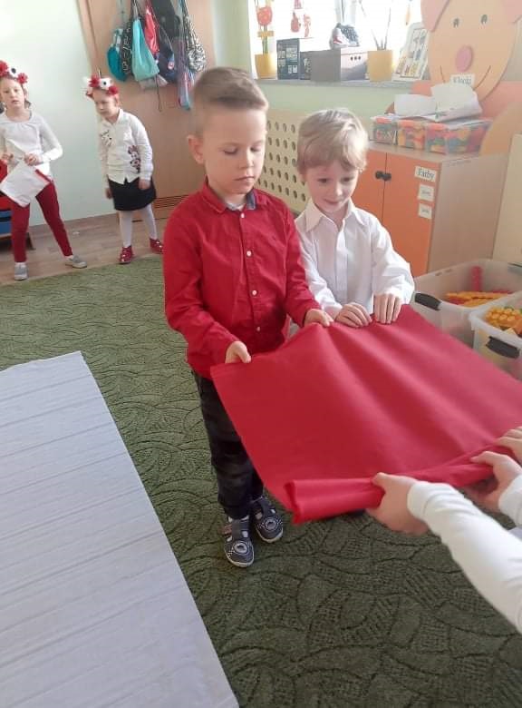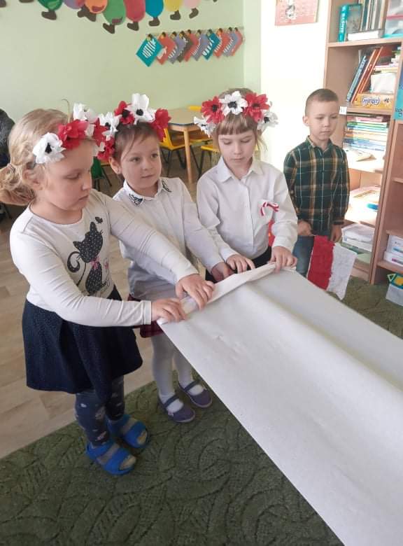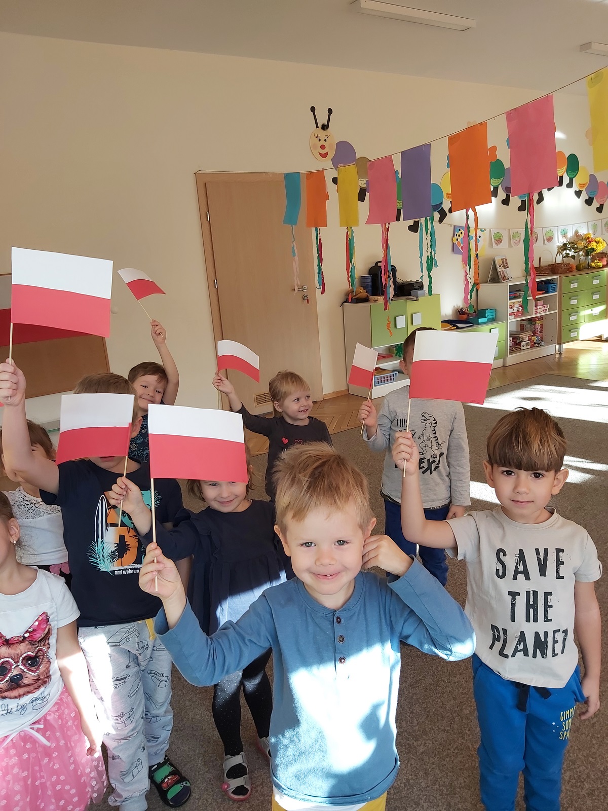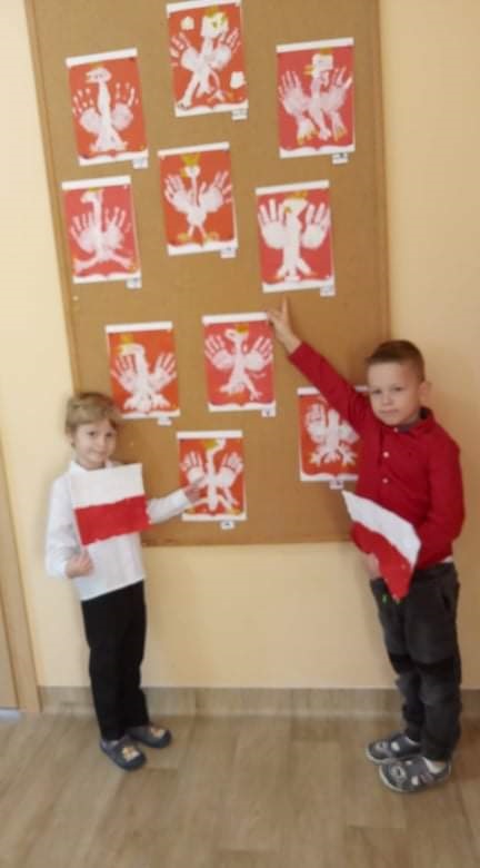 W naszym przedszkolu obchodzone uroczystości z okazji Święta Niepodległości miały niecodzienny charakter, każda grupa obchodziła je osobno. Przedszkolaki recytowały wiersze, słuchały pieśni patriotycznych, wykonywały ciekawe prace plastyczne upamiętniające ten dzień.