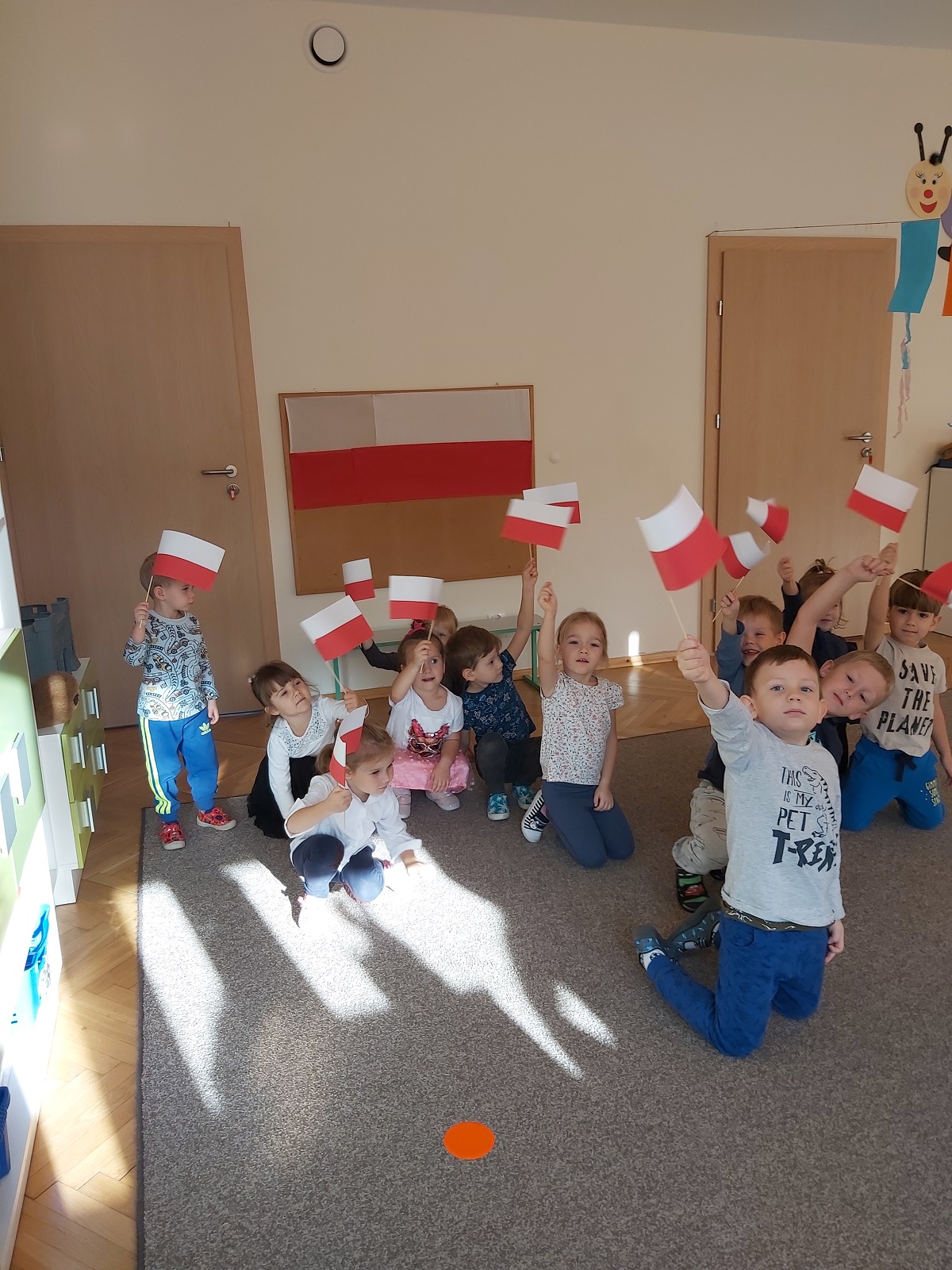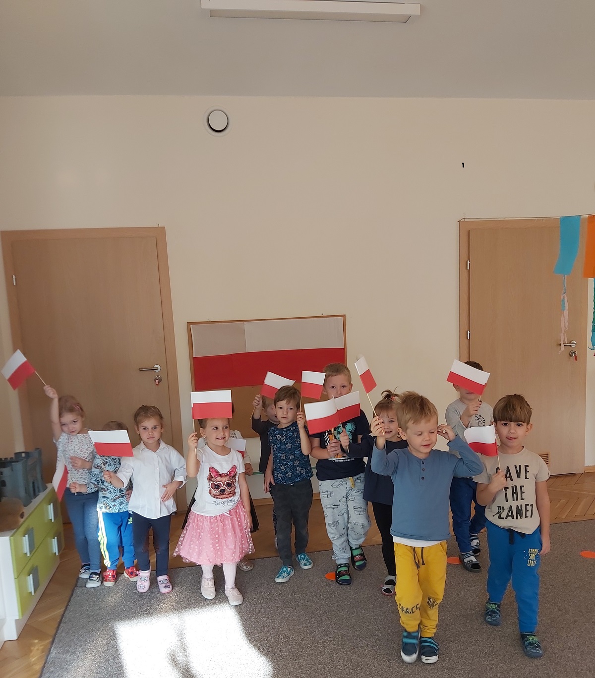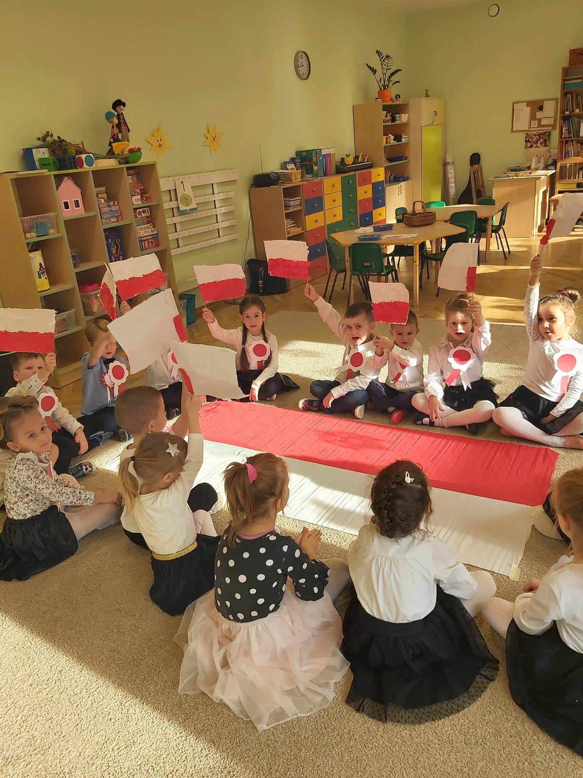 W naszym przedszkolu obchodzone uroczystości z okazji Święta Niepodległości miały niecodzienny charakter, każda grupa obchodziła je osobno. Przedszkolaki recytowały wiersze, słuchały pieśni patriotycznych, wykonywały ciekawe prace plastyczne upamiętniające ten dzień.