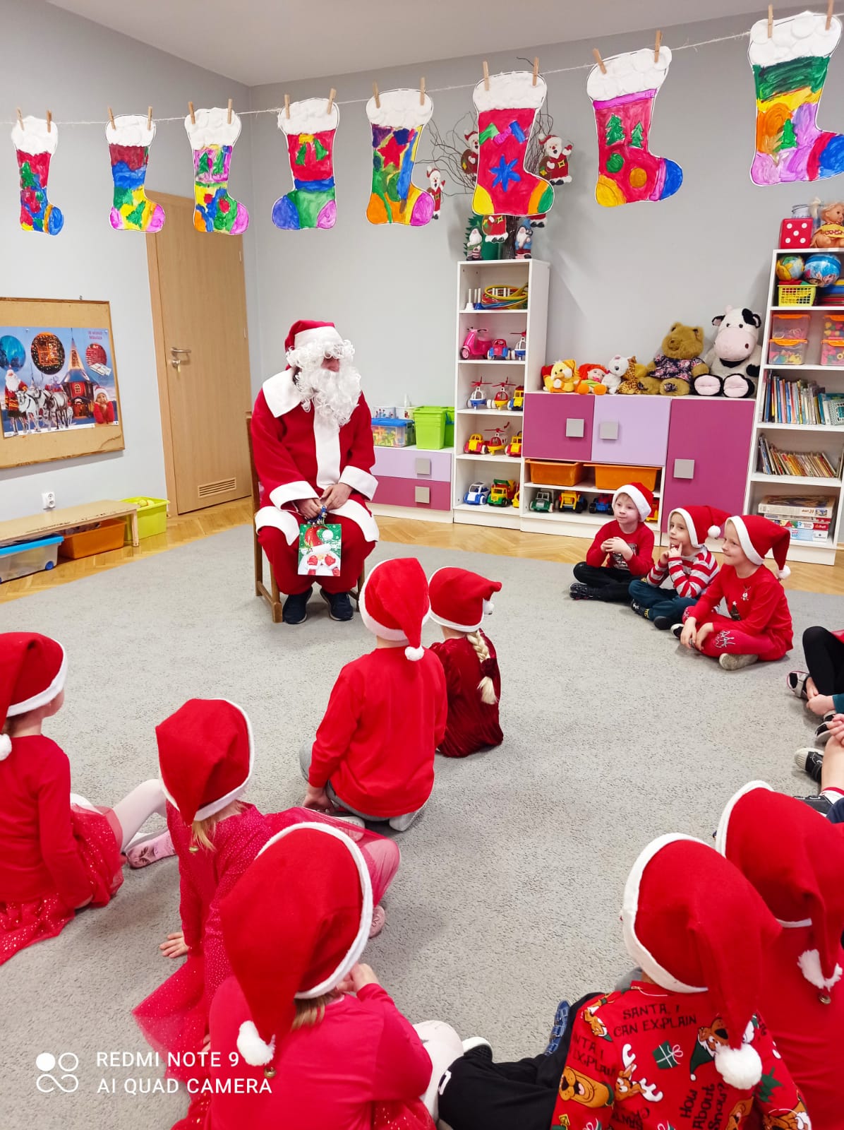 Każda z grup w ramach podziękowania za przybycie i otrzymane podarunki, recytowały wiersze i śpiewały piosenki, oraz tańce z Mikołajem. Atmosfera była pełna magii. Dzieci bardzo się cieszyły z podarunków, które otrzymały.