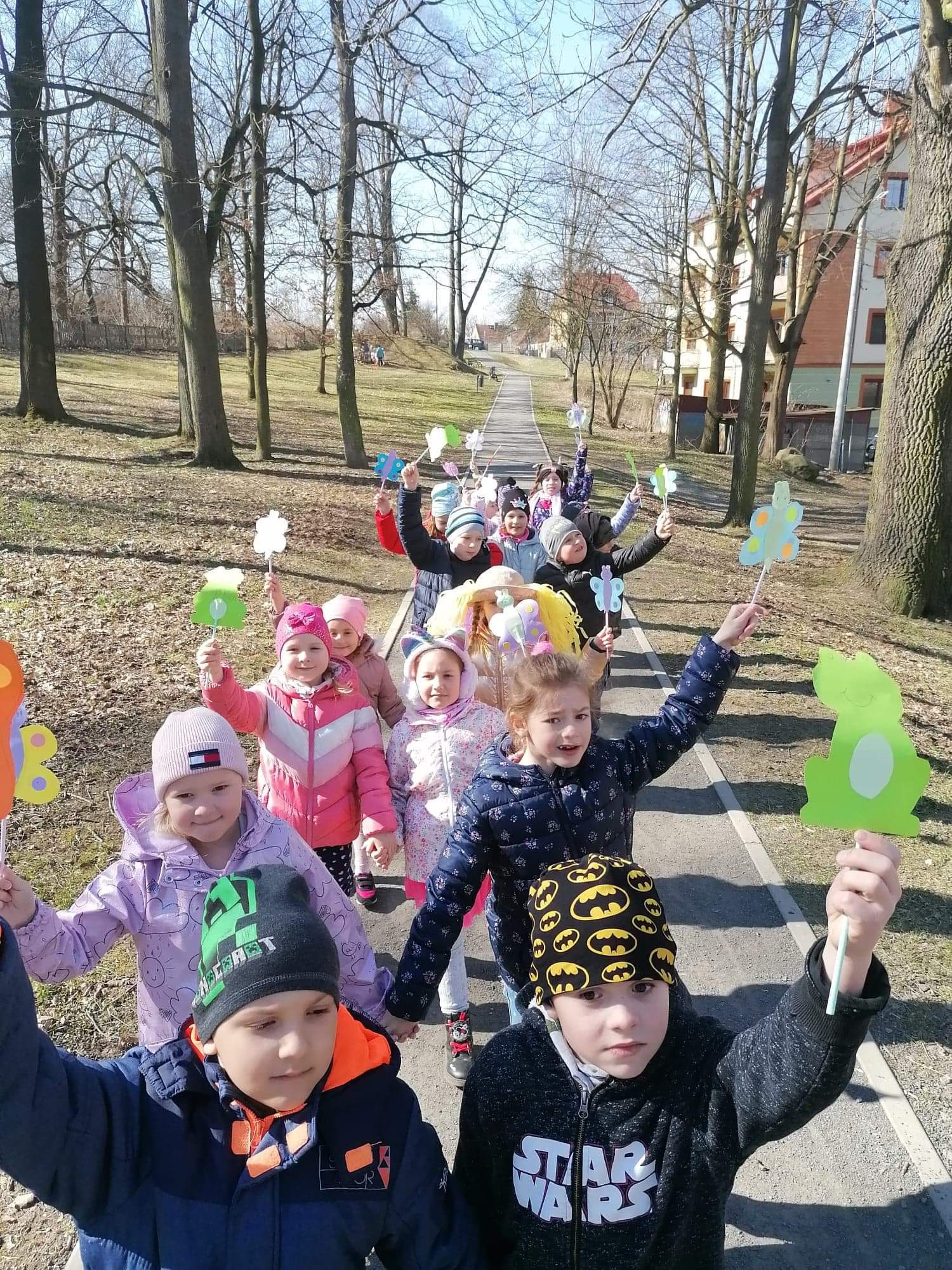 W pierwszym dniu wiosny dzieci pojawiły się w kolorach wiosennych. Były tańce, śpiewy, wiosenne quizy, zagadki, mnóstwo zabaw i aktywności plastycznej związane z nową porą roku. Następnie przedszkolaki udały się na wiosenny spacer, aby poszukać oznak wiosny w przyrodzie. A marcowa pogoda dopisywała, było słonecznie i ciepło. Ptaki śpiewały radośnie. Dzieci wróciły do przedszkola z wiosennym uśmiechem... Serdecznie dziękujemy rodzicom za zaangażowanie w przygotowaniach wiosennych.