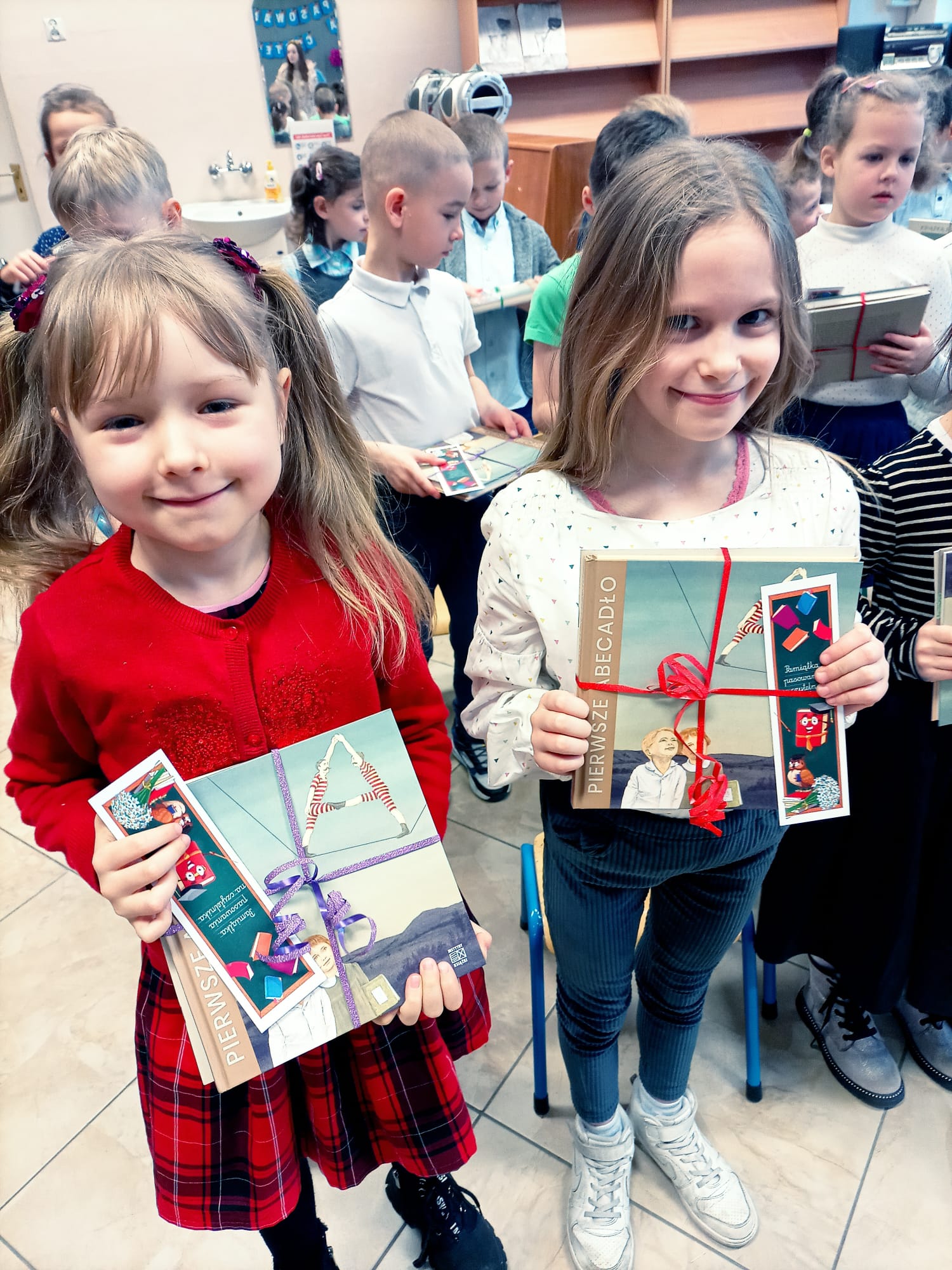 Głównym celem uroczystości było zachęcenie najmłodszych uczniów do korzystania z biblioteki szkolnej, wypożyczania książek oraz nieustannego rozwijania umiejętności czytania.