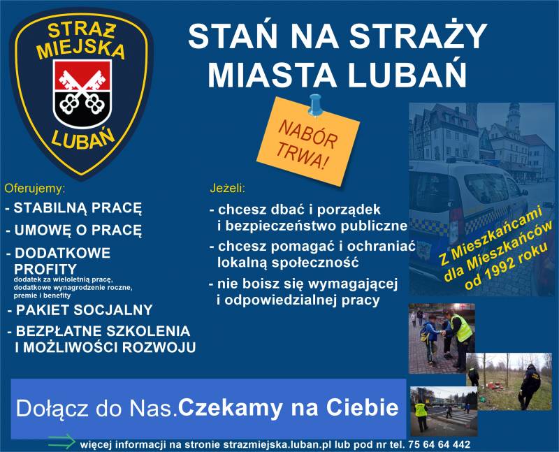 Aplikacje, które wpłyną do Straży Miejskiej w Lubaniu po wyżej określonym terminie nie będą rozpatrywane.