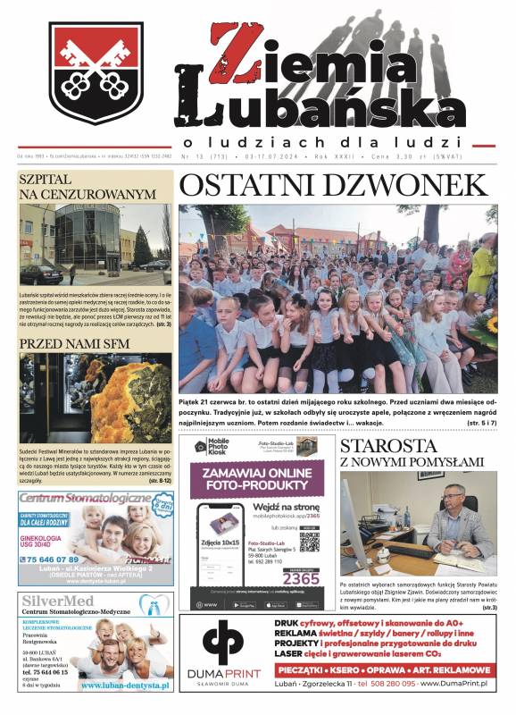Miasto żyje już Sudeckim Festiwalem Minerałów oraz LAWĄ 2024, które odbędą się w ten weekend (5-7 lipca) w centrum Lubania - w numerze cały program imprez!