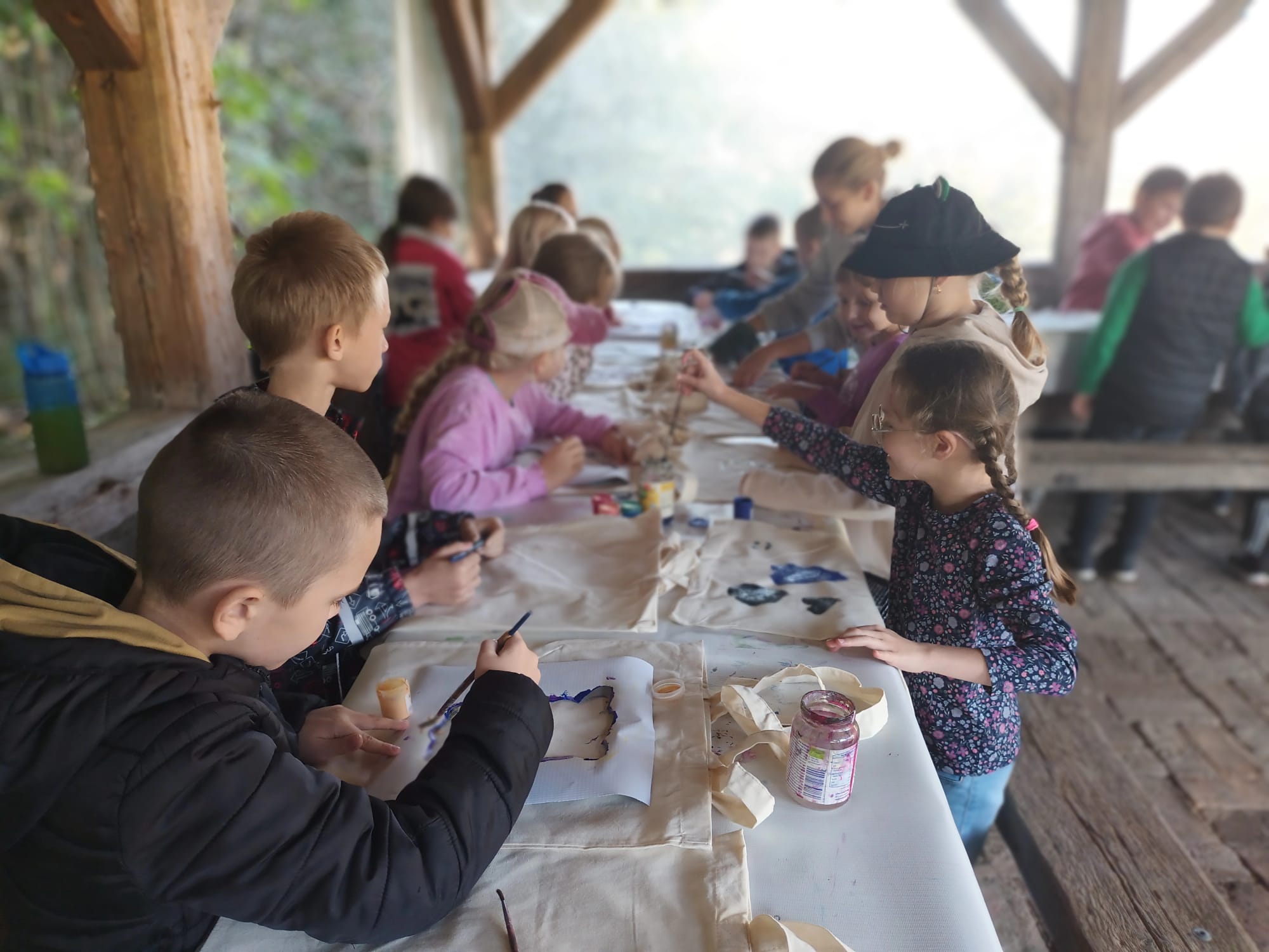 W trakcie pobytu każde dziecko otrzymało torbę, którą mogło samodzielnie ozdobić i pomalować, tworząc pamiątkę z wycieczki. Dzieci wykazały się ogromną kreatywnością, a ich własnoręcznie wykonane torby stały się wyjątkowymi, kolorowymi dziełami sztuki.