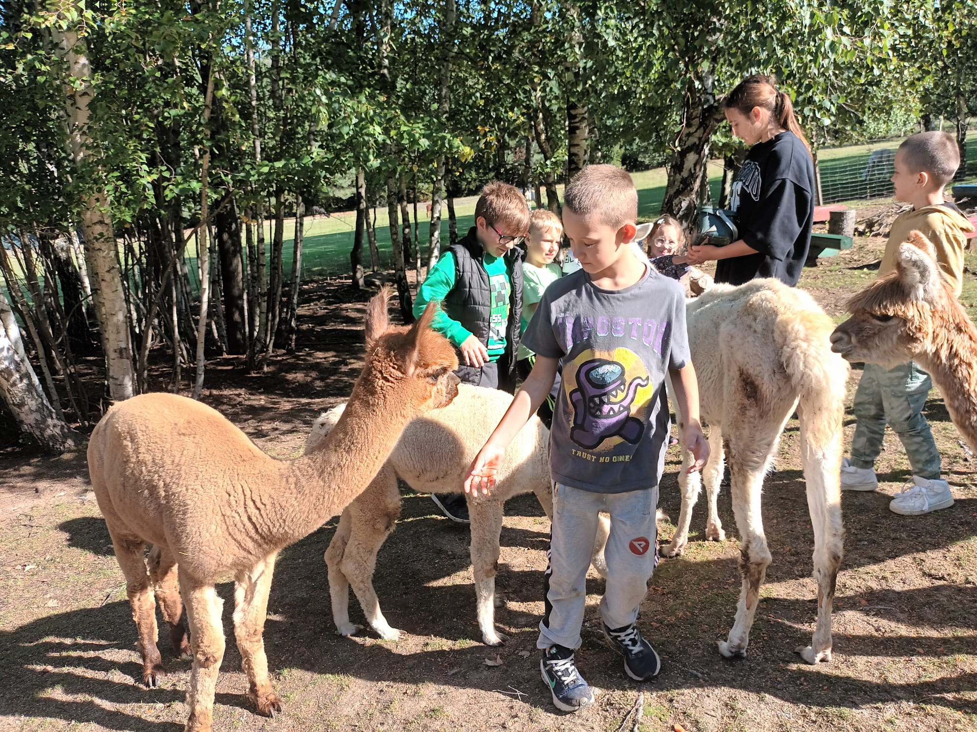 Na zakończenie wizyty odbyło się wspólne smażenie kiełbasek, które było prawdziwą ucztą po pełnym wrażeń dniu. Dzieci z uśmiechami na twarzach wróciły do domu, zachwycone zarówno kontaktem z alpakami, jak i licznymi atrakcjami, jakie przygotowano podczas wycieczki.