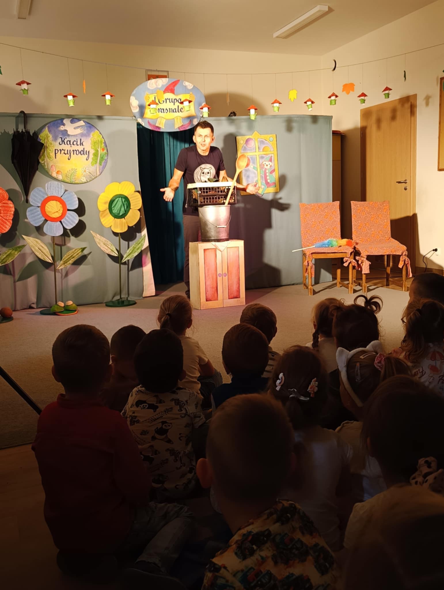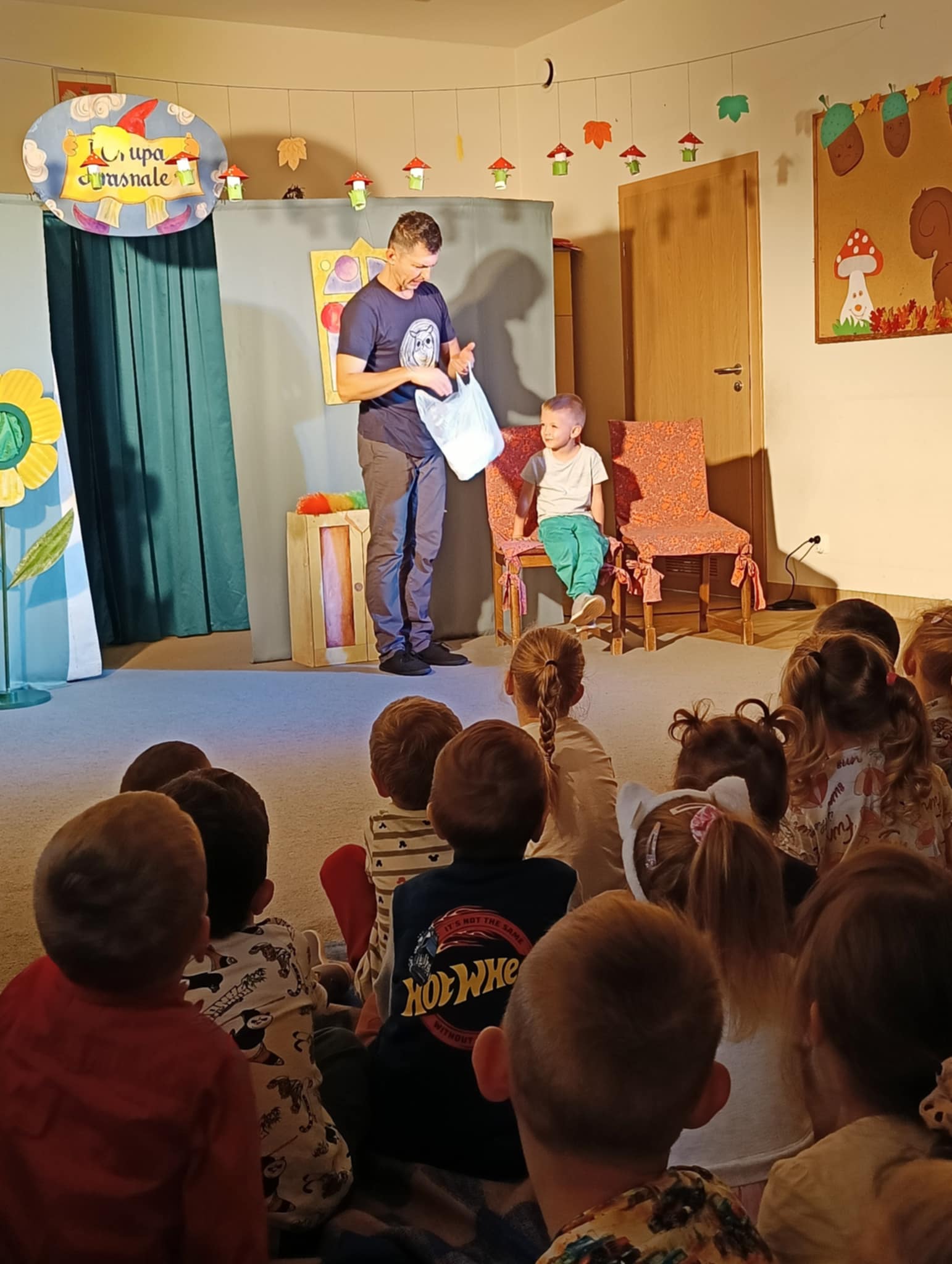 Spektakl zawierał sporą dawkę wartości wychowawczych. W tym przedstawieniu mogły wykazać się także nasze przedszkolaki, które wystąpiły razem z aktorami na scenie. Uczyły się jak należy segregować śmieci, przechodzić bezpiecznie przez ulicę, oraz opiekować się swymi pupilami. Dzieci z uwagą oglądnęły spektakl i nagrodziły aktorów brawami.