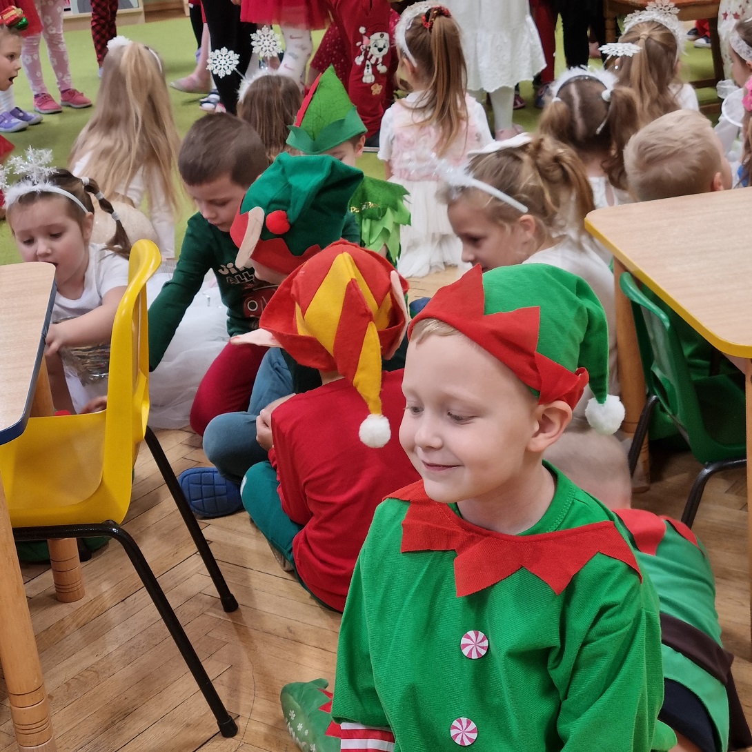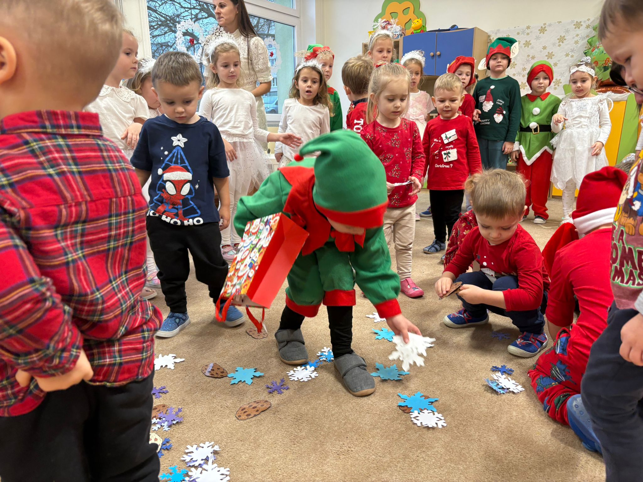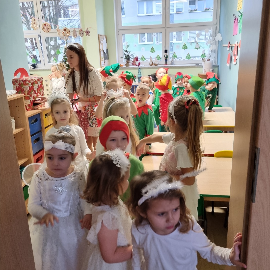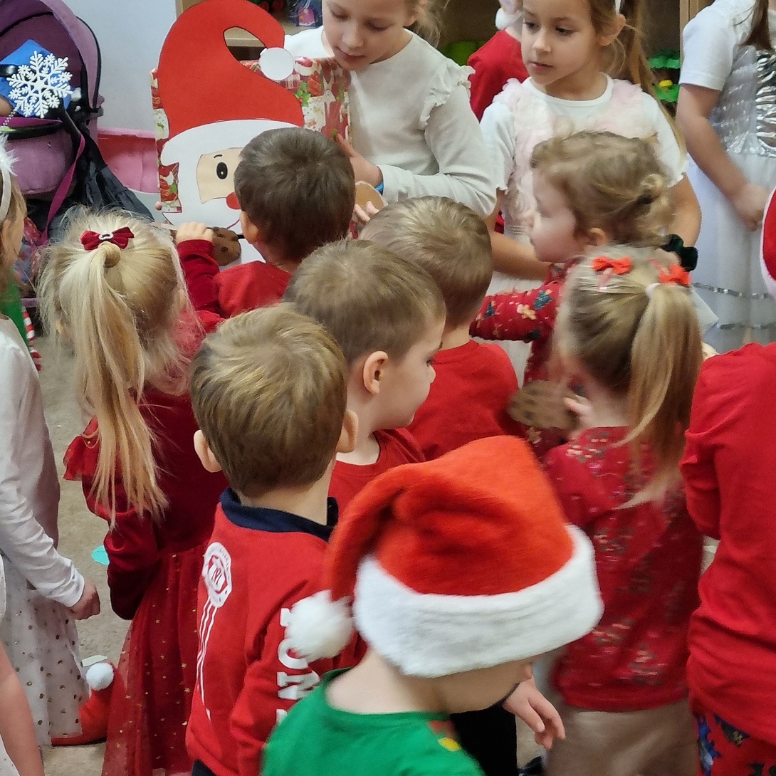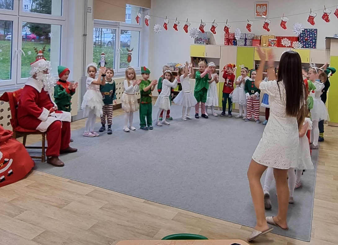 Chociaż nie było śniegu, jak co roku przybył na czas. Spotkanie przebiegało w radosnej atmosferze. Dzieci z grupy IV pod opieka pani Ani powitały niezwykłego gościai oprowadzały Mikołaja po przedszkolu. Wszystkie dzieci ubrały się na kolor czerwony, a głowy zdobiły mikołajowe czapki lub opaski świąteczne.Każda grupa przygotowała dla gościa muzyczną niespodziankę. Przedszkolaki starannie przygotowały się do wizyty Św. Mikołaja. W przedszkolu pisały lub rysowały listy, nauczyły się piosenek o Mikołaju, wykonywały prace plastyczne o tematyce świątecznej, ubierały choinkę, dekorowały salę, piekły pierniczki i wykonywały smakołyki cukierkowe.Na twarzach dzieci malował się uśmiech, przejęcie, a takze nadzieja na kolejne spotkanie. Św. Mikołaju bardzo dziękujemy za odwiedziny , podarki otrzymane od Ciebie bardzo nam podobają się. Dziękujemy za odwiedziny i do zobaczenia za rok...