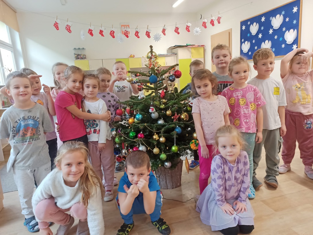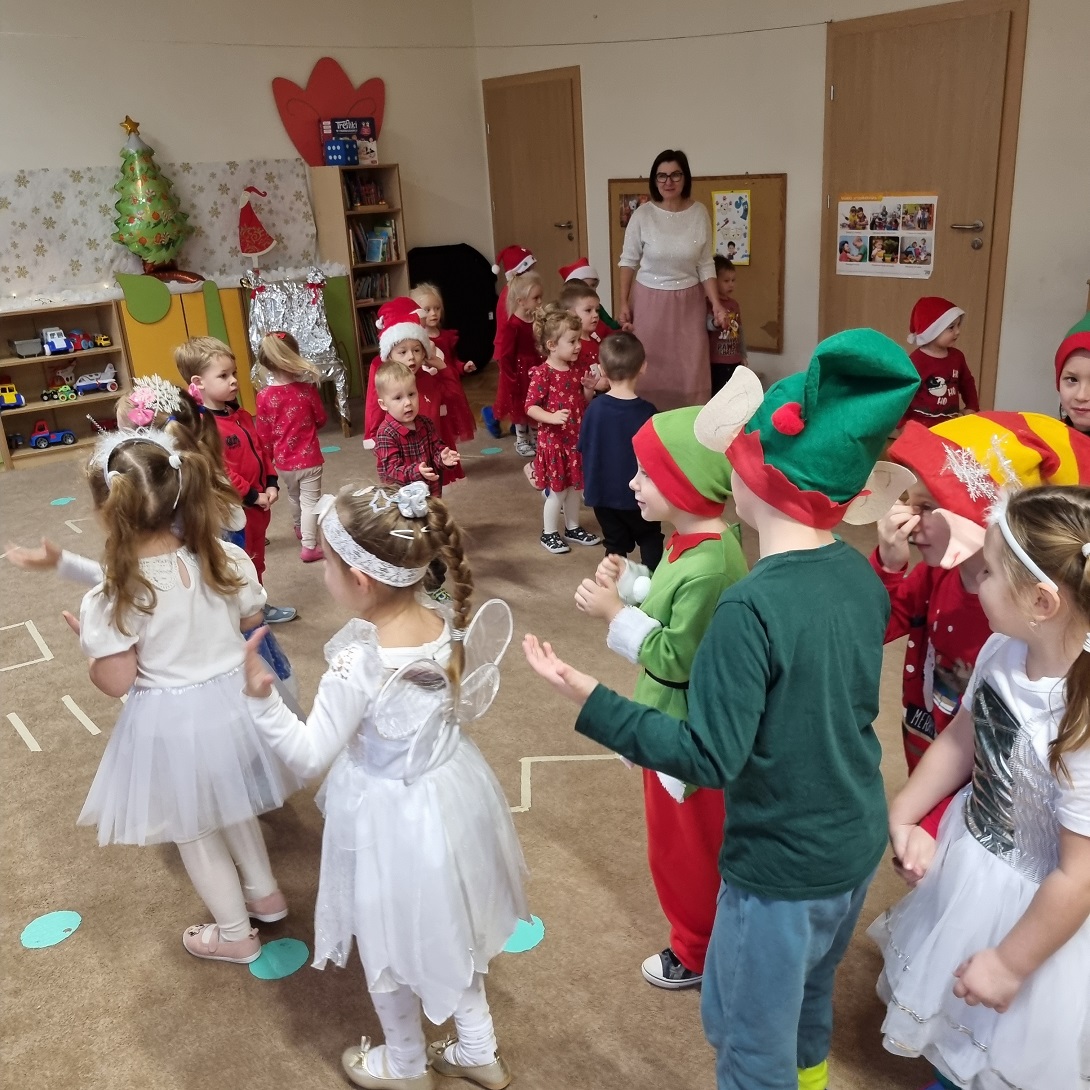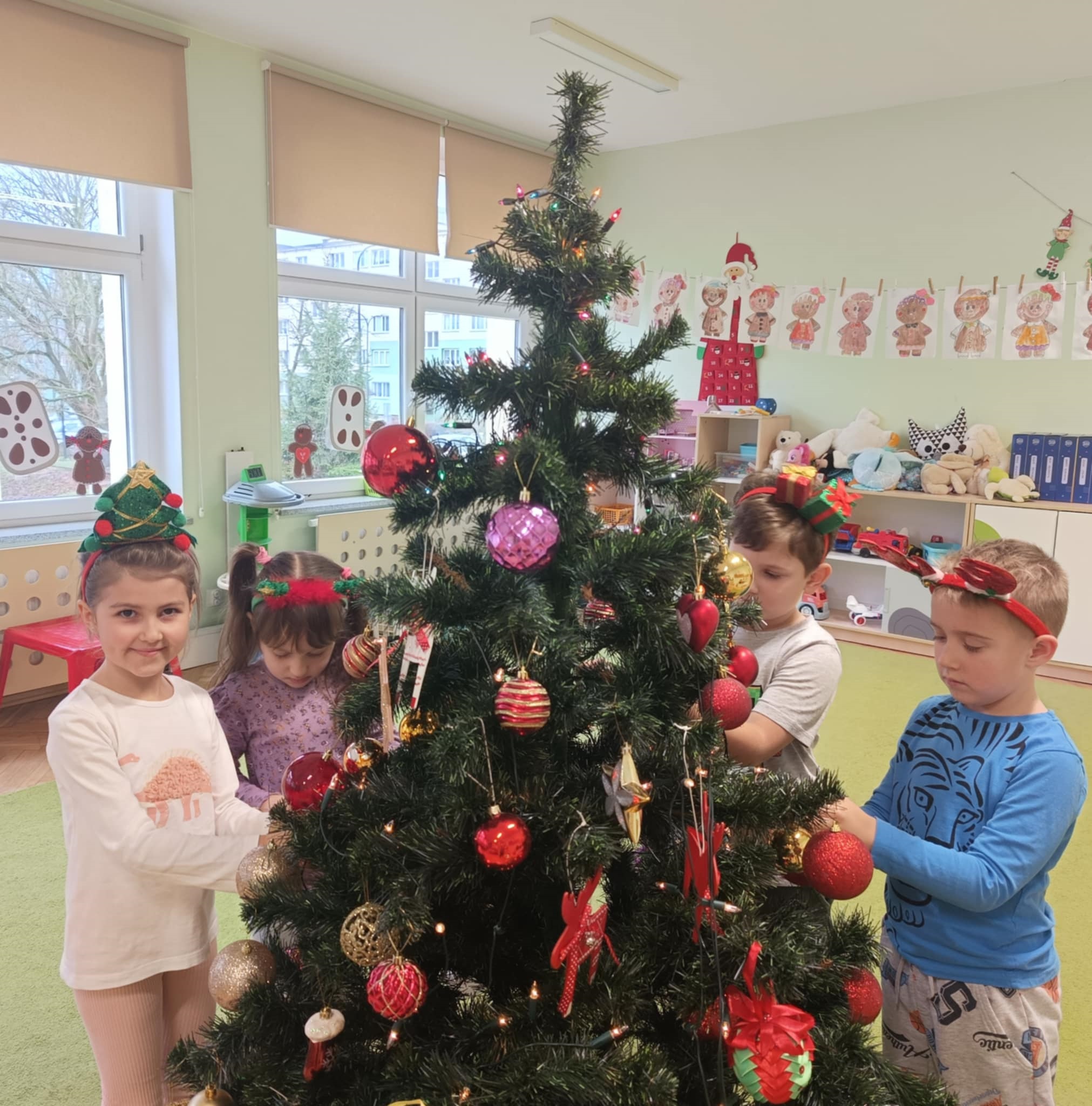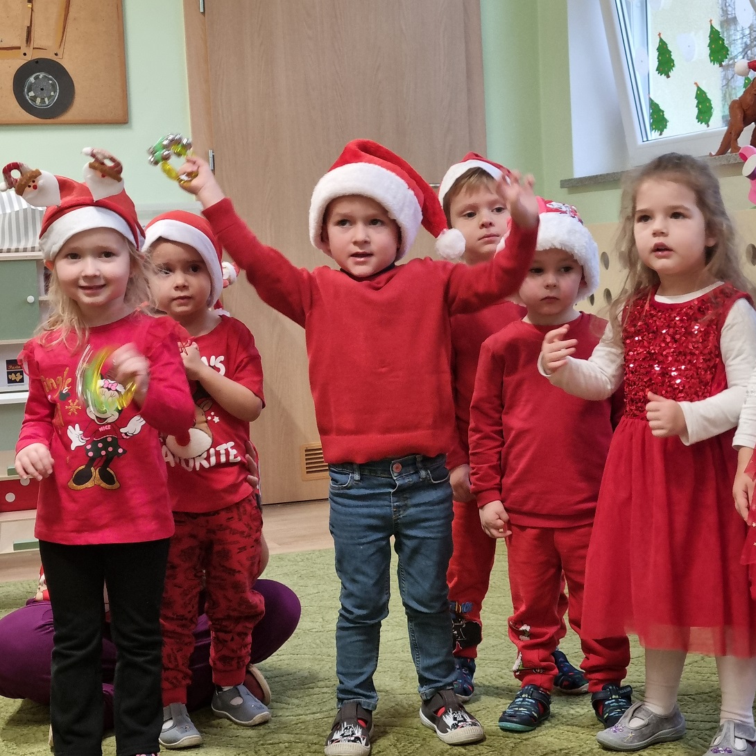 Chociaż nie było śniegu, jak co roku przybył na czas. Spotkanie przebiegało w radosnej atmosferze. Dzieci z grupy IV pod opieka pani Ani powitały niezwykłego gościai oprowadzały Mikołaja po przedszkolu. Wszystkie dzieci ubrały się na kolor czerwony, a głowy zdobiły mikołajowe czapki lub opaski świąteczne.Każda grupa przygotowała dla gościa muzyczną niespodziankę. Przedszkolaki starannie przygotowały się do wizyty Św. Mikołaja. W przedszkolu pisały lub rysowały listy, nauczyły się piosenek o Mikołaju, wykonywały prace plastyczne o tematyce świątecznej, ubierały choinkę, dekorowały salę, piekły pierniczki i wykonywały smakołyki cukierkowe.Na twarzach dzieci malował się uśmiech, przejęcie, a takze nadzieja na kolejne spotkanie. Św. Mikołaju bardzo dziękujemy za odwiedziny , podarki otrzymane od Ciebie bardzo nam podobają się. Dziękujemy za odwiedziny i do zobaczenia za rok...