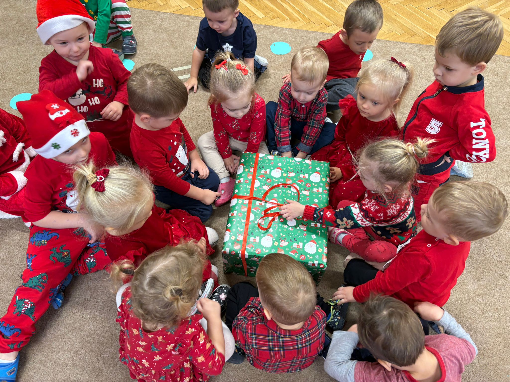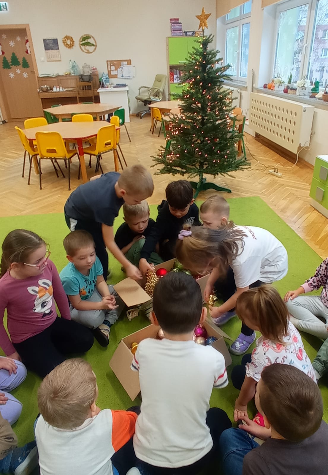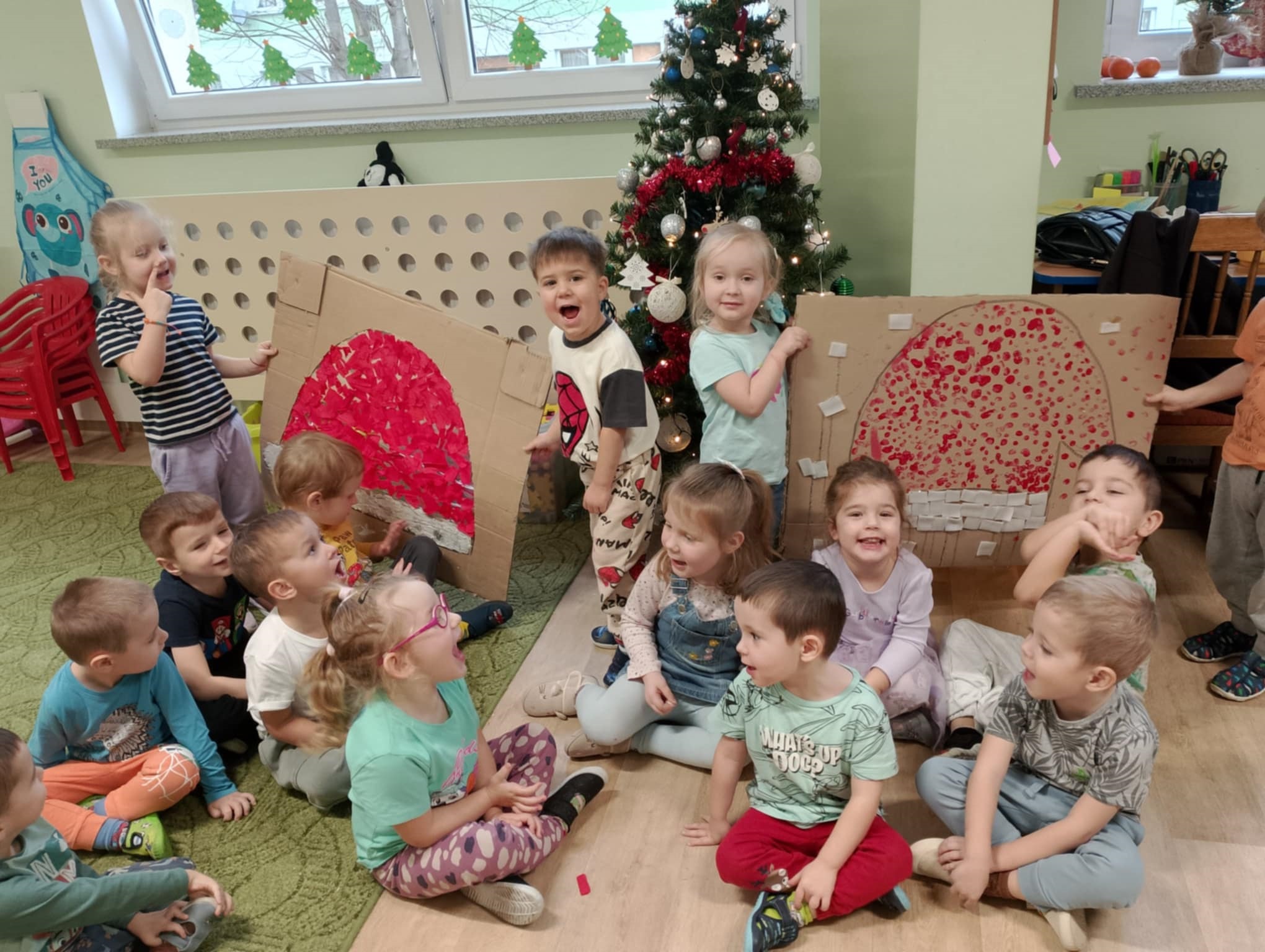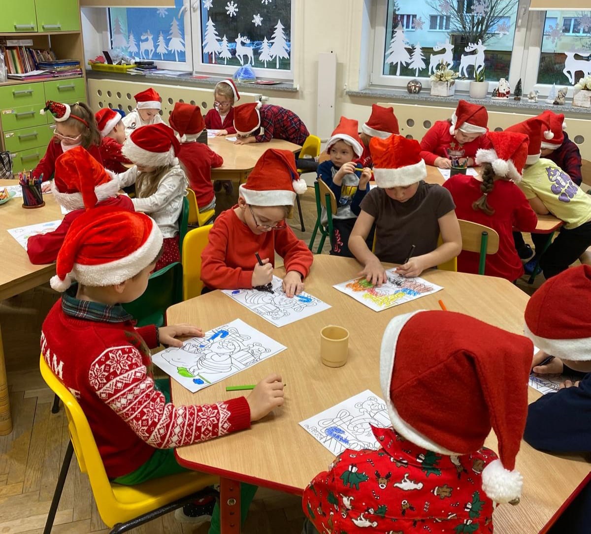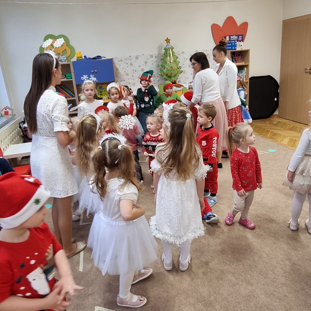 Chociaż nie było śniegu, jak co roku przybył na czas. Spotkanie przebiegało w radosnej atmosferze. Dzieci z grupy IV pod opieka pani Ani powitały niezwykłego gościai oprowadzały Mikołaja po przedszkolu. Wszystkie dzieci ubrały się na kolor czerwony, a głowy zdobiły mikołajowe czapki lub opaski świąteczne.Każda grupa przygotowała dla gościa muzyczną niespodziankę. Przedszkolaki starannie przygotowały się do wizyty Św. Mikołaja. W przedszkolu pisały lub rysowały listy, nauczyły się piosenek o Mikołaju, wykonywały prace plastyczne o tematyce świątecznej, ubierały choinkę, dekorowały salę, piekły pierniczki i wykonywały smakołyki cukierkowe.Na twarzach dzieci malował się uśmiech, przejęcie, a takze nadzieja na kolejne spotkanie. Św. Mikołaju bardzo dziękujemy za odwiedziny , podarki otrzymane od Ciebie bardzo nam podobają się. Dziękujemy za odwiedziny i do zobaczenia za rok...