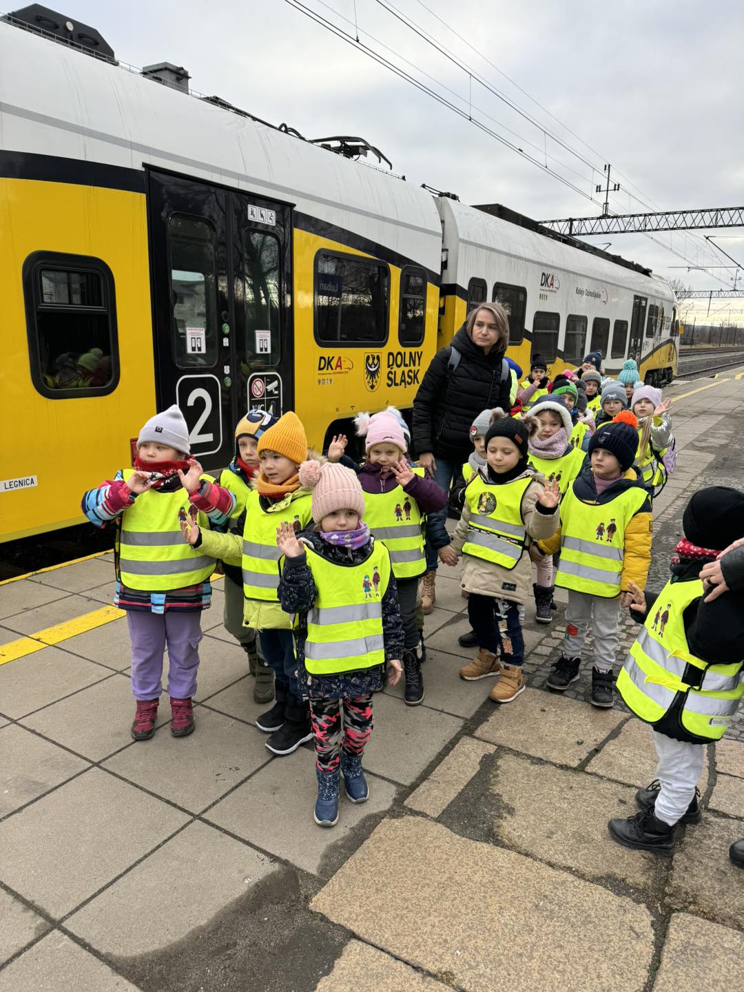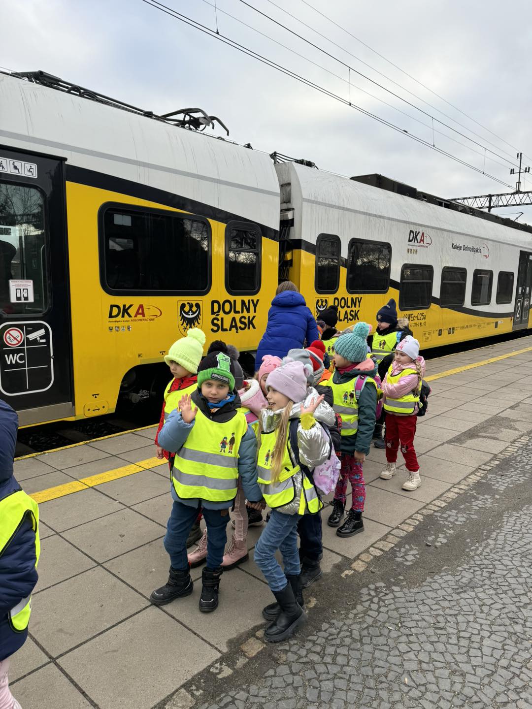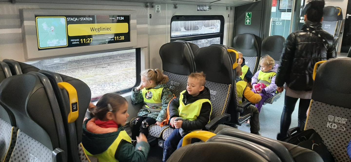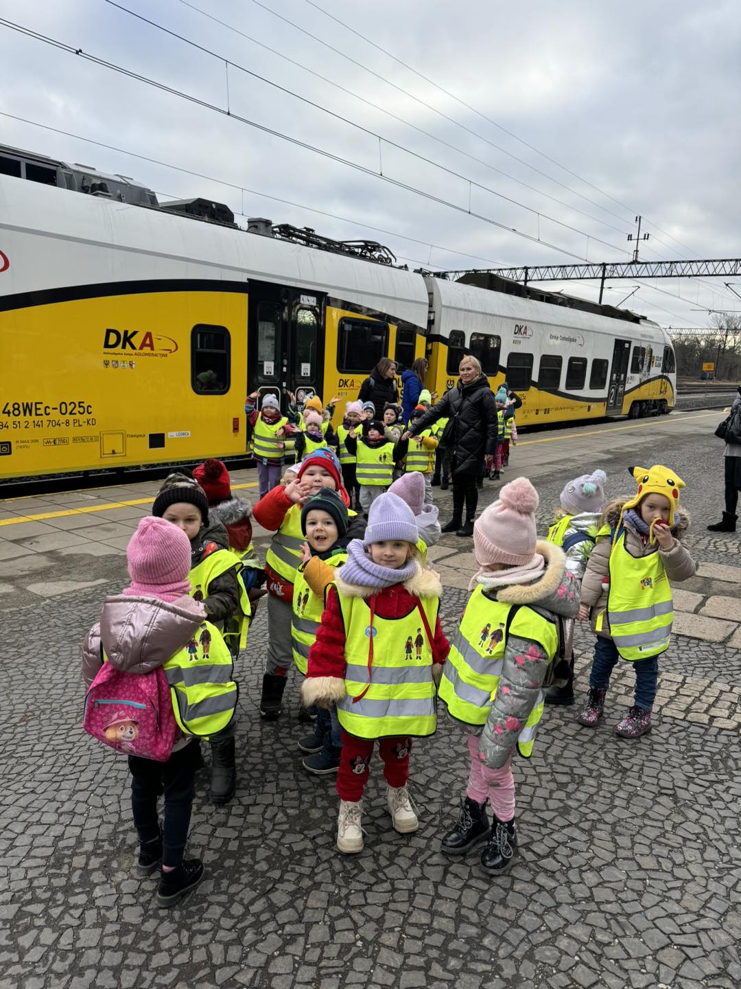 Dzisiaj odbyliśmy małą wycieczkę pociągiem do Węglińca. Celem wycieczki było zapoznanie dzieci ze środkiem transportu jakim jest pociąg.