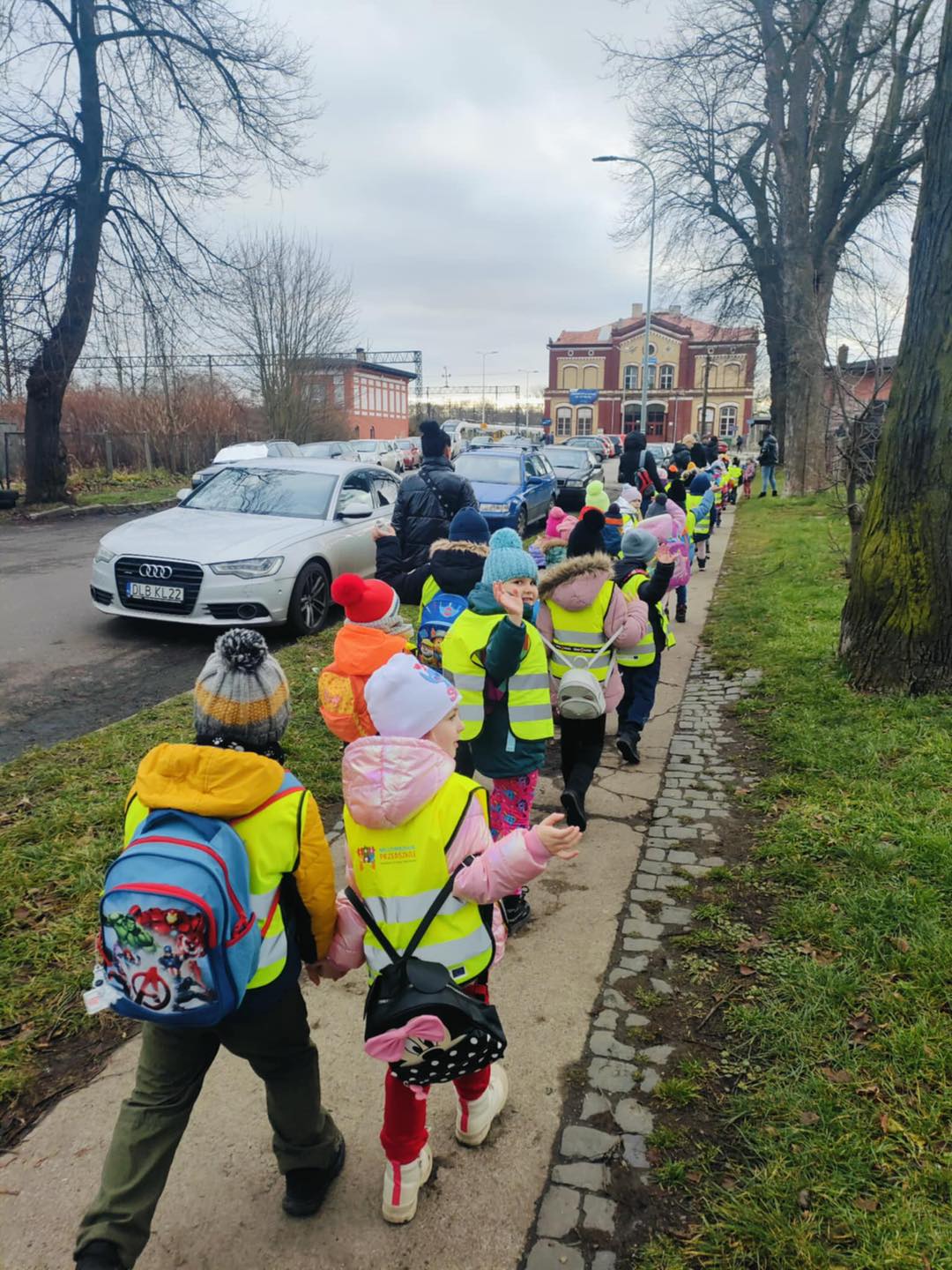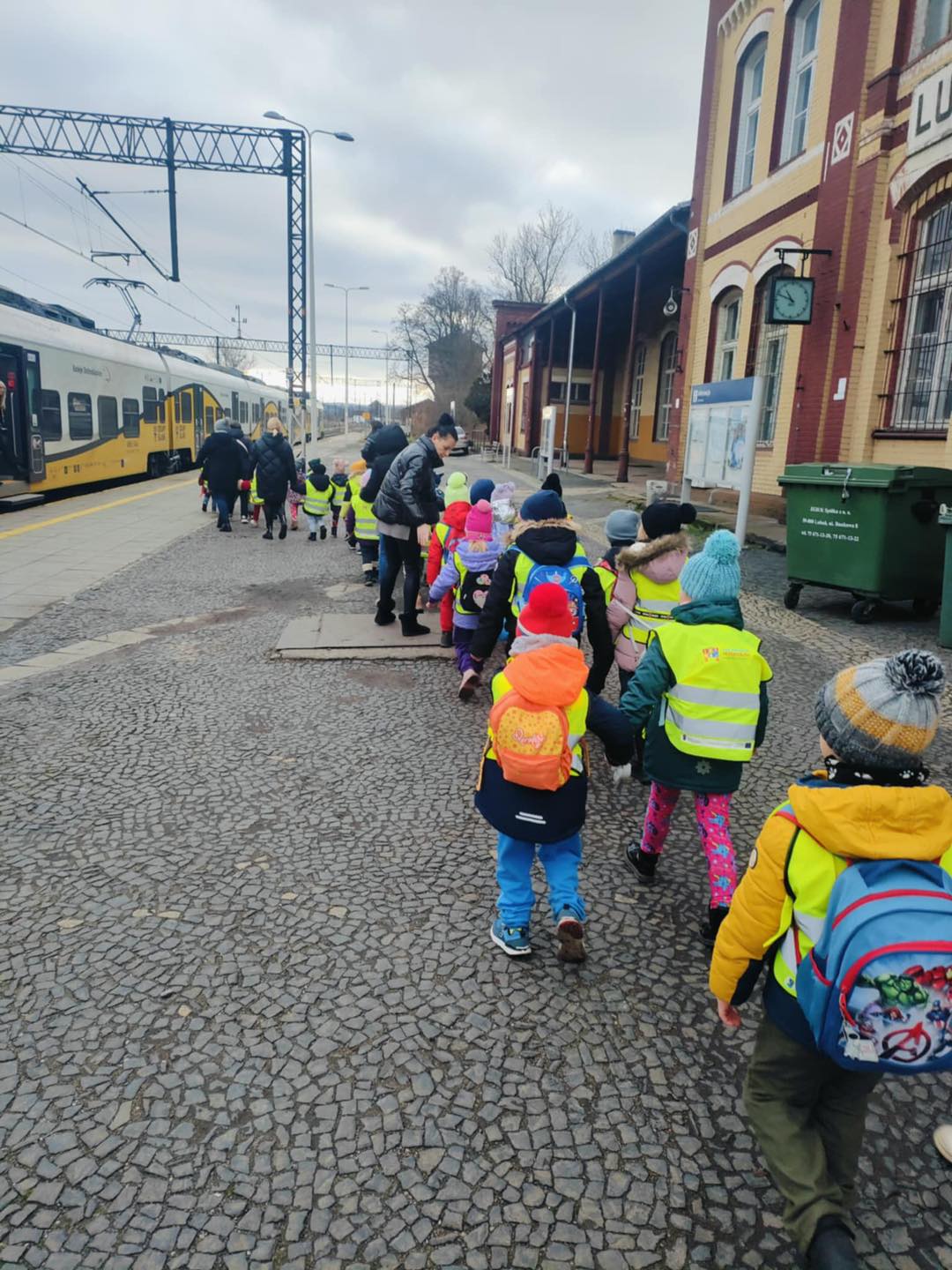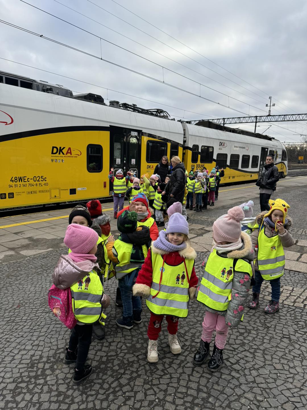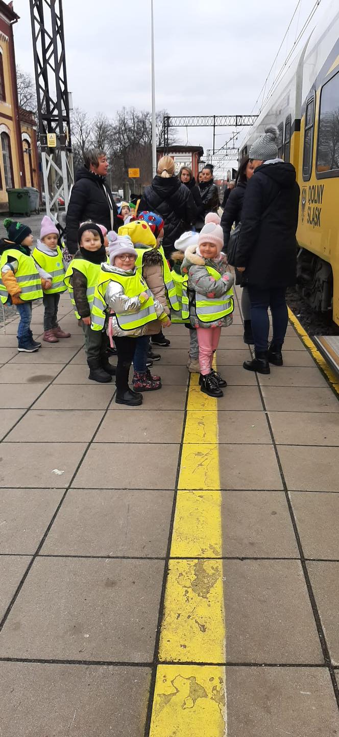Dzisiaj odbyliśmy małą wycieczkę pociągiem do Węglińca. Celem wycieczki było zapoznanie dzieci ze środkiem transportu jakim jest pociąg.