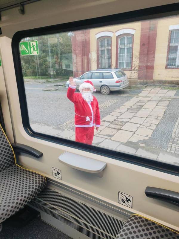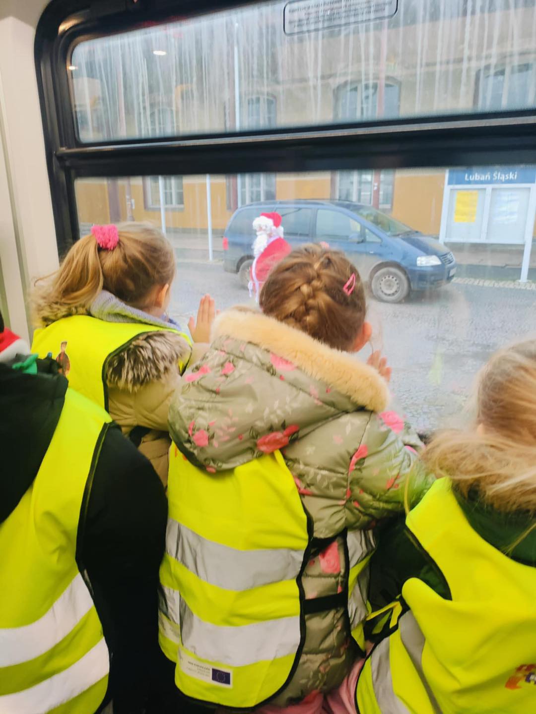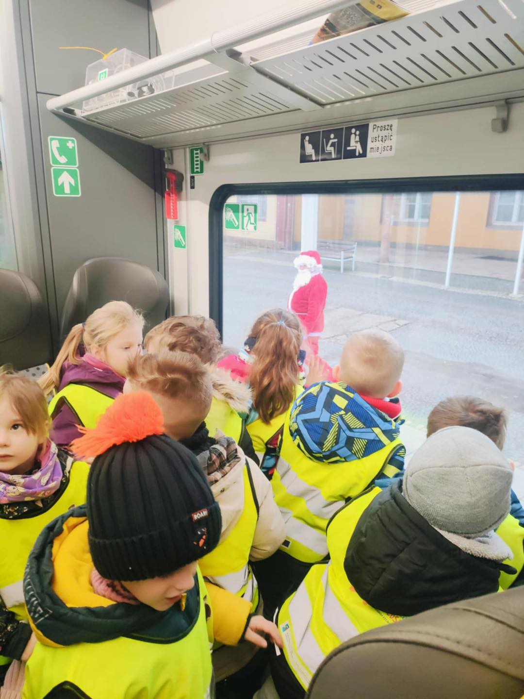 Przejazd pociągiem sprawił dzieciom wielką radość, a szczególnie dlatego, że na podróż zabrał nas sam Święty Mikołaj.