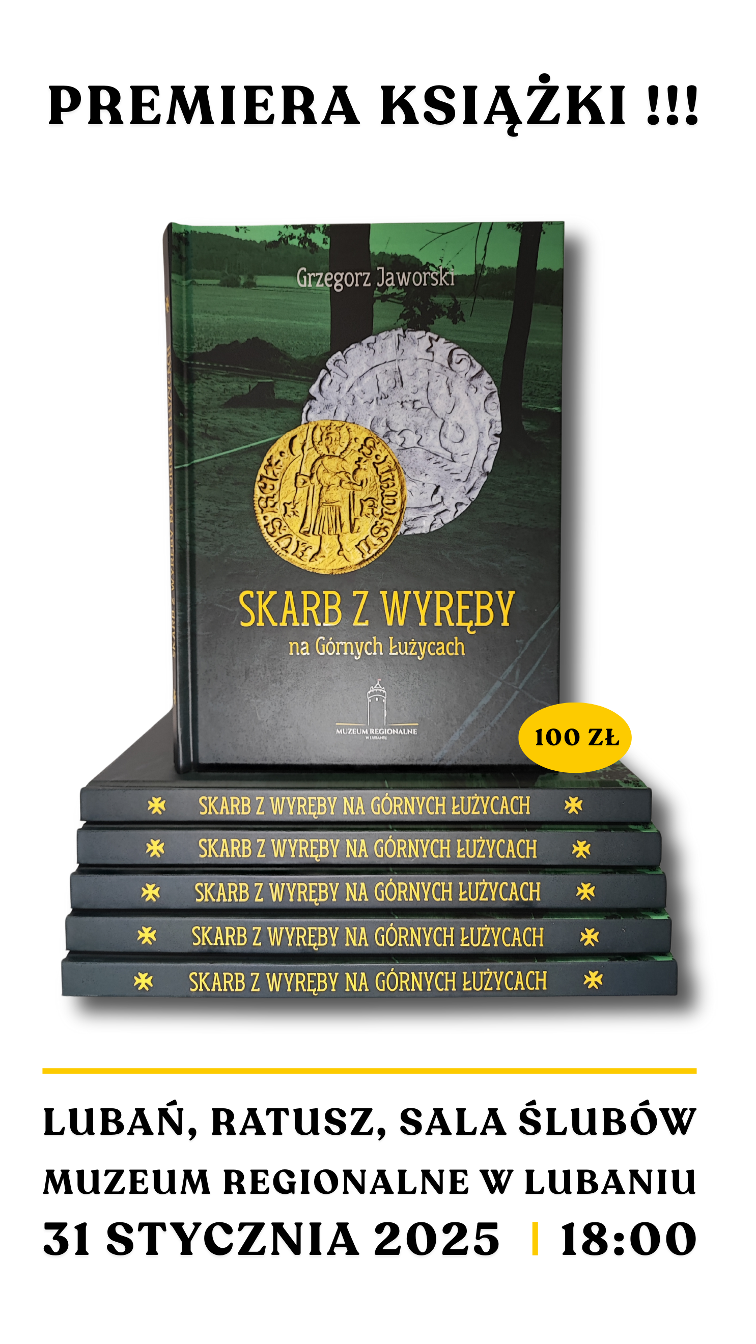 31 stycznia o 18:00 w Muzeum Regionalnym w Lubaniu odbędzie się promocja i spotkanie z autorem wyjątkowej pod wieloma względami książki "Skarb z Wyręby na Górnych Łużycach" Grzegorzem Jaworskim. Będzie to okazja do zapoznania się ze światem średniowiecznej numizmatyki.