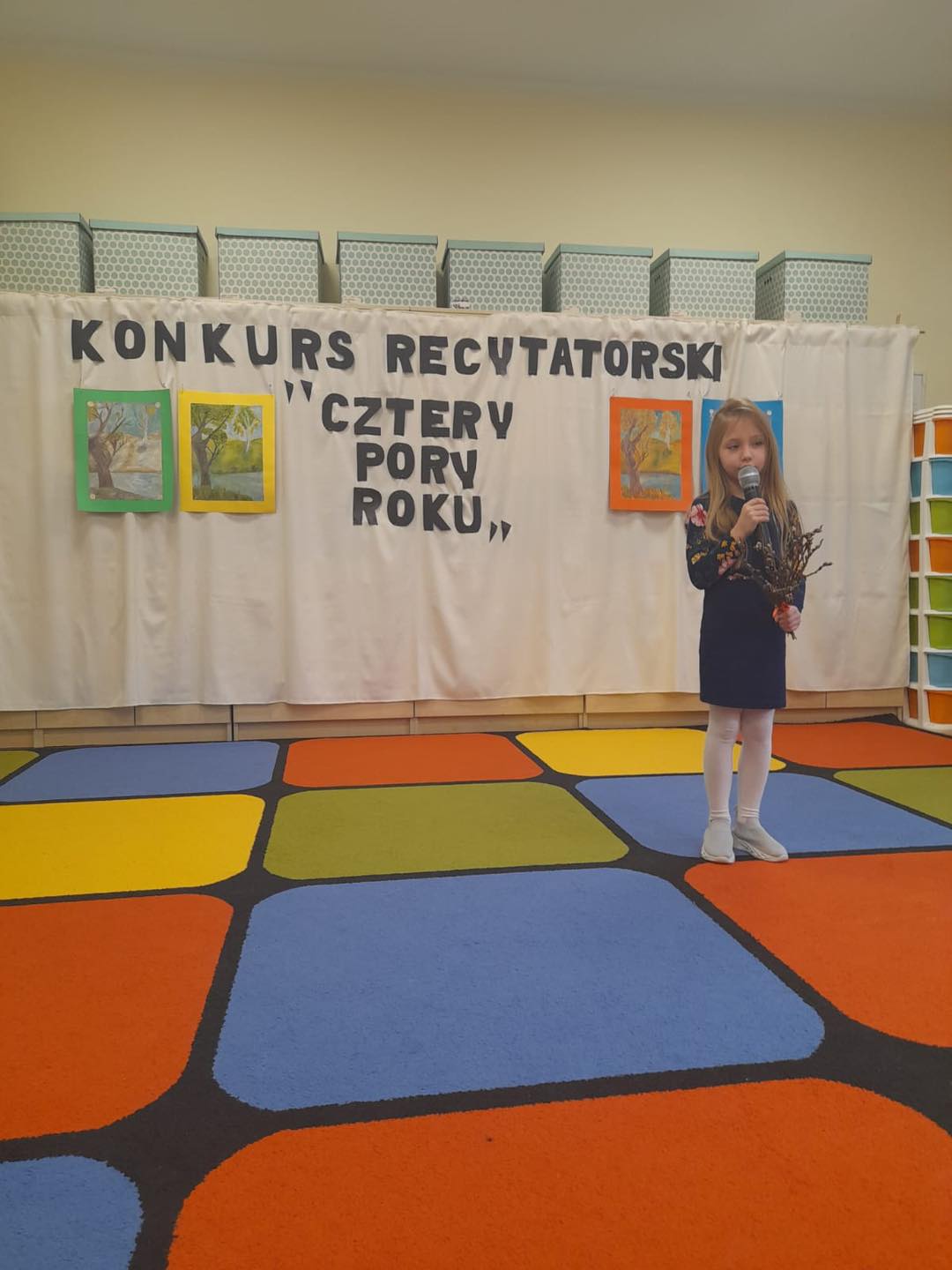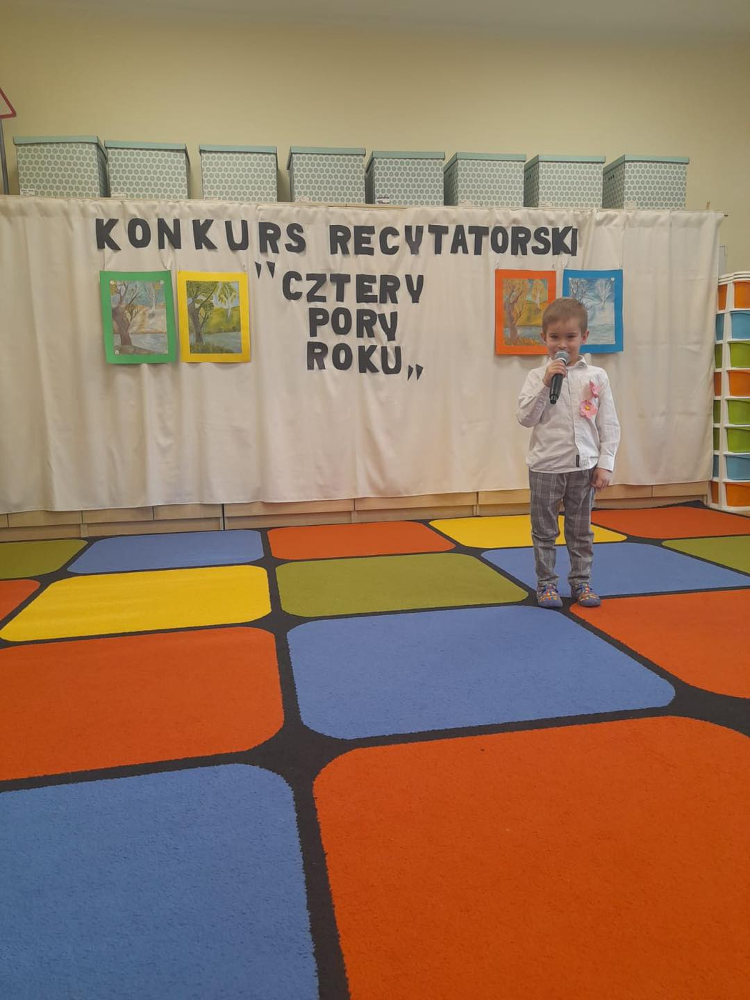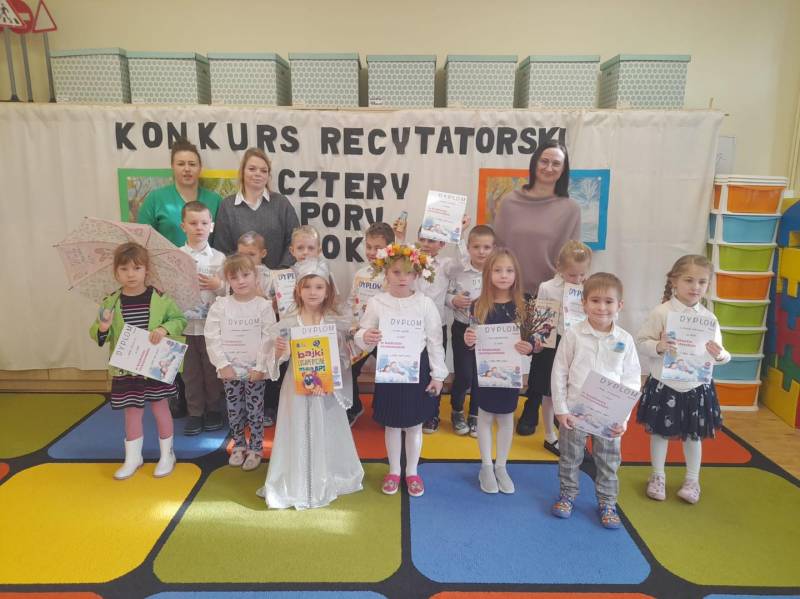 W naszym przedszkolu odbył się konkurs recytatorski pt "Cztery Pory Roku", którego celem było popularyzowanie poezji dziecięcej. Udział w tym wydarzeniu wzięło 14 dzieci w dwóch kategoriach wiekowych. Wszyscy uczestnicy zaprezentowali sie przepięknie. Każdy przedszkolak otrzymał pamiątkowy dyplom oraz nagrodę. Wśród nagrodzonych znajdują sie trzy osoby, które będą reprezentować nasze przedszkole w powiatowym etapie konkursu.