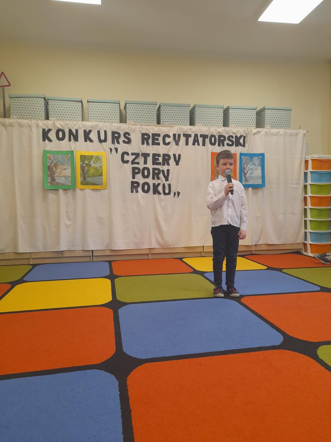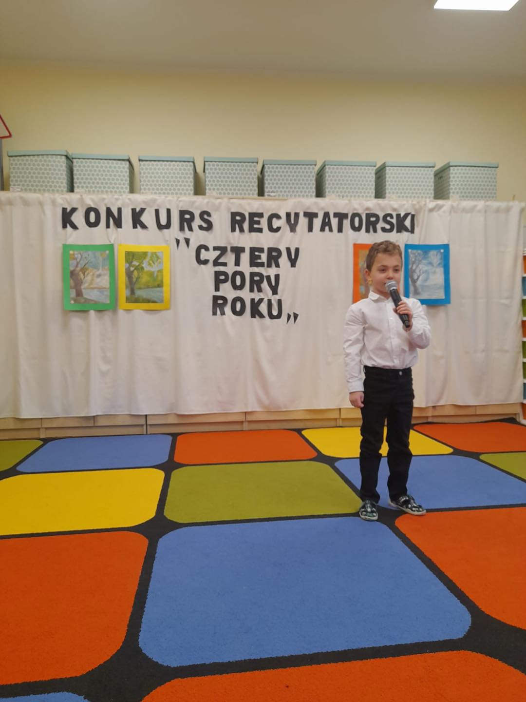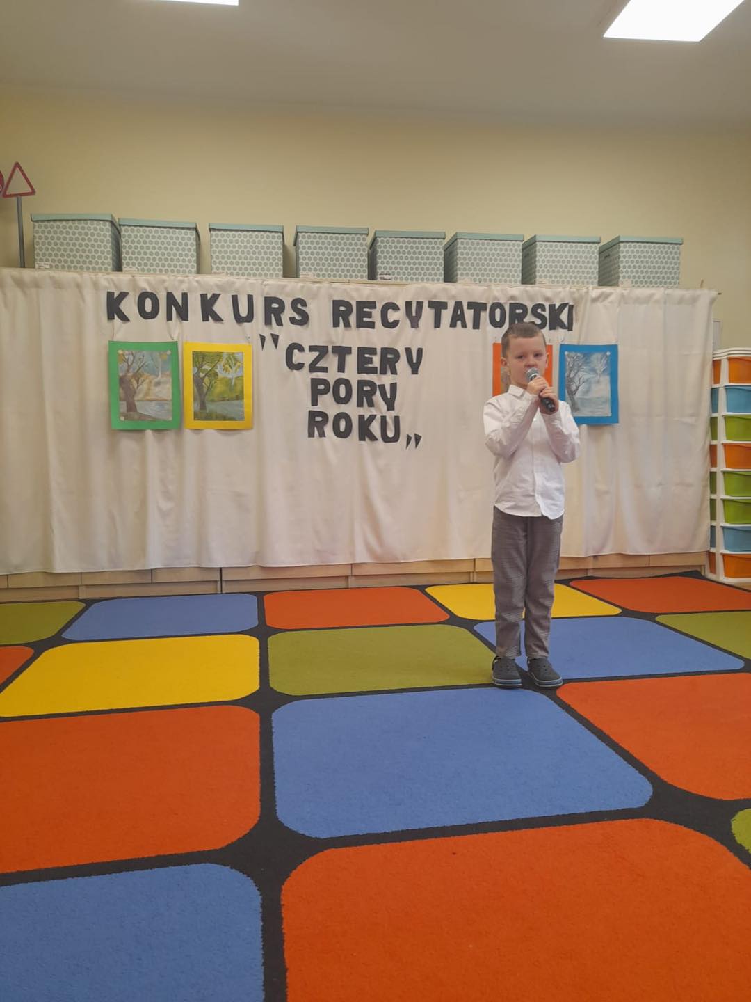 W naszym przedszkolu odbył się konkurs recytatorski pt "Cztery Pory Roku", którego celem było popularyzowanie poezji dziecięcej. Udział w tym wydarzeniu wzięło 14 dzieci w dwóch kategoriach wiekowych. Wszyscy uczestnicy zaprezentowali sie przepięknie. Każdy przedszkolak otrzymał pamiątkowy dyplom oraz nagrodę. Wśród nagrodzonych znajdują sie trzy osoby, które będą reprezentować nasze przedszkole w powiatowym etapie konkursu.