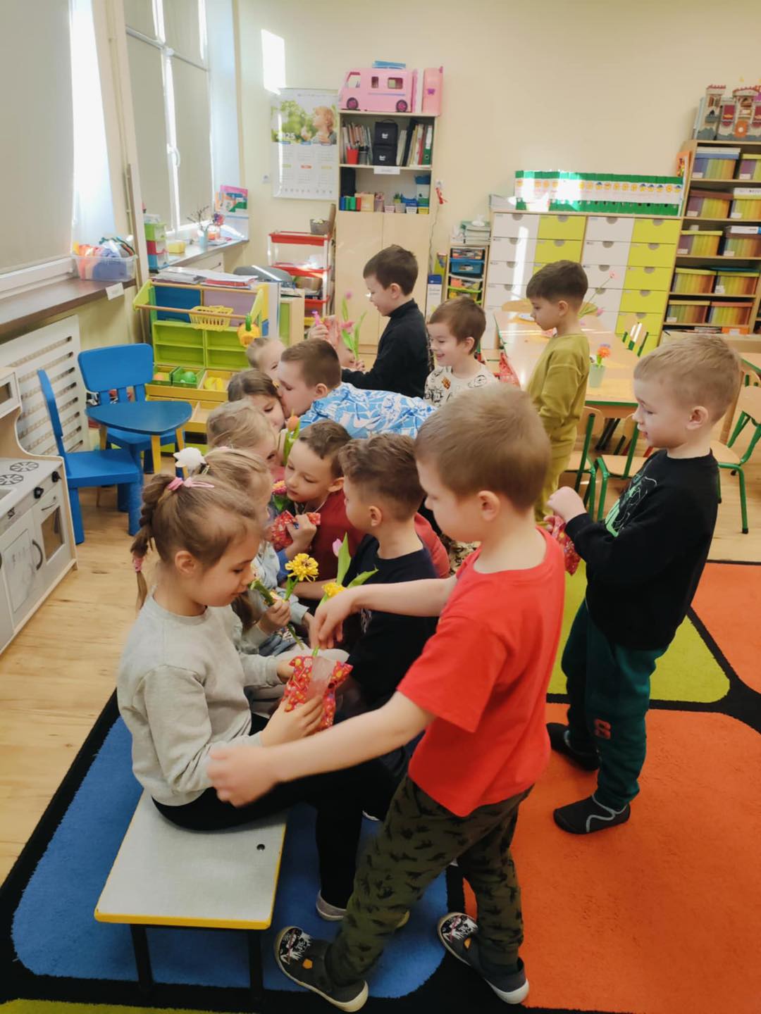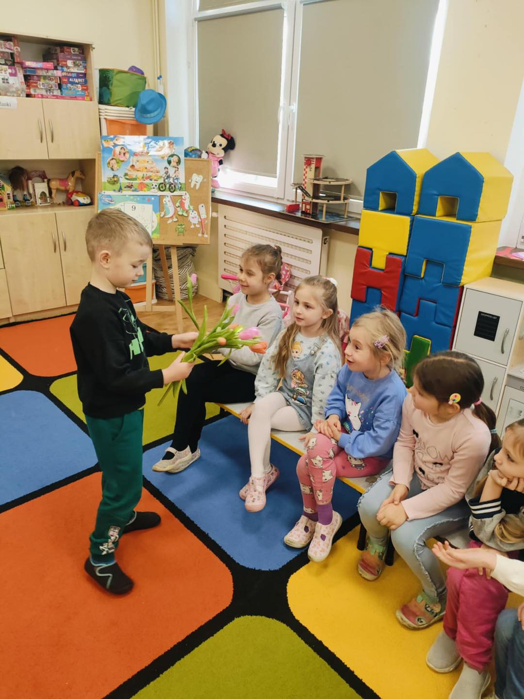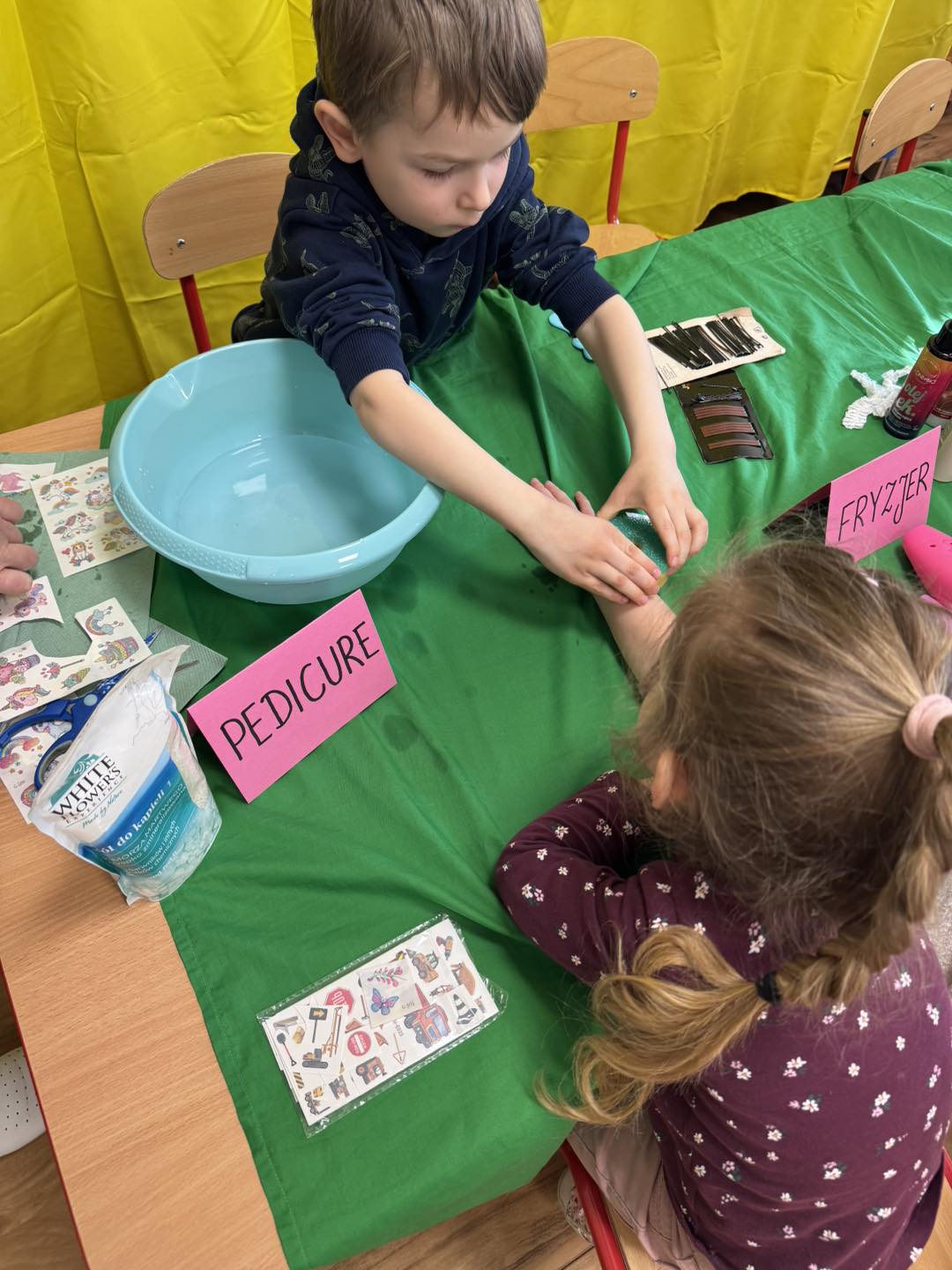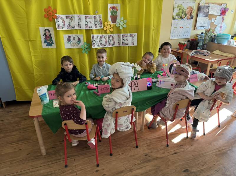 W piątek w naszym przedszkolu odbył się dzień kobiet. W każdej grupie chłopcy przygotowali dla swoich dziewczynek piękne upominki oraz poczęstunek. W grupie 4 latków dziewczynki miały okazję uczestniczyć w salonie spa i mogły poczuć się jak prawdziwe damy. Dziewczynki ubrane oczywiście w wygodne szlafroki, mogły skorzystać z manicure, pedicure, moczenia nóg w wodzie, makijażu, salonu fryzjerskiego czy też możliwości odpoczynku z okładem na oczy z ogórka.