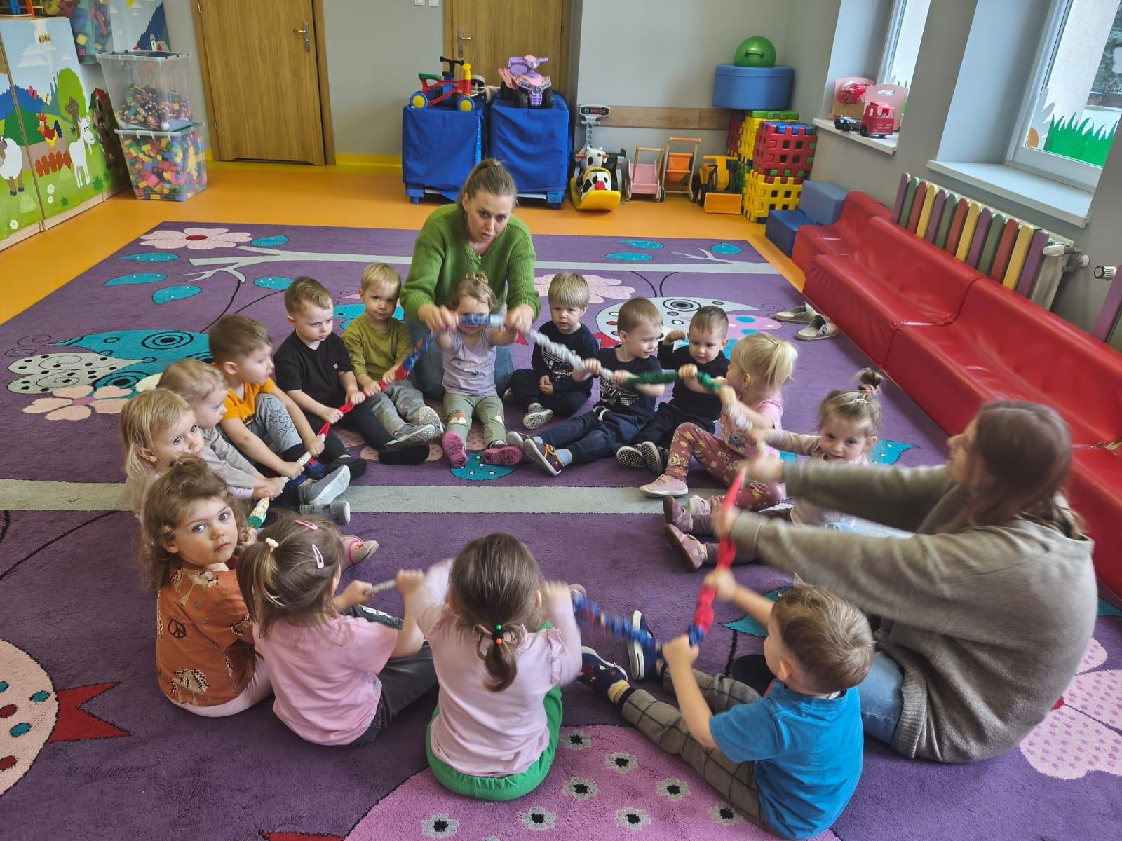 Guma sensoryczna wspiera naukę odróżniania kolorów, rozwija percepcję i skupienie dzieci oraz zbliża je do rówieśników. Tyle pozytywnych rzeczy przy zabawie i tańcach.