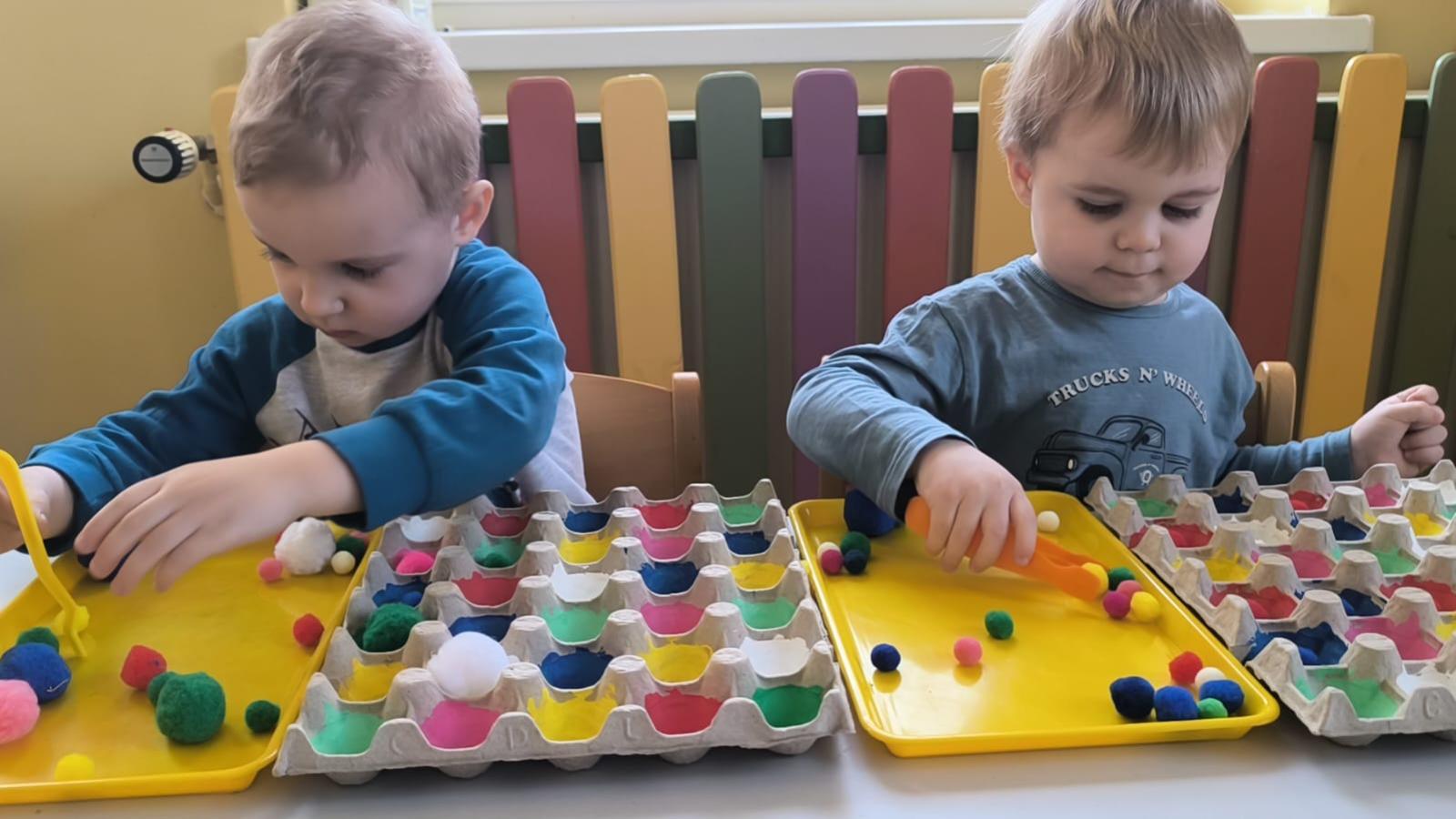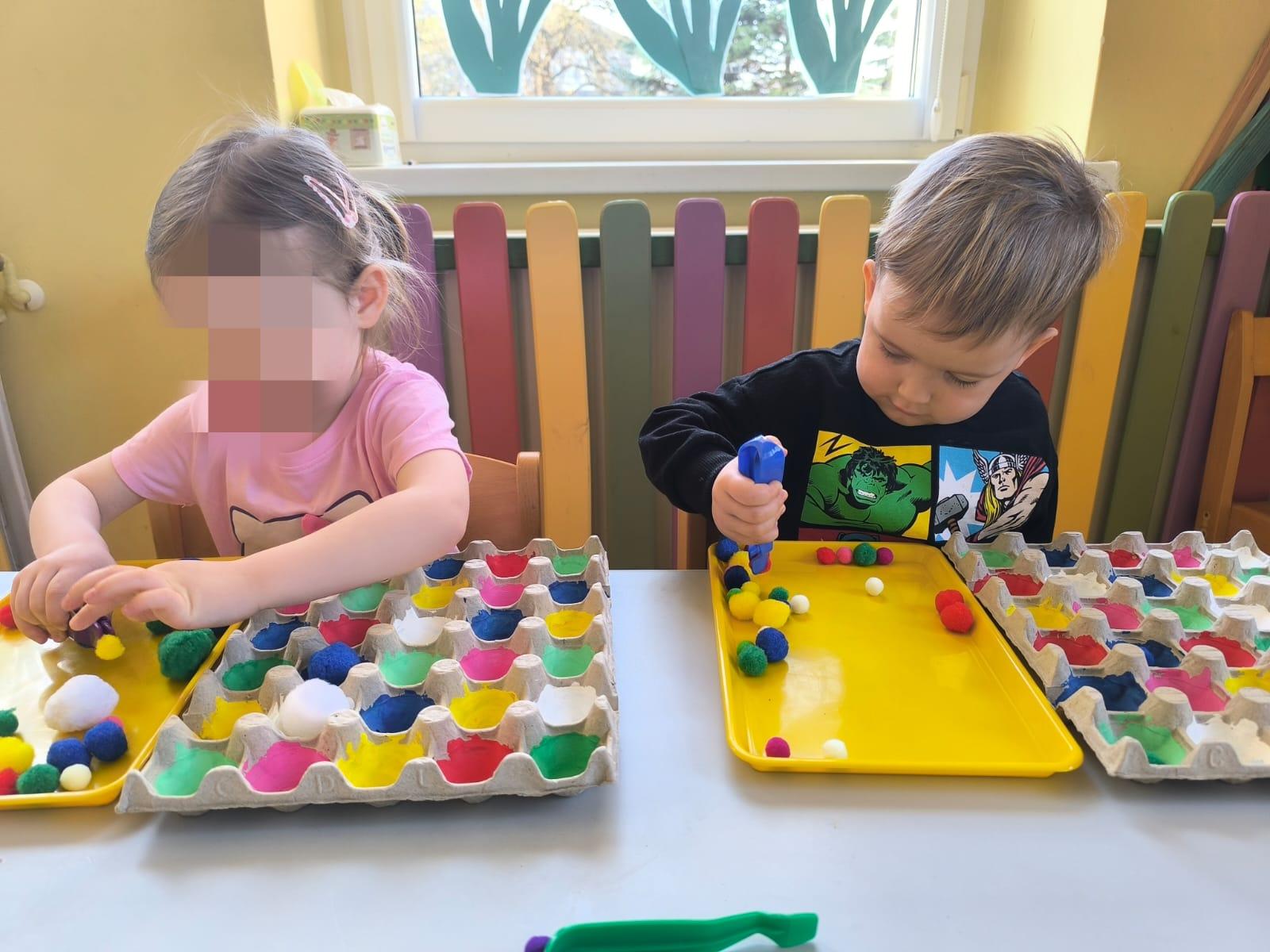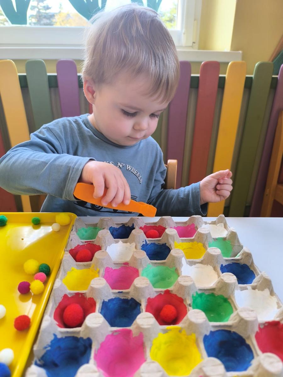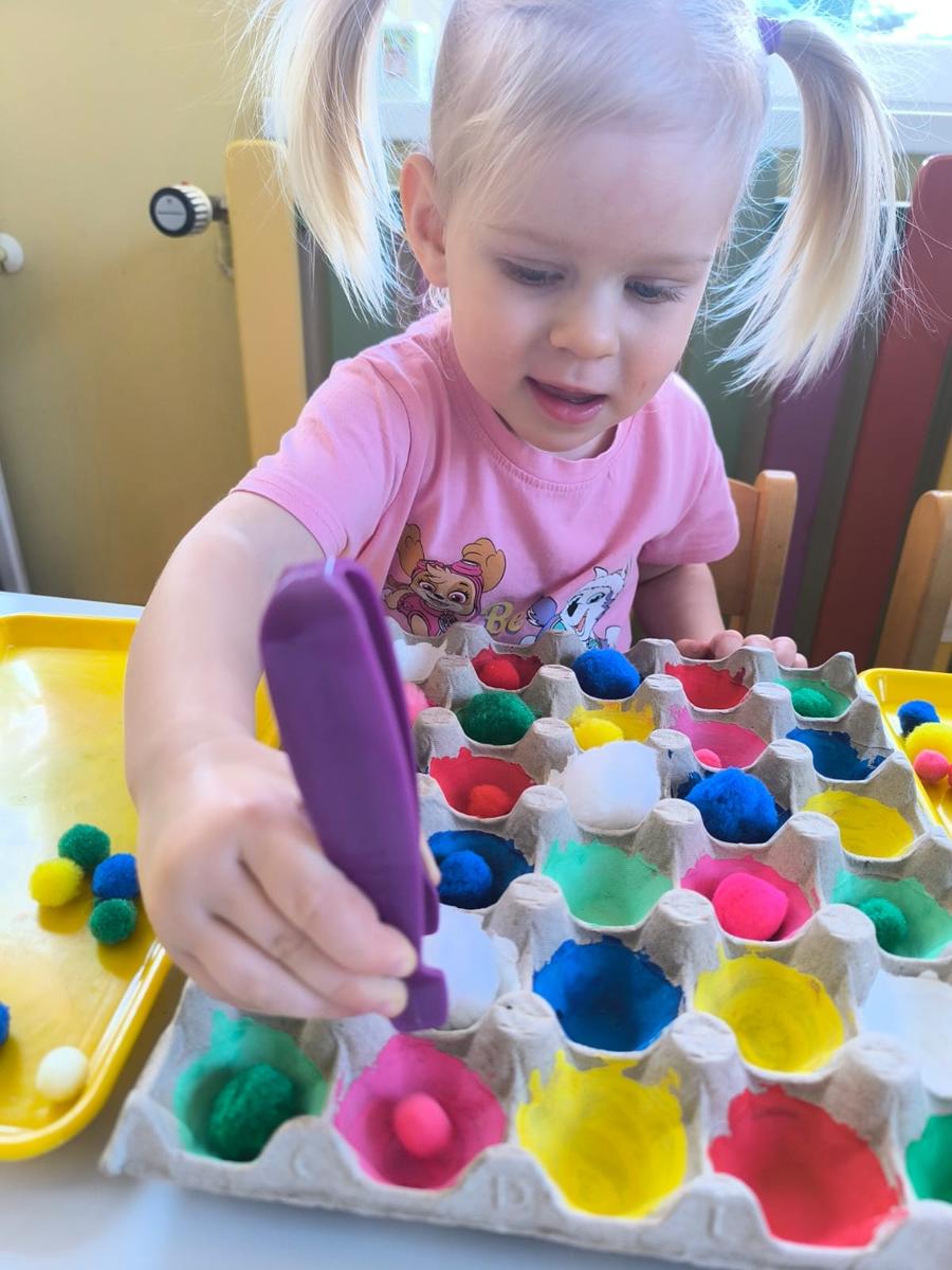 Ćwiczenie motoryki małej, chwyt pęsetowy, logiczne myślenie oraz postrzeganie podobieństw, różnic, a przede wszystkim utrwalenie kolorów. Dla naszych Pszczółek nie ma rzeczy niemożliwych .