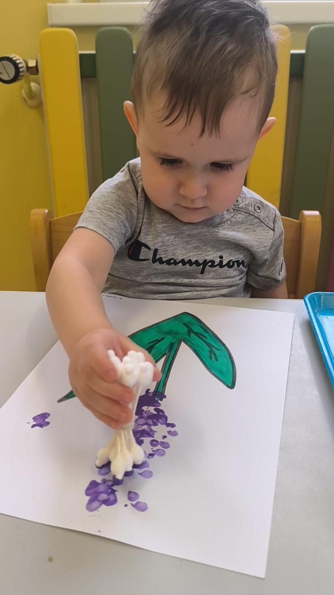 Zawitała do nas już wiosna, z tej okazji dzieci wykonały piękne kolorowe hiacynty. Do zadania potrzebne były patyczki higieniczne i farby. Prace dzieci można podziwiać w szatni żłobka.
