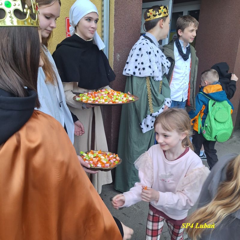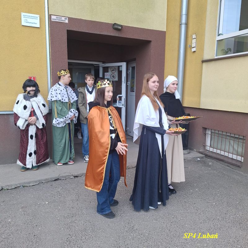 W TYM DNIU, PRZED LEKCJAMI, W PROGACH NASZEJ SZKOŁY WITAŁ NAS WSZYSTKICH SAM BOLESŁAW CHROBRY, KTÓRY WRAZ Z ŻONĄ ORAZ DAMAMI DWORU CZĘSTOWAŁ WSZYSTKICH PRZYBYŁYCH PYSZNYMI ŁAKOCIAMI!