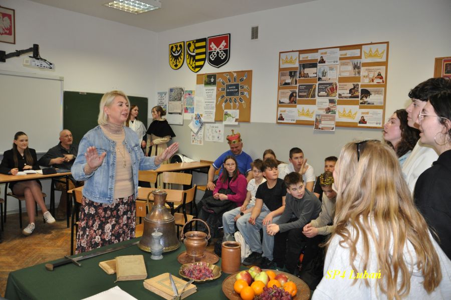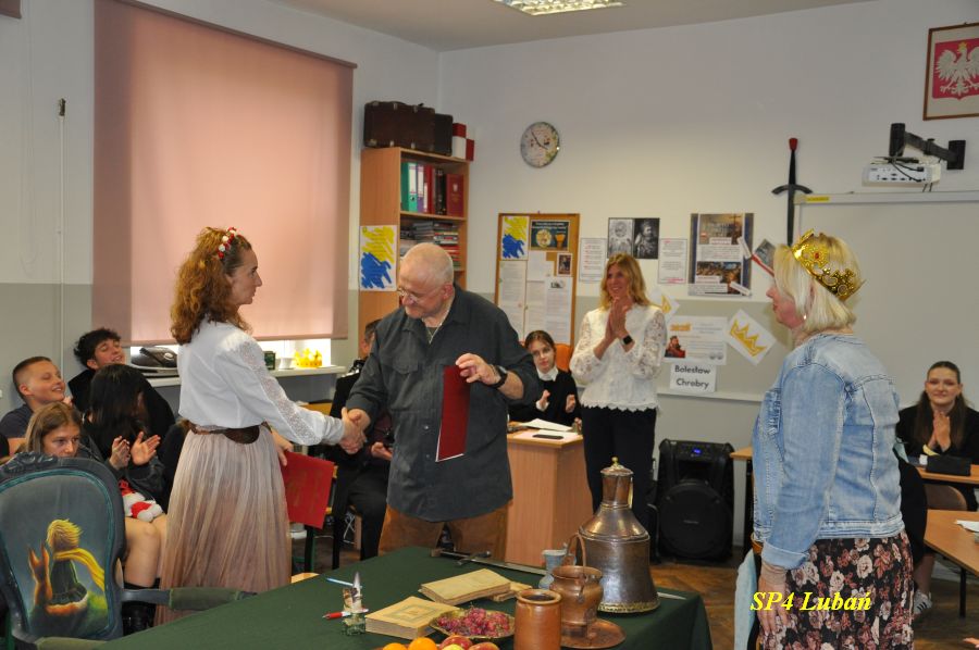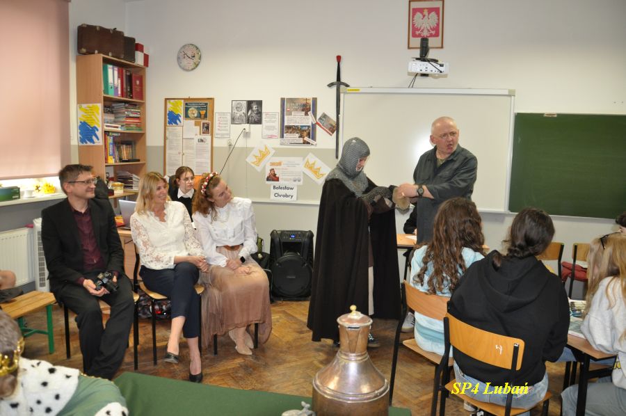 Ponadto na pierwszych czterech lekcjach, dla starszych rocznikowo klas naszej szkoły, w sali nr 16 odbyły się prelekcje historyczne pt. „ 1000- lecie koronacji Bolesława Chrobrego”. Osobą prelegenta był historyk – pasjonata, przyjaciel naszej szkoły pan Piotr Kucznir, który od lat rozwija pasje i zainteresowania historyczne naszych uczniów.