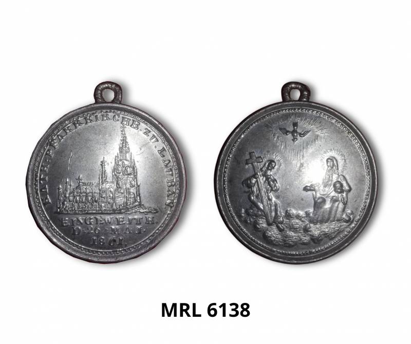 Przedstawiamy cynowy medal upamiętniający konsekrację kościoła pw. Świętej Trójcy w Lubaniu z dnia 26 maja 1861 roku.