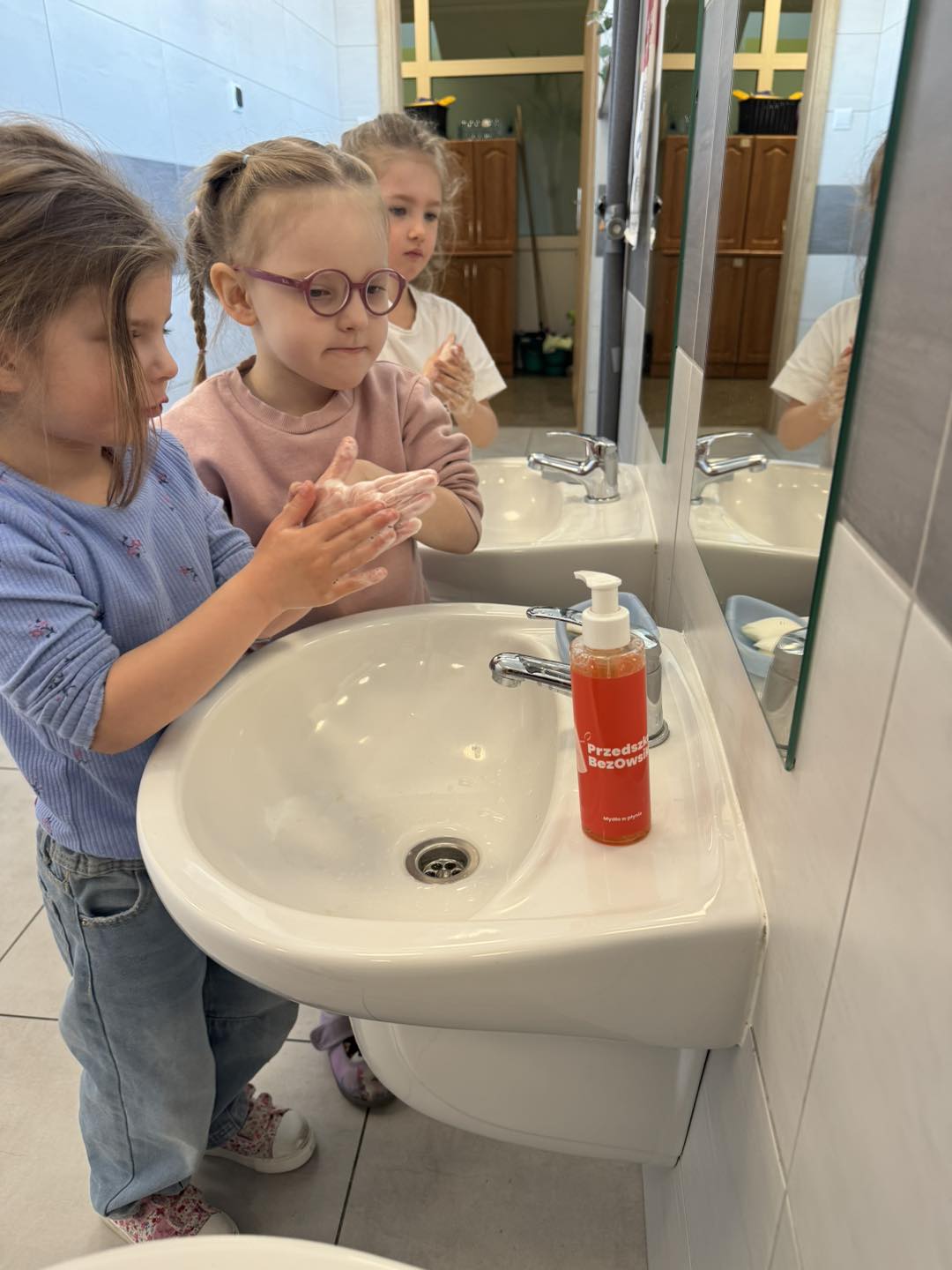 W ramach programu " Przedszkola bez Owsików " dzieci wzięły udział w zajęciach, których celem było utrwalenie prawidłowych nawyków i umiejętności z zakresu higieny rąk oraz oswajanie z zagadnieniem owsików wśród dzieci.