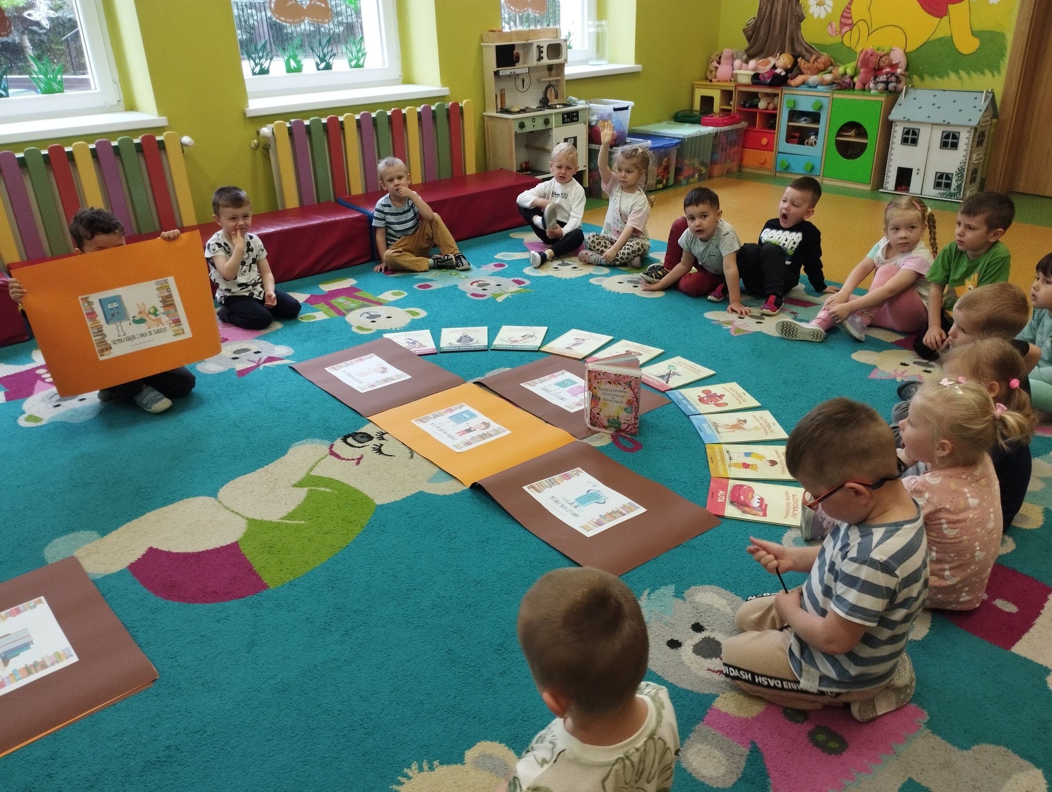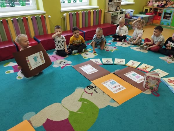 23 kwietnia obchodziliśmy w naszej grupie Międzynarodowy Dzień Książki. To wyjątkowe święto było dla Maluszków okazją do poznania świata książek i rozwijania zainteresowań czytelniczych już od najmłodszych lat. Dzieci przyniosły swoje ulubione książeczki, które wspólnie oglądaliśmy i omawialiśmy. Dowiedziały się także, jak powstaje książka oraz jak należy o nią dbać. Wspólnie stworzyliśmy Kodeks Małego Czytelnika, w którym zawarliśmy najważniejsze zasady korzystania z książek, takie jak: mycie rączek przed czytaniem, delikatne przewracanie stron, odkładanie książki na miejsce czy słuchanie, gdy ktoś czyta. Każde dziecko podpisało kodeks odciskiem palca, co sprawiło im wiele radości! To był dzień pełen emocji, pięknych opowieści i dobrej zabawy. Mamy nadzieję, że miłość do książek będzie towarzyszyć naszym Maluszkom przez całe życie.