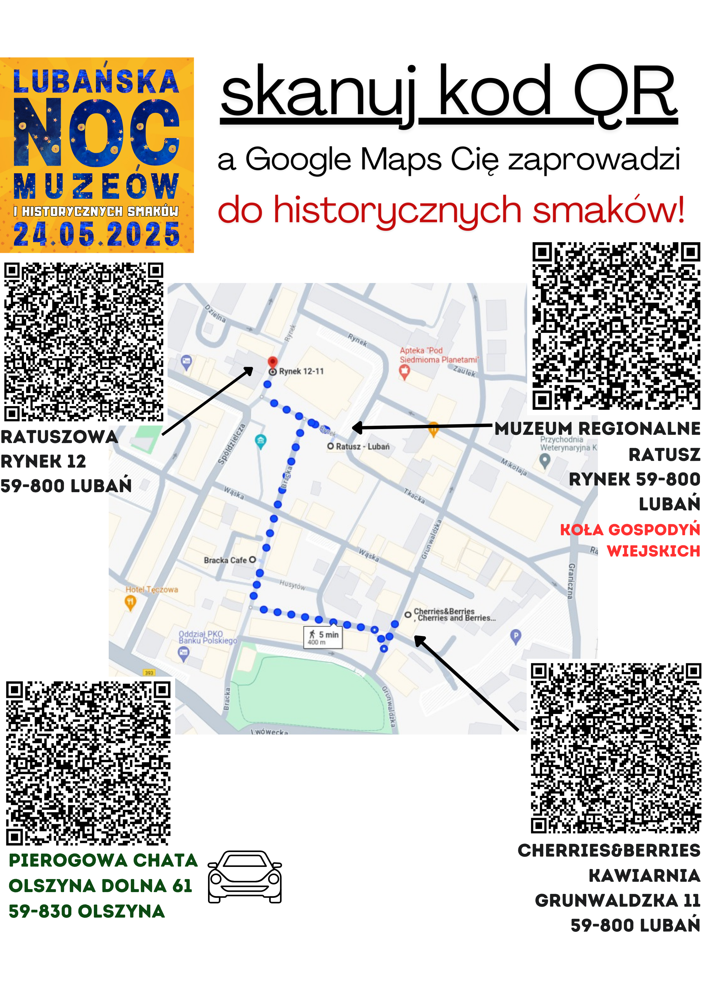 Mapka Lubańskiej Nocy Muzeów i Historycznych Smaków