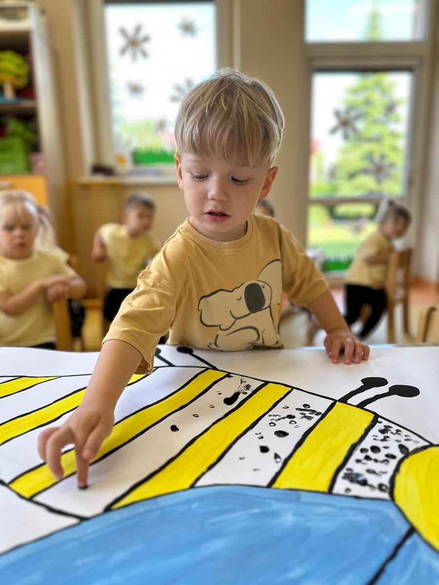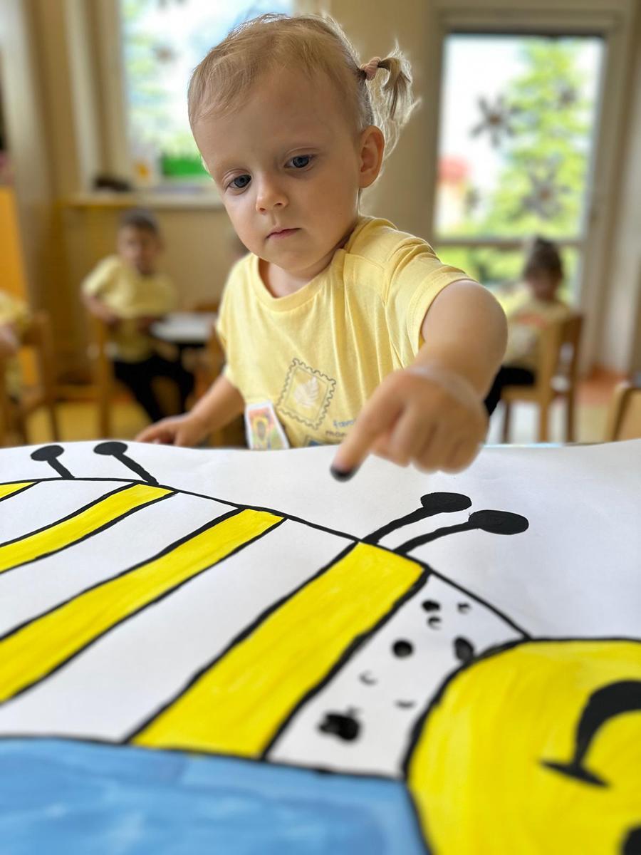 Międzynarodowy dzień Pszczół to wyjątkowy dzień pełen atrakcji dla naszych małych Pszczółek. Odbył się wspaniały bal, były tańce, przebrania i pyszne ciasteczka. A na koniec wszystkie Pszczółki odcisnęły swoje paluszki tworząc wspaniałą pszczołę, którą można podziwiać w naszej żłobkowej szatni.