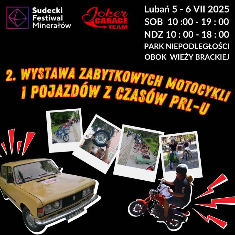 Podczas Sudeckiego Festiwalu Minerałów 2025 czeka was wystawa zabytkowych motocykli, motorowerów i rowerów z czasów PRL-u, organizowana przez Joker Garage Team. Ekscytująca i sentymentalna zarazem podróż do przeszłości, połączona z oryginalnymi konkursami i zabawami dla całych rodzin.