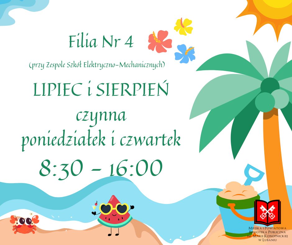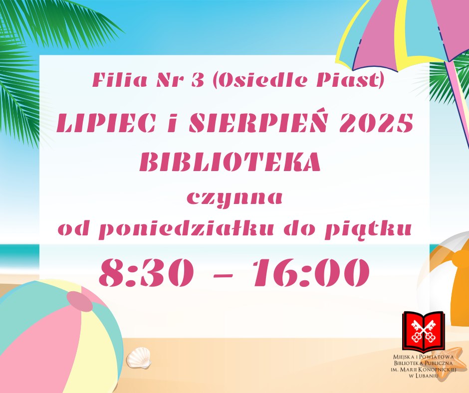 Filie Biblioteki w okresie wakacyjnym będą czynne: