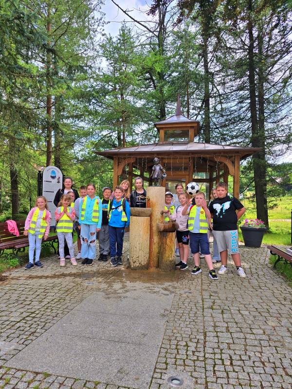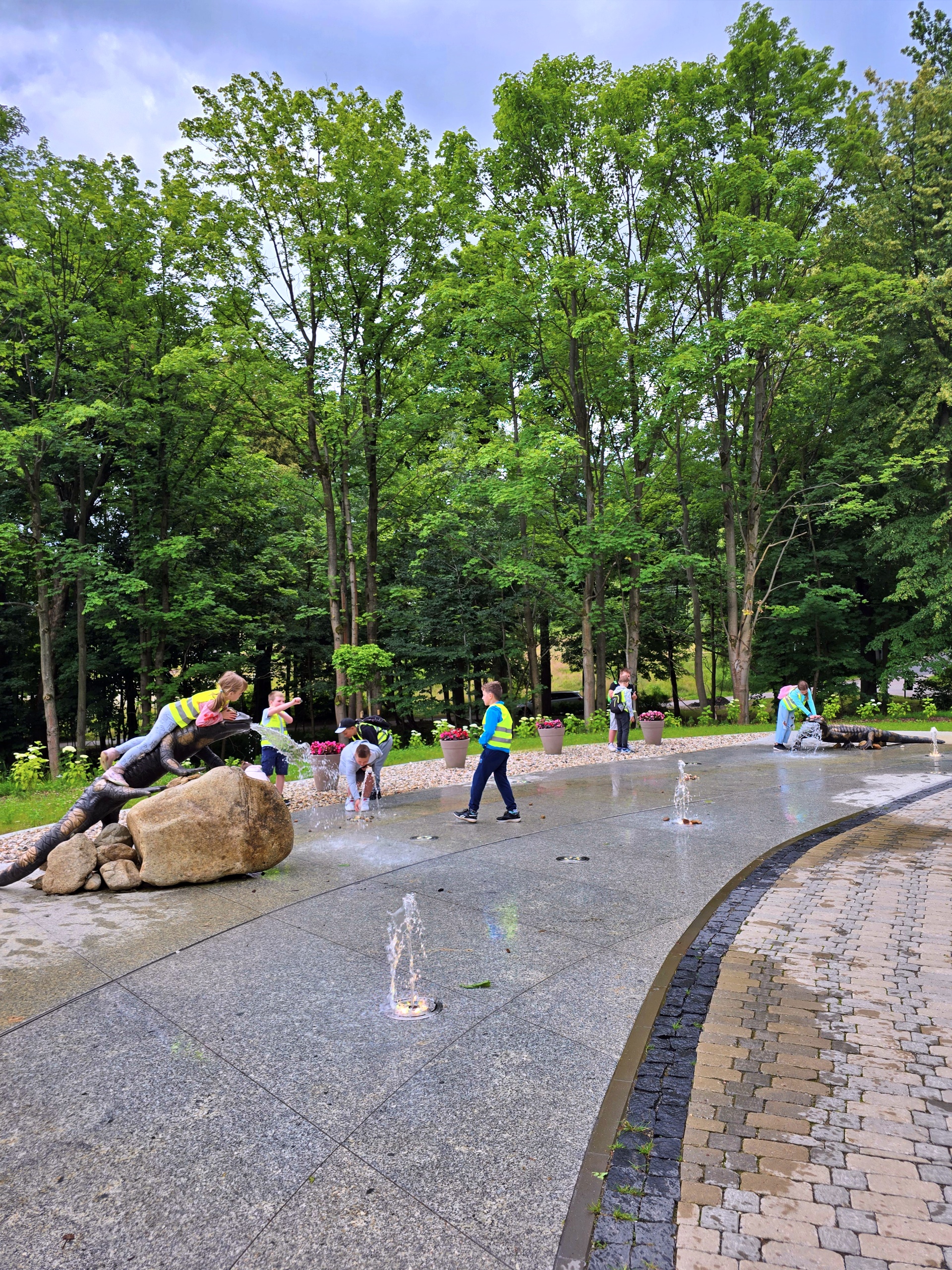 Kolejnym punktem programu była wizyta w nowo powstałym parku uzdrowiskowym. Dzieci mogły zobaczyć tężnię solankową i poinhalować się w jej otoczeniu. Pogłaskały wszystkie rzeźby salamander, które były w pobliżu. I spróbowały oczywiście zdrojowej wody, która niekoniecznie im posmakowała.
