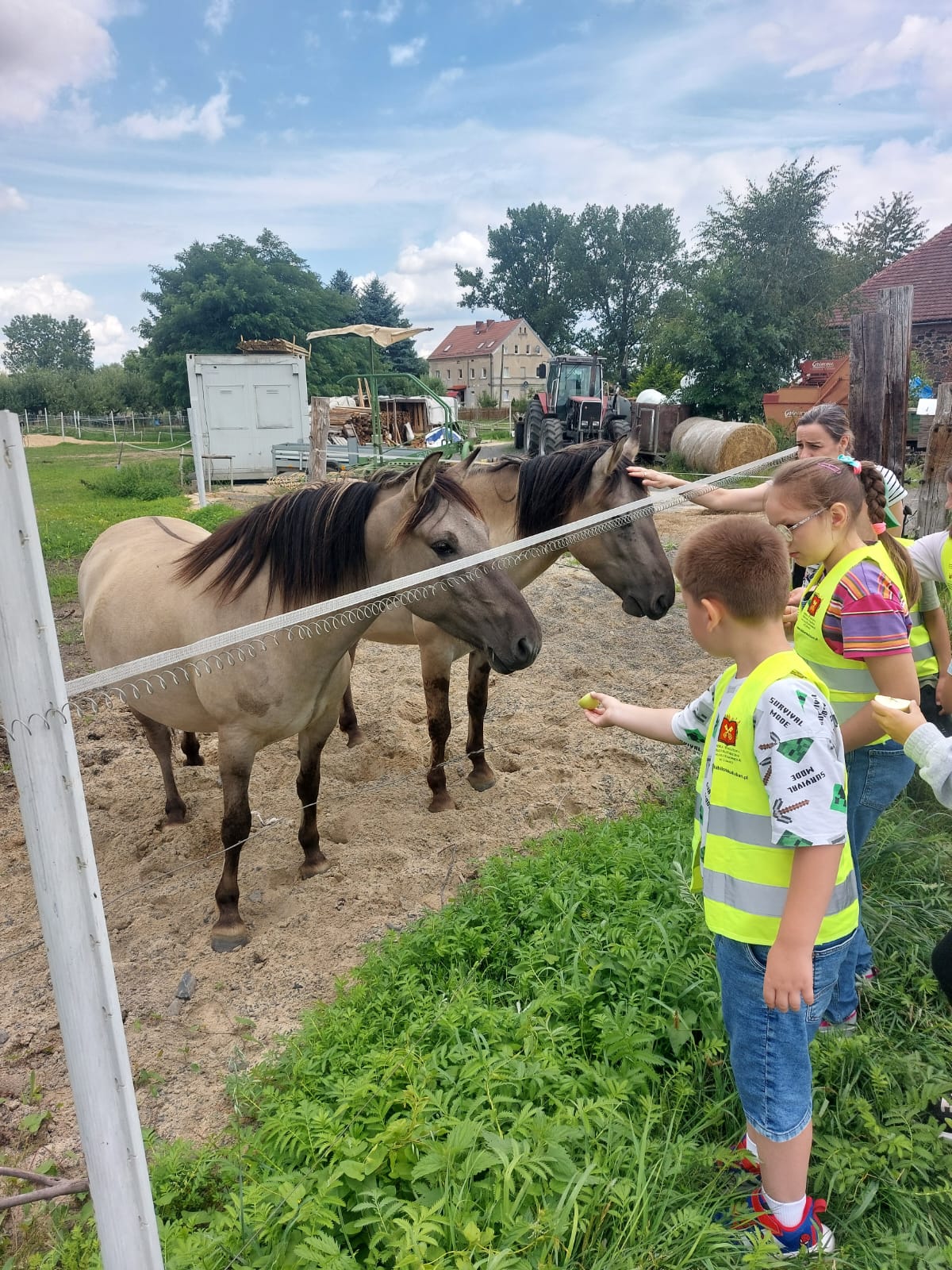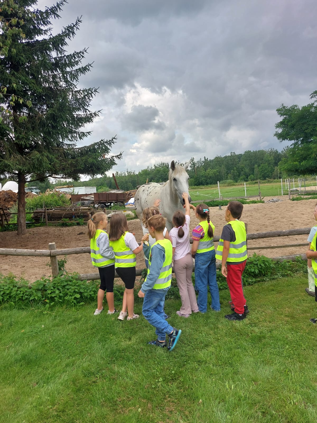 Na miejscu dzieci miały okazję z bliska poznać codzienne życie na wsi. Zwiedziły zagrody, gdzie z ogromnym zainteresowaniem przyglądały się zwierzętom gospodarskim: krowom, koniom, kurom, perliczkom i świniom. Największą radość sprawiło im jednak samodzielne karmienie zwierząt, co dla wielu z nich było zupełnie nowym i niezwykle ekscytującym doświadczeniem.