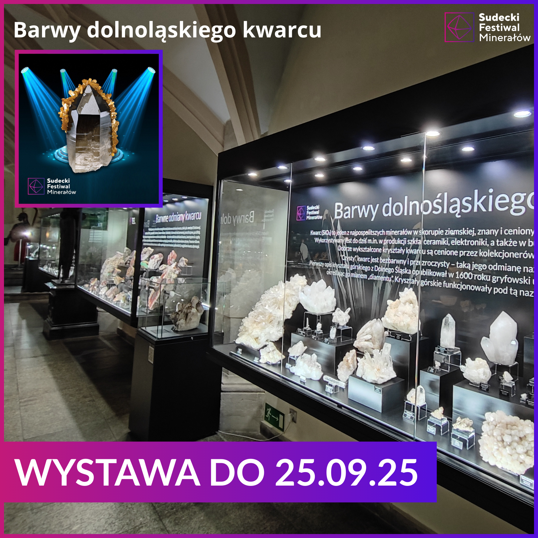 Informujemy, że wystawa minerałów "Barwy dolnośląskiego kwarcu" będzie dostępna do zwiedzania jeszcze tylko dzisiaj, niestety z powodów niezależnych od nas już jutro zaczynamy demontaż i przygotowania.... do nowej wystawy!