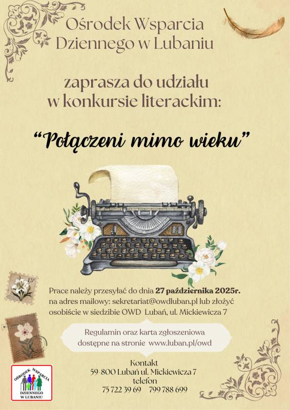 Zapraszamy wszystkie dzieci z terenu miasta Lubań do wzięcia udziału w konkursie literackim "Połączeni mimo wieku".