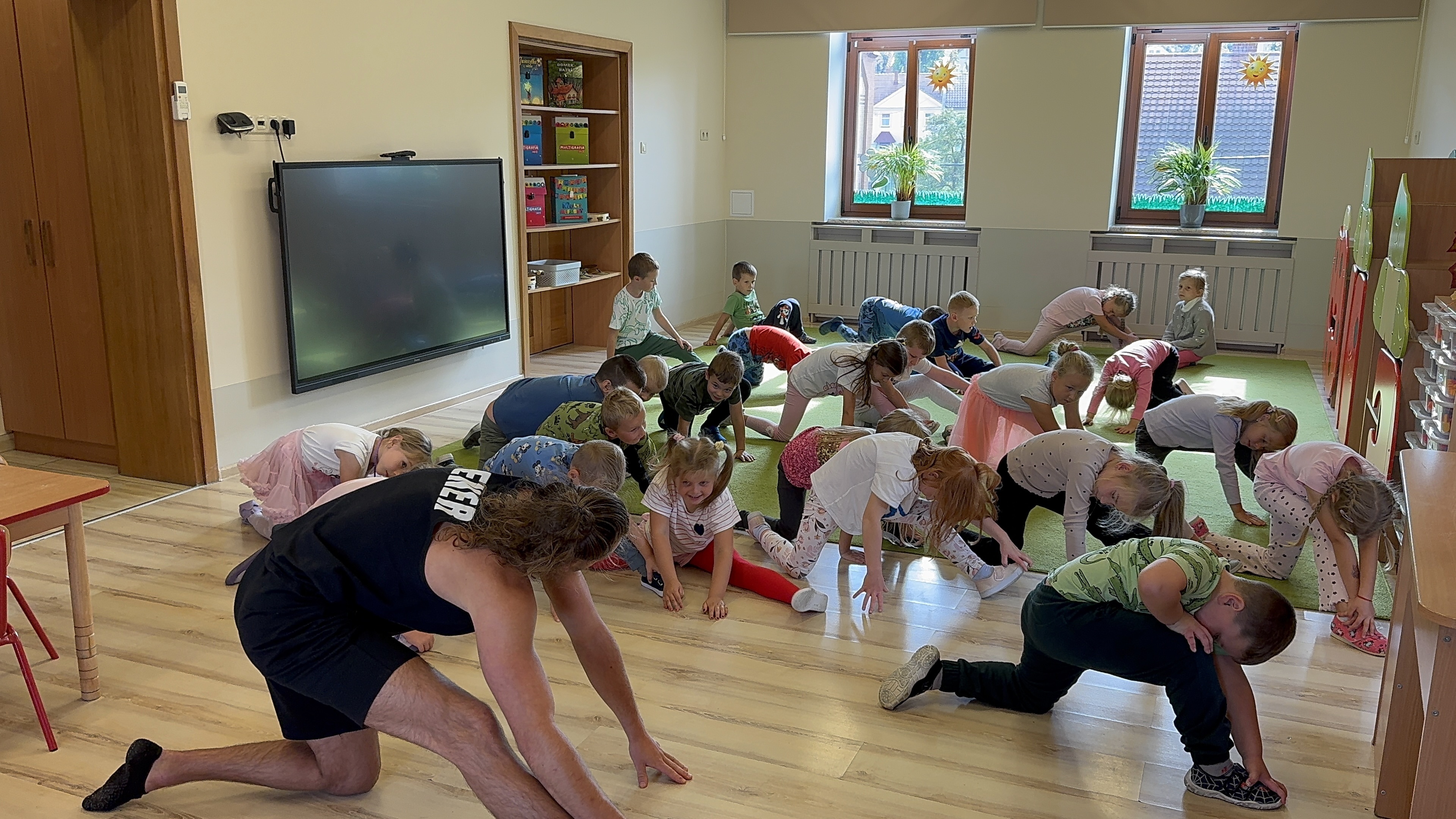 Zajęcia z trenerem gimnastyki akrobatycznej. Nasze Biedronki w akcji! Ćwiczymy gimnastykę z uśmiechem i wielką energią!