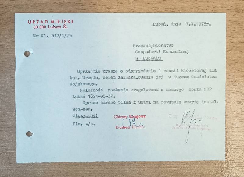 W podobnym tonie załatwiano wówczas chodniczki do muzeum z Powiatowego Domu Kultury w Lubaniu czy wypożyczano samochód marki Nysa od Lubańskich Zakładów Przemysłu Bawełnianego celem przewiezienia zabytków. A odsprzedaną muszlę najprawdopodobniej udało się zainstalować i muzeum szczęśliwie otwarto!